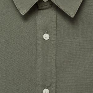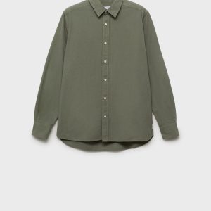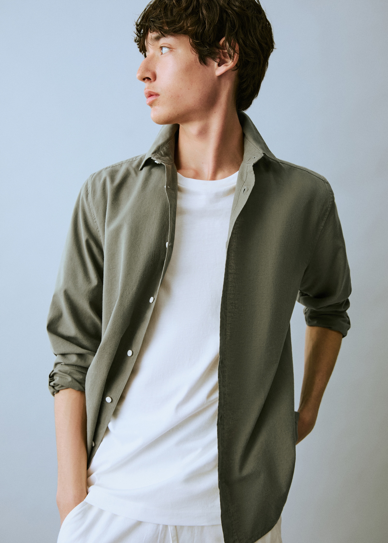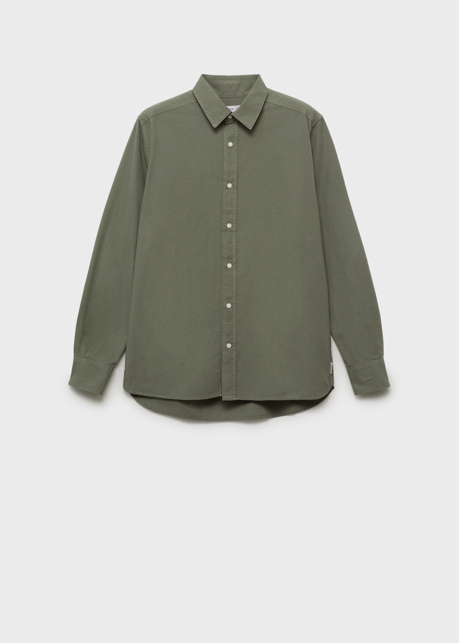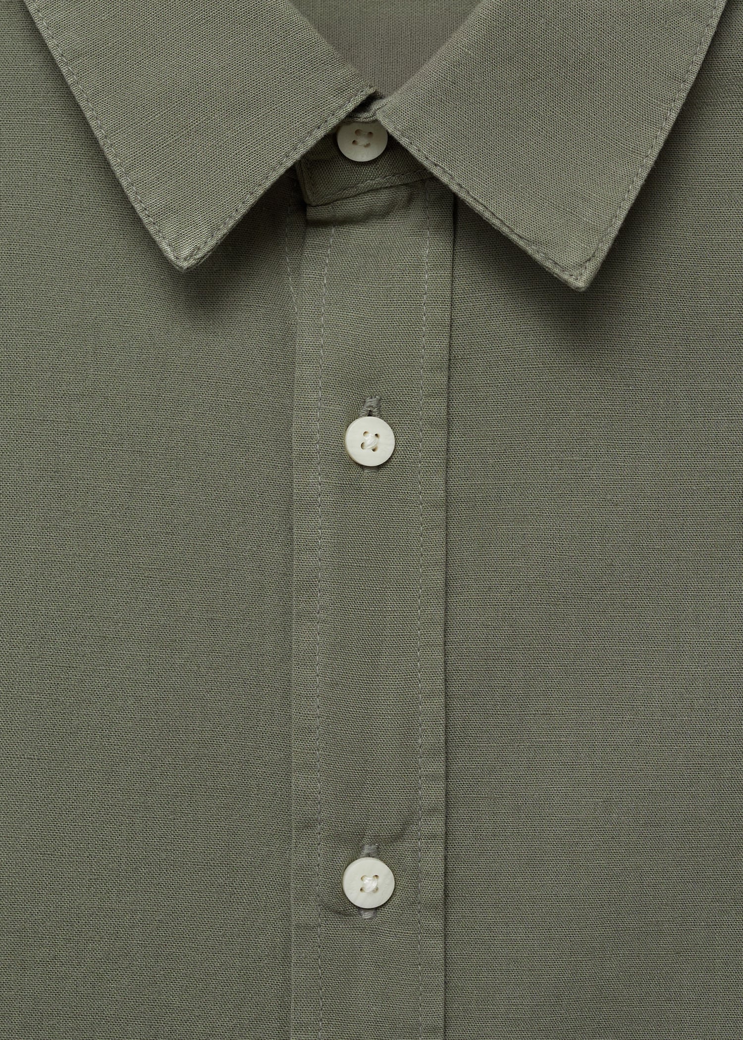 Linen fabric. Cotton fabric. Straight Design. Oxford style. Shirt collar. Buttoned cuffs. Long Sleeve. Front closure. Button closure