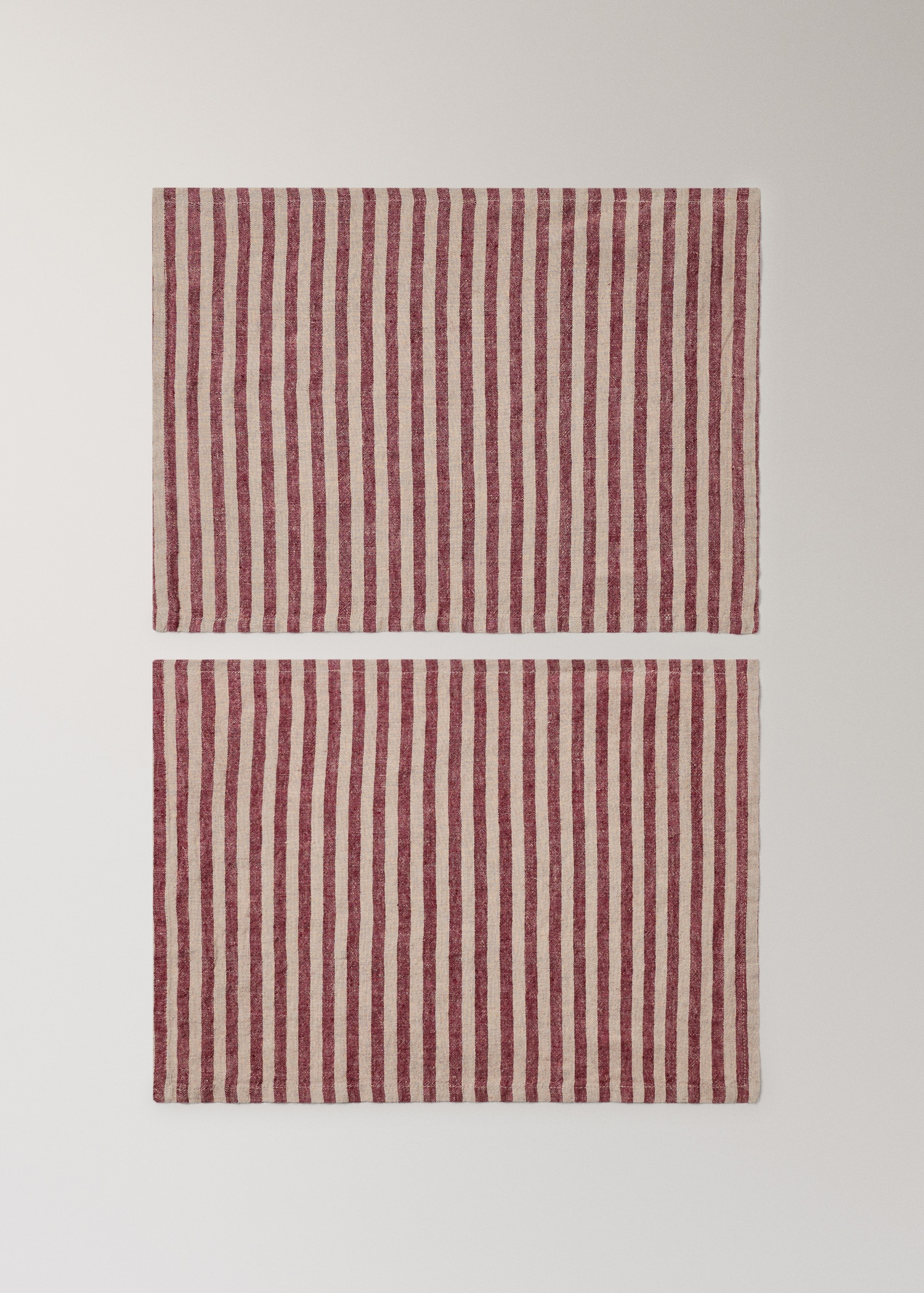 100% Linen. Size: 35x50cm. Set of 2 placemats made from 100% linen, a natural and high-quality material that adds sophistication and elegance to any table. Its linen texture ensures a pleasant feel, as well as resistance and durability, making it a sustainable and reusable option for the Christmas season. The striped design combines functionality and decoration, ideal for festive gatherings. Christmas Collection
