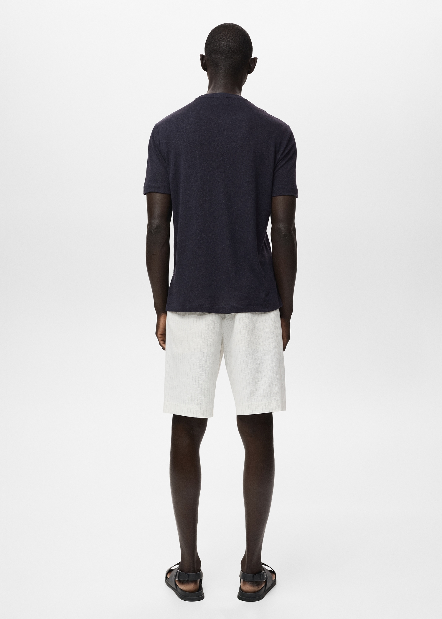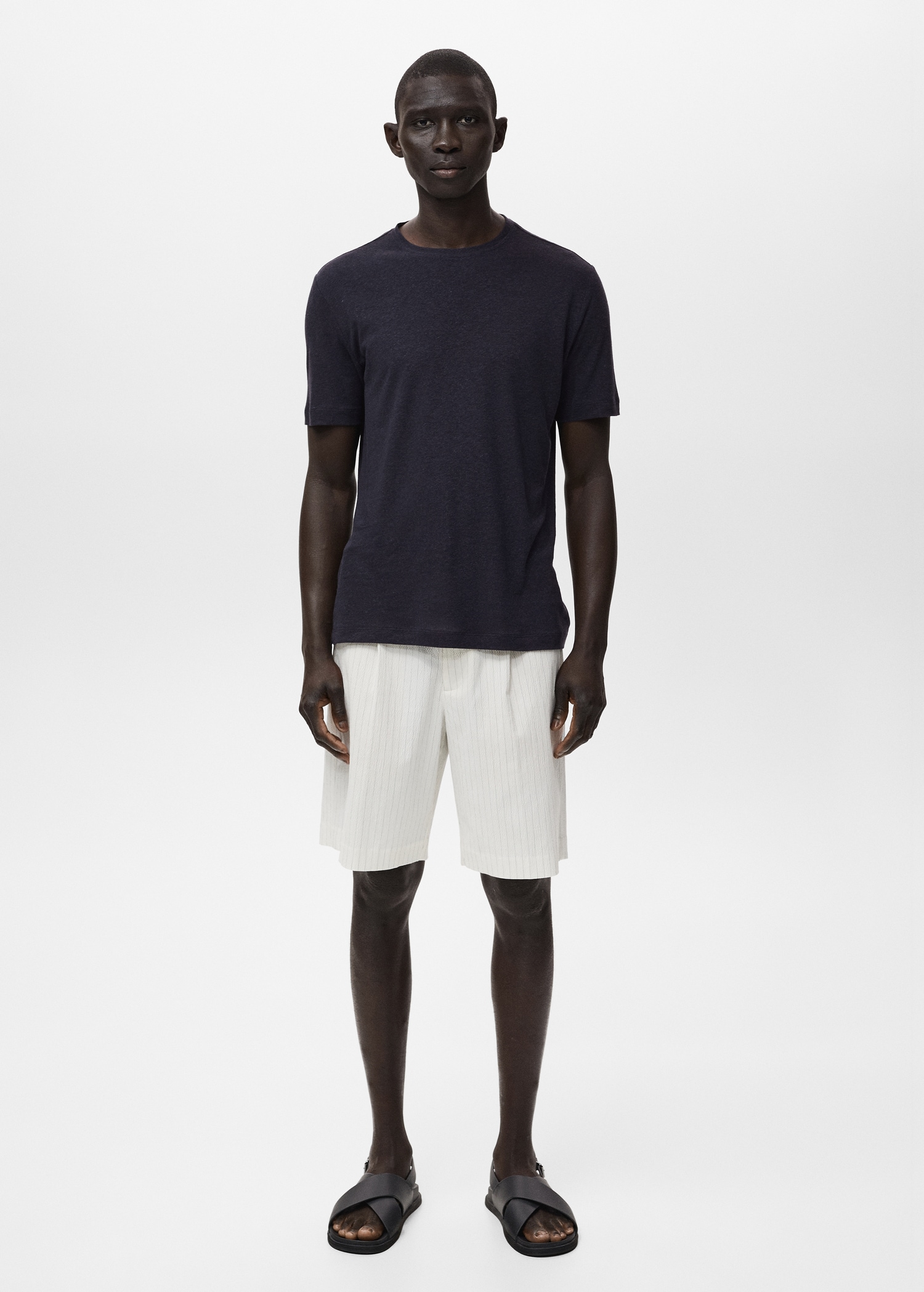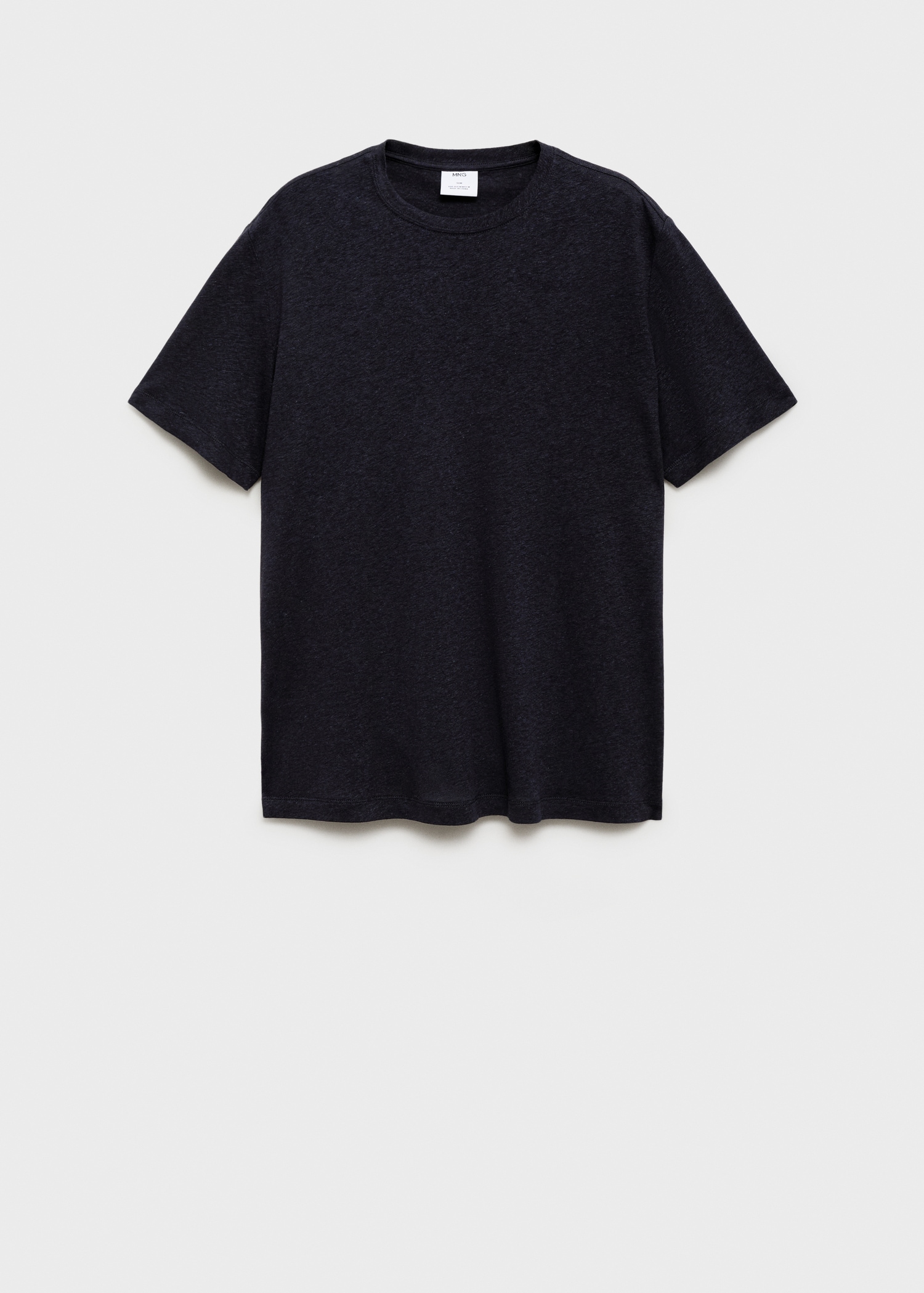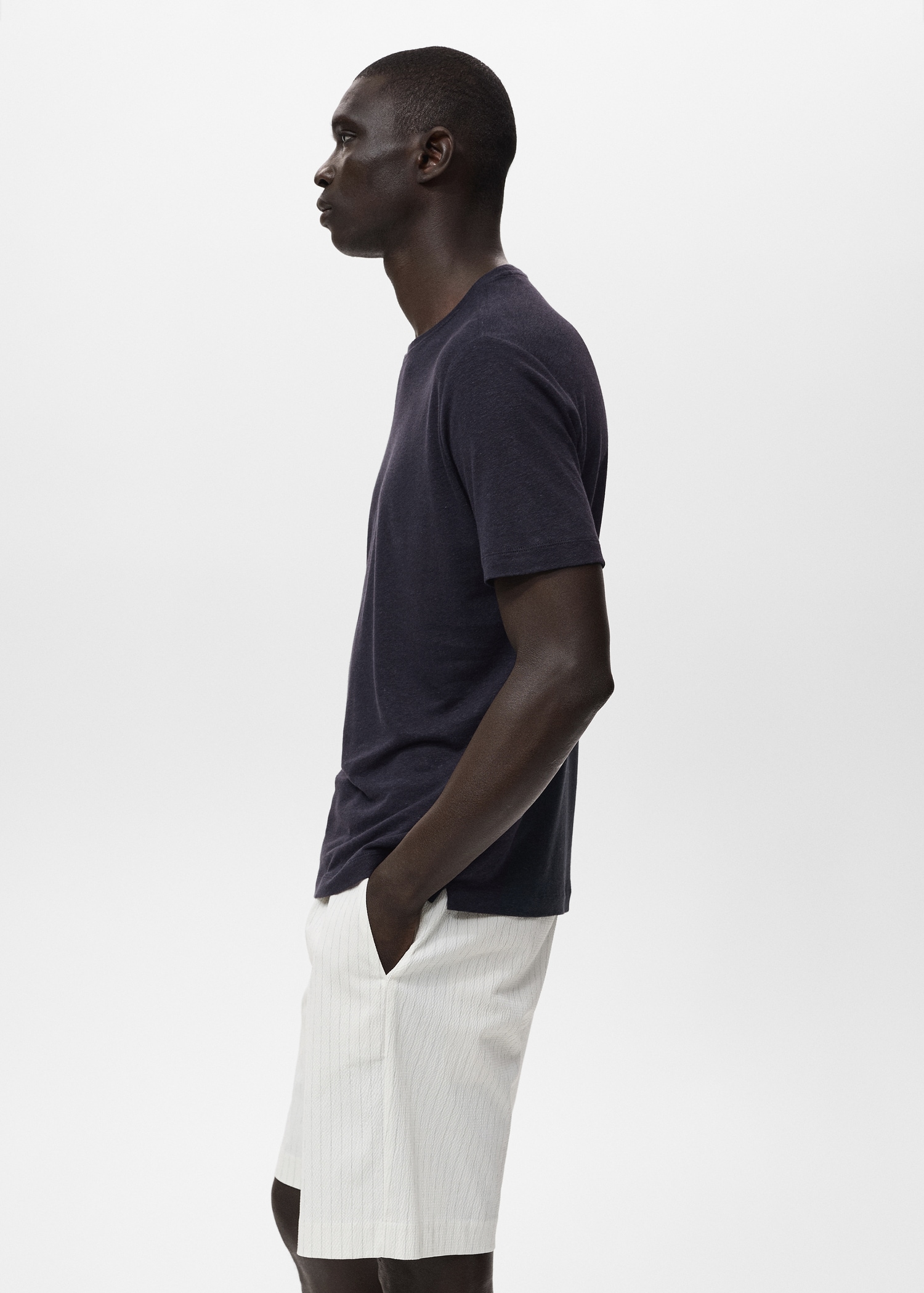Slim fit. Linen blend fabric. Crew neck. Short sleeve. Straight hem. Short sleeves