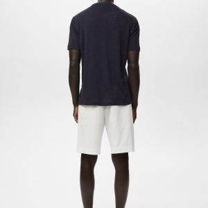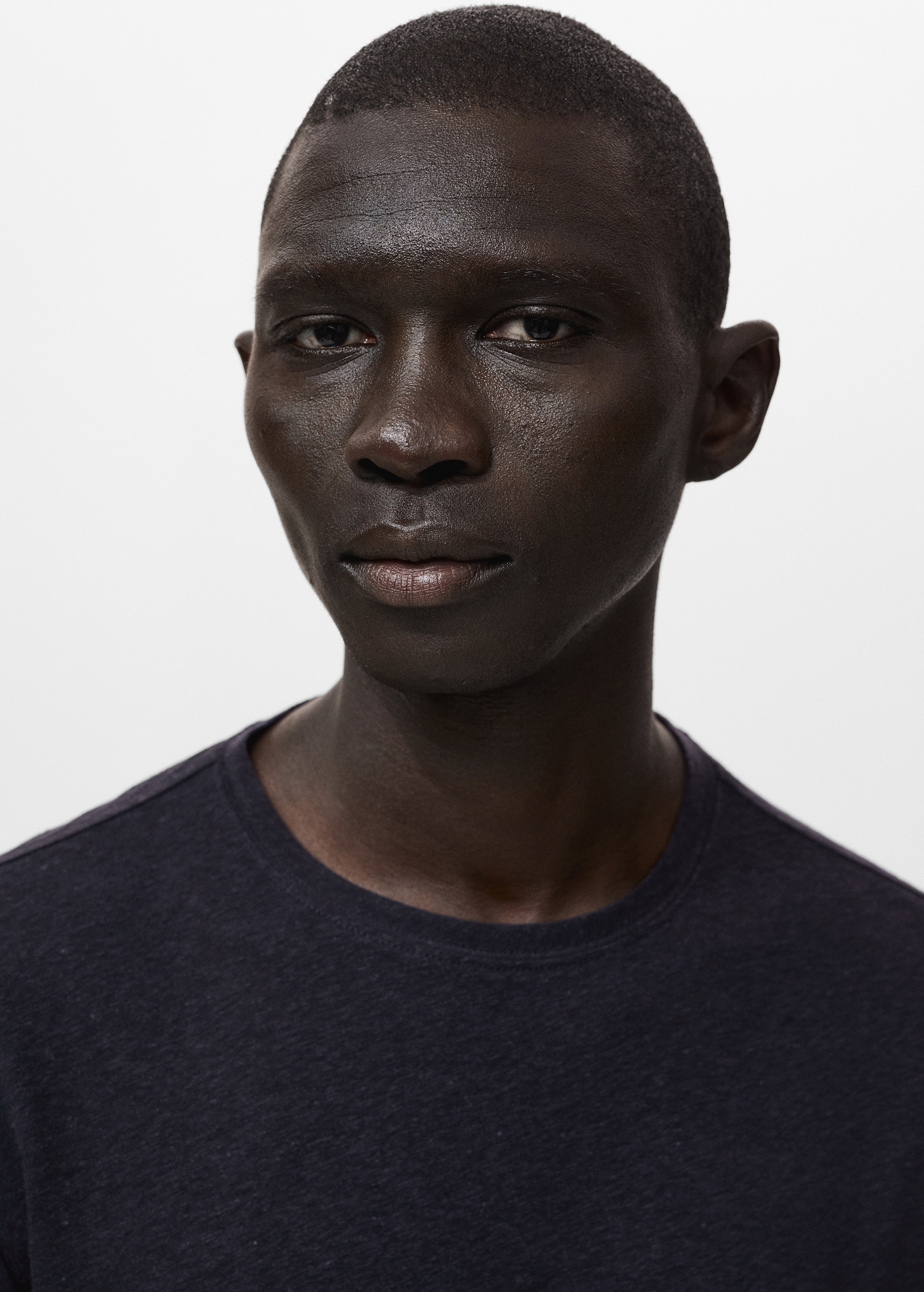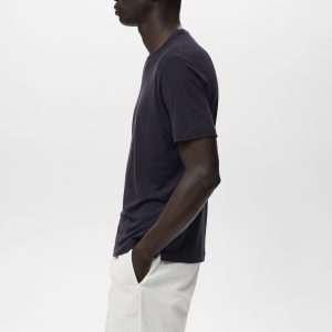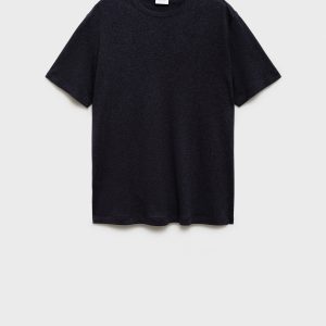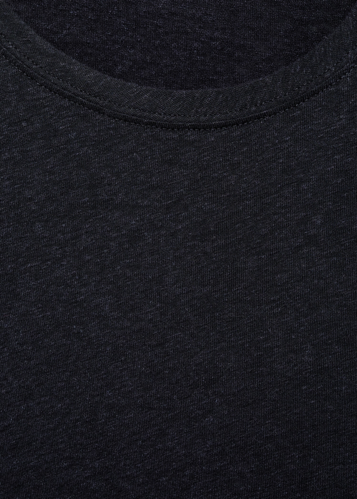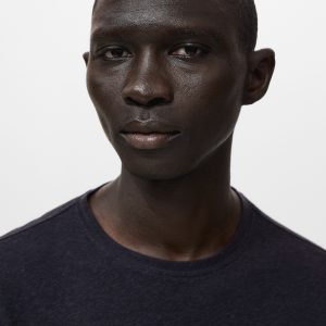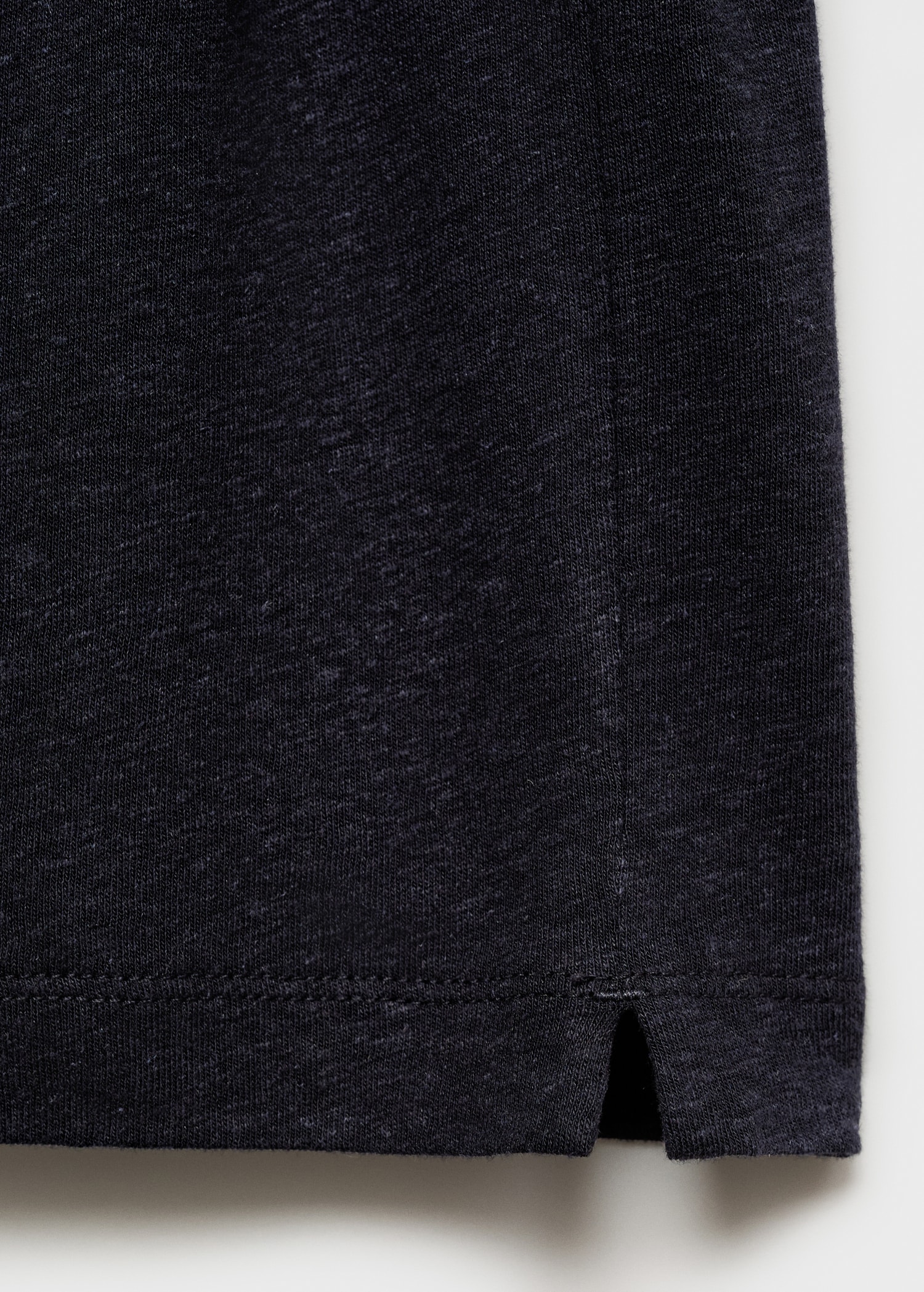 Slim fit. Linen blend fabric. Crew neck. Short sleeve. Straight hem. Short sleeves