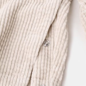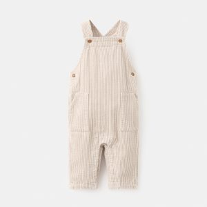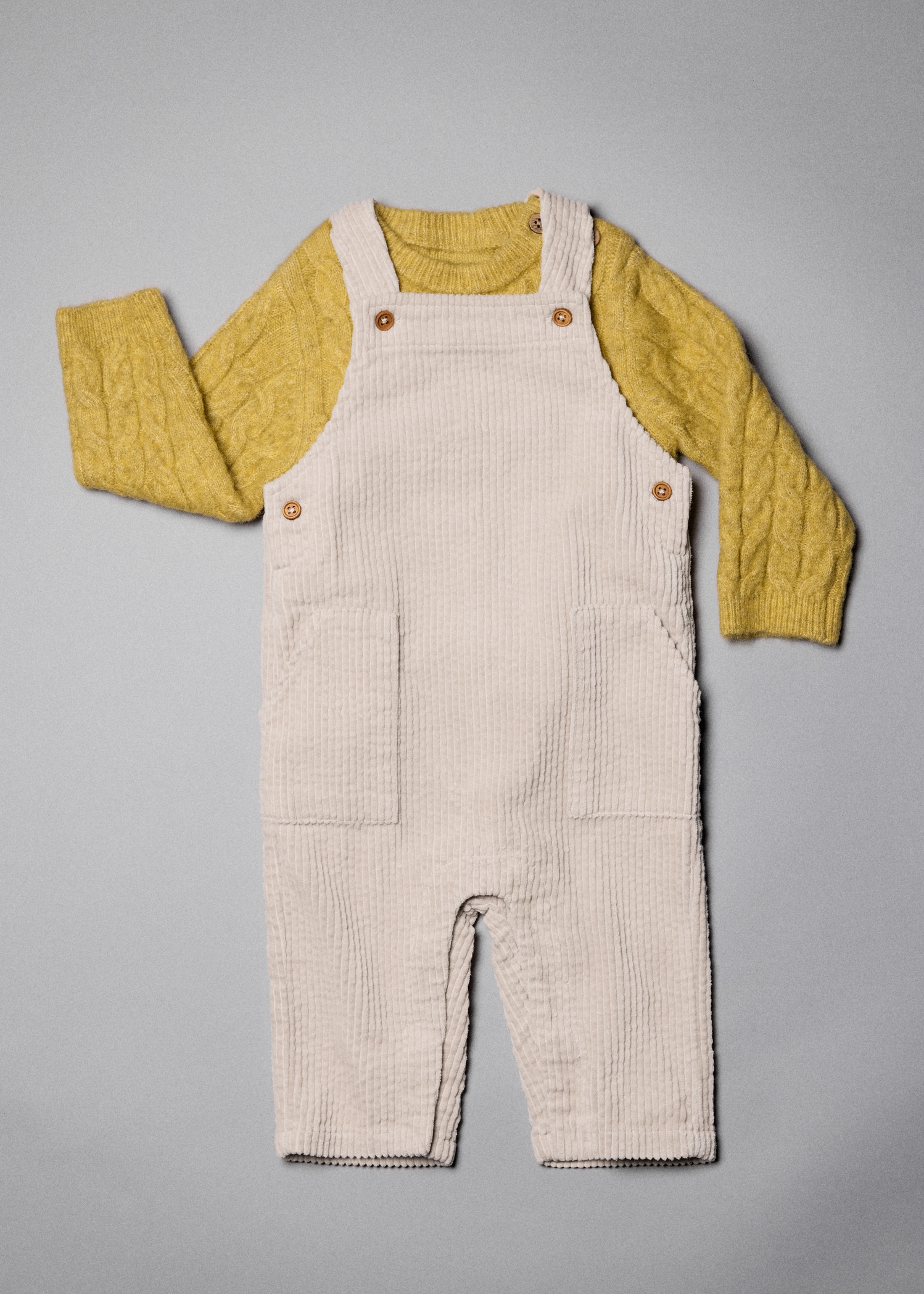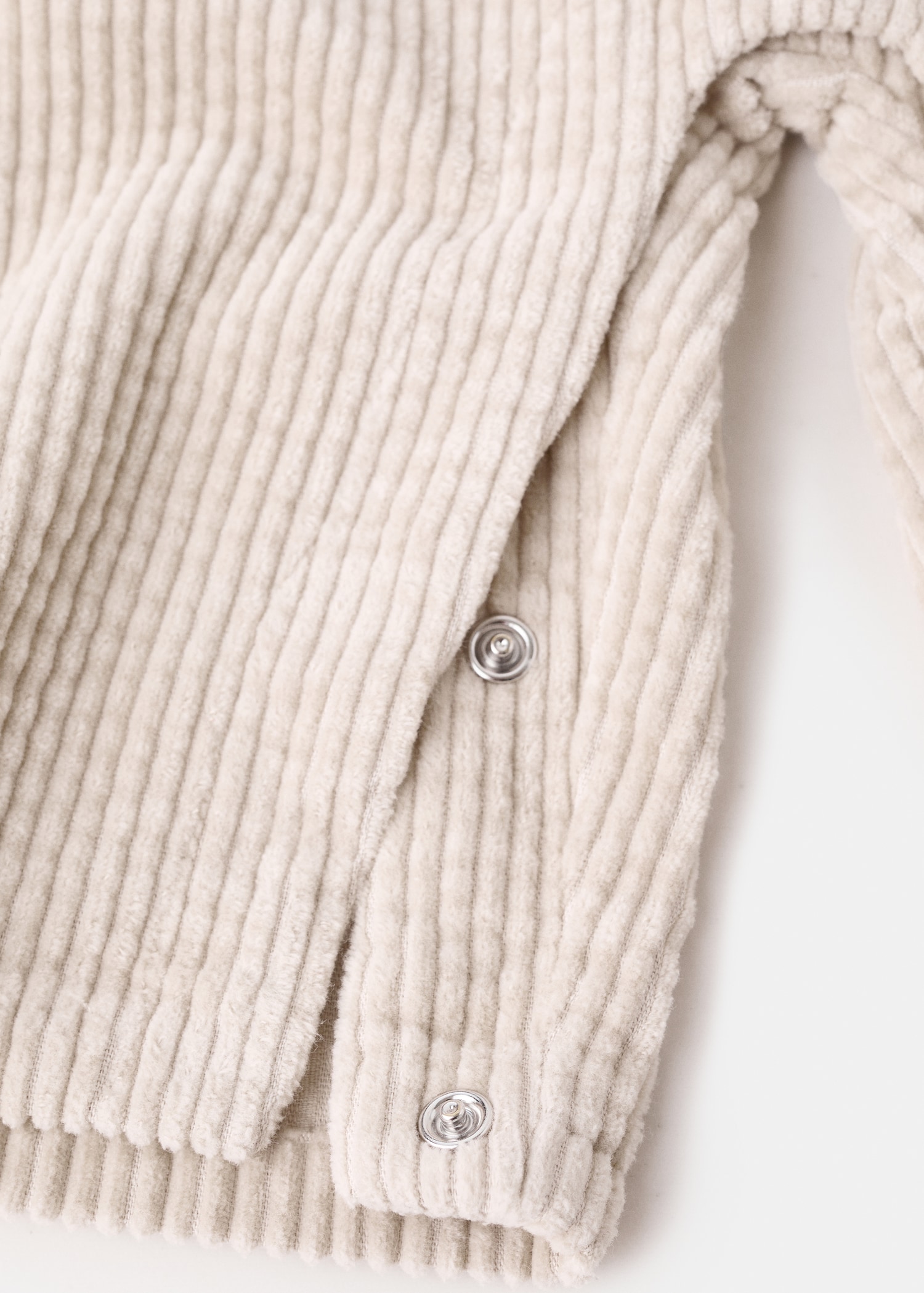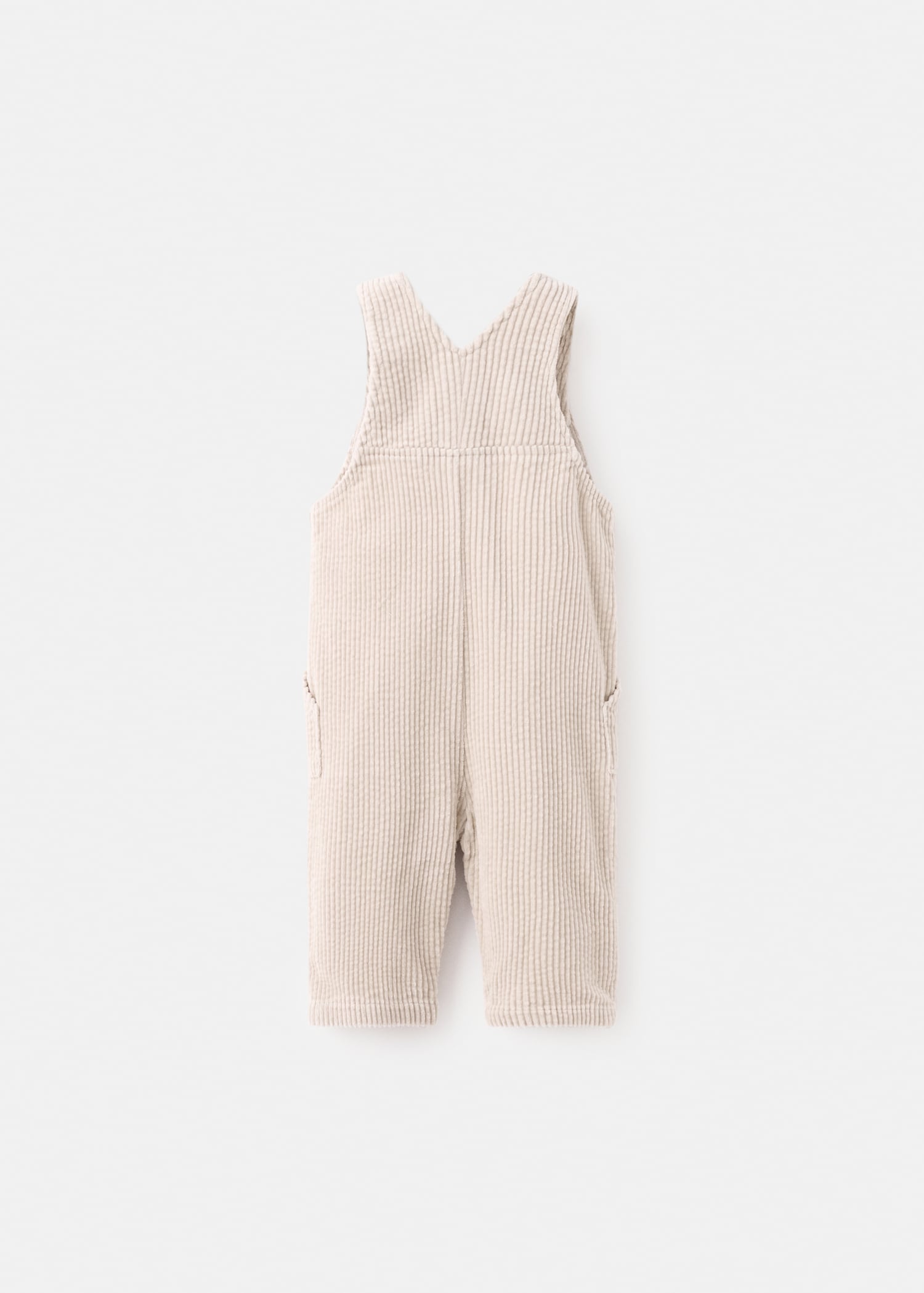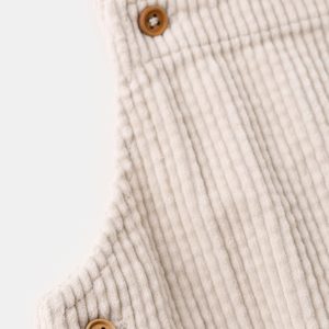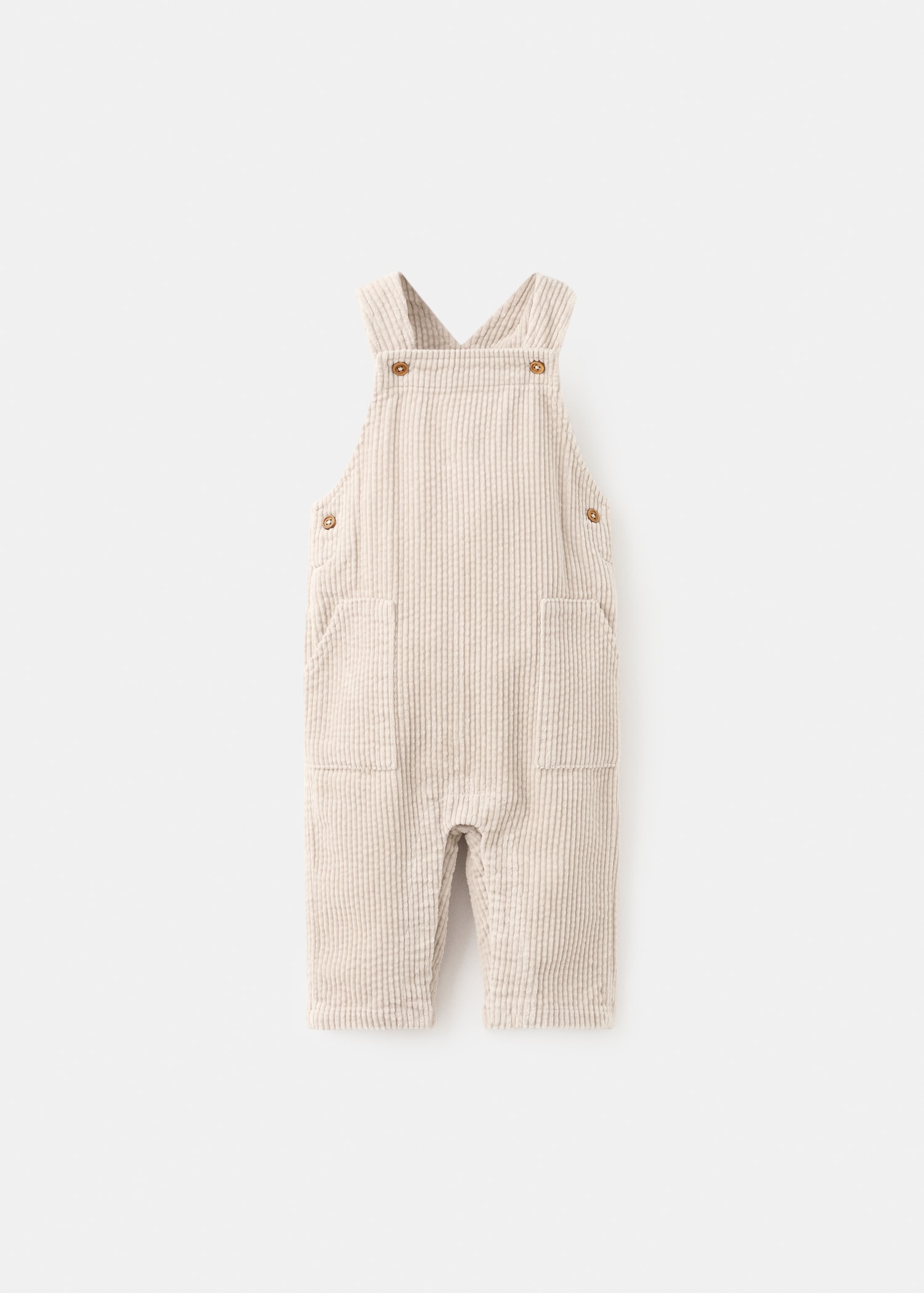 100% cotton fabric. Corduroy fabric. Long design. Straight Design. Straps with button closure. Side button closure. Two side pockets