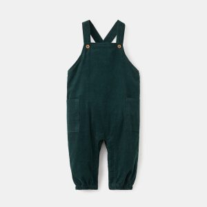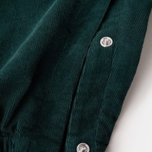 100% cotton fabric. Corduroy fabric. Long design. Straight neckline. Straps with button closure. Bottom opening with button closure