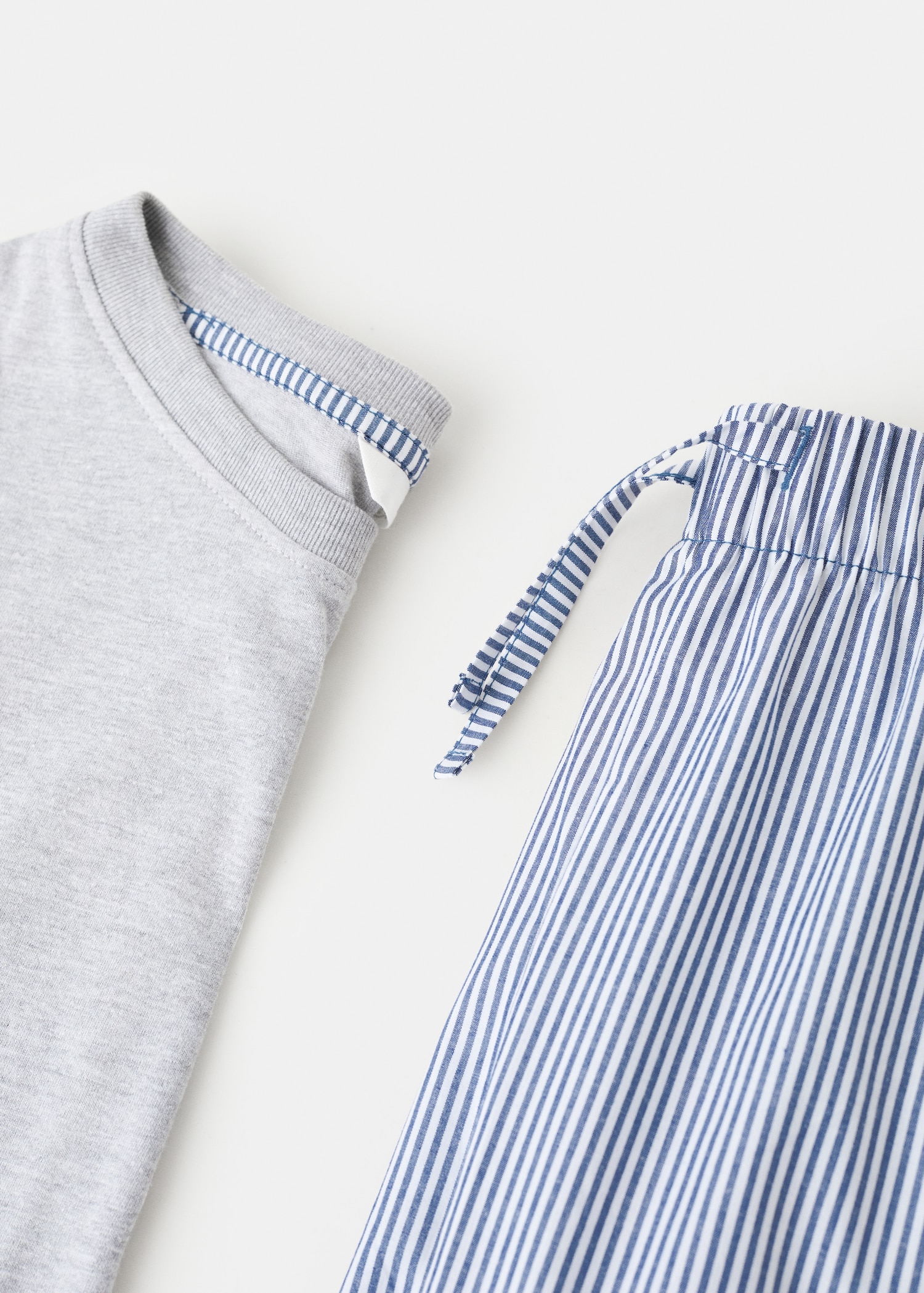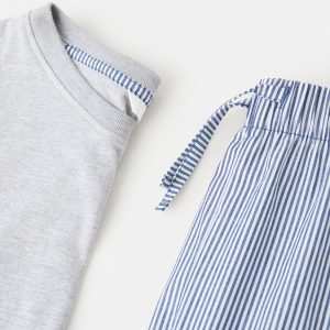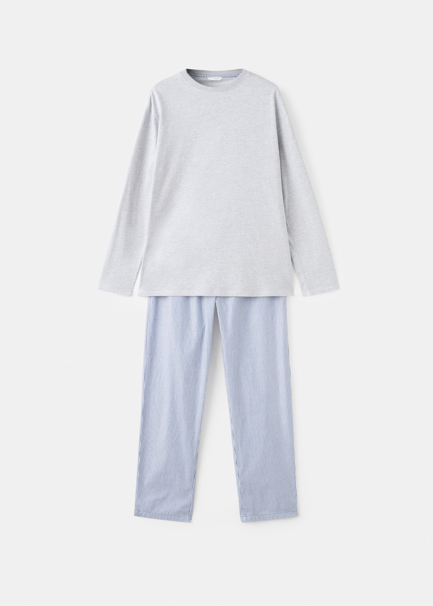 Pack of 2. Long pajamas. Straight Design. Long-sleeved t-shirt. Stripes long pants. Elastic waist with drawstring