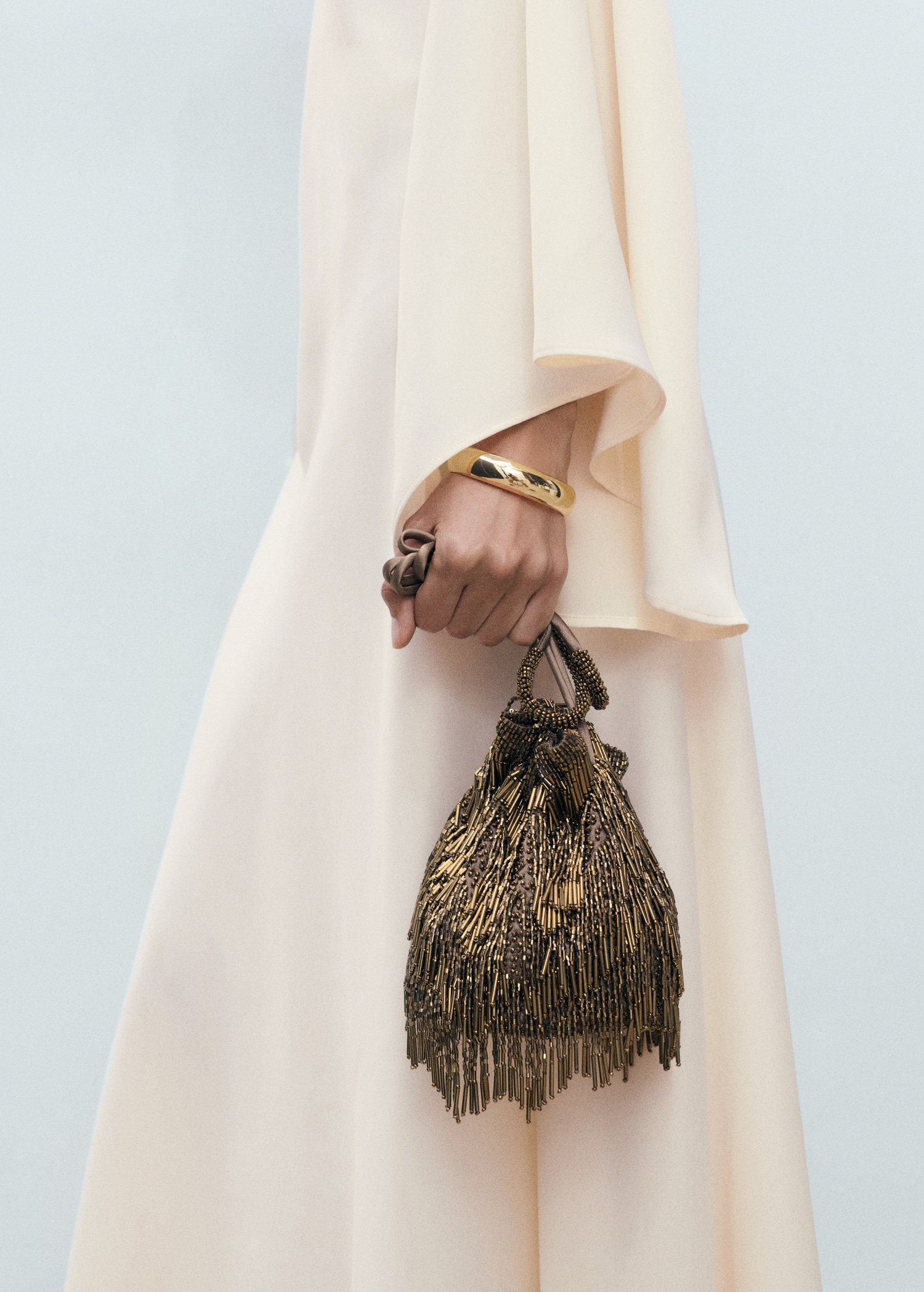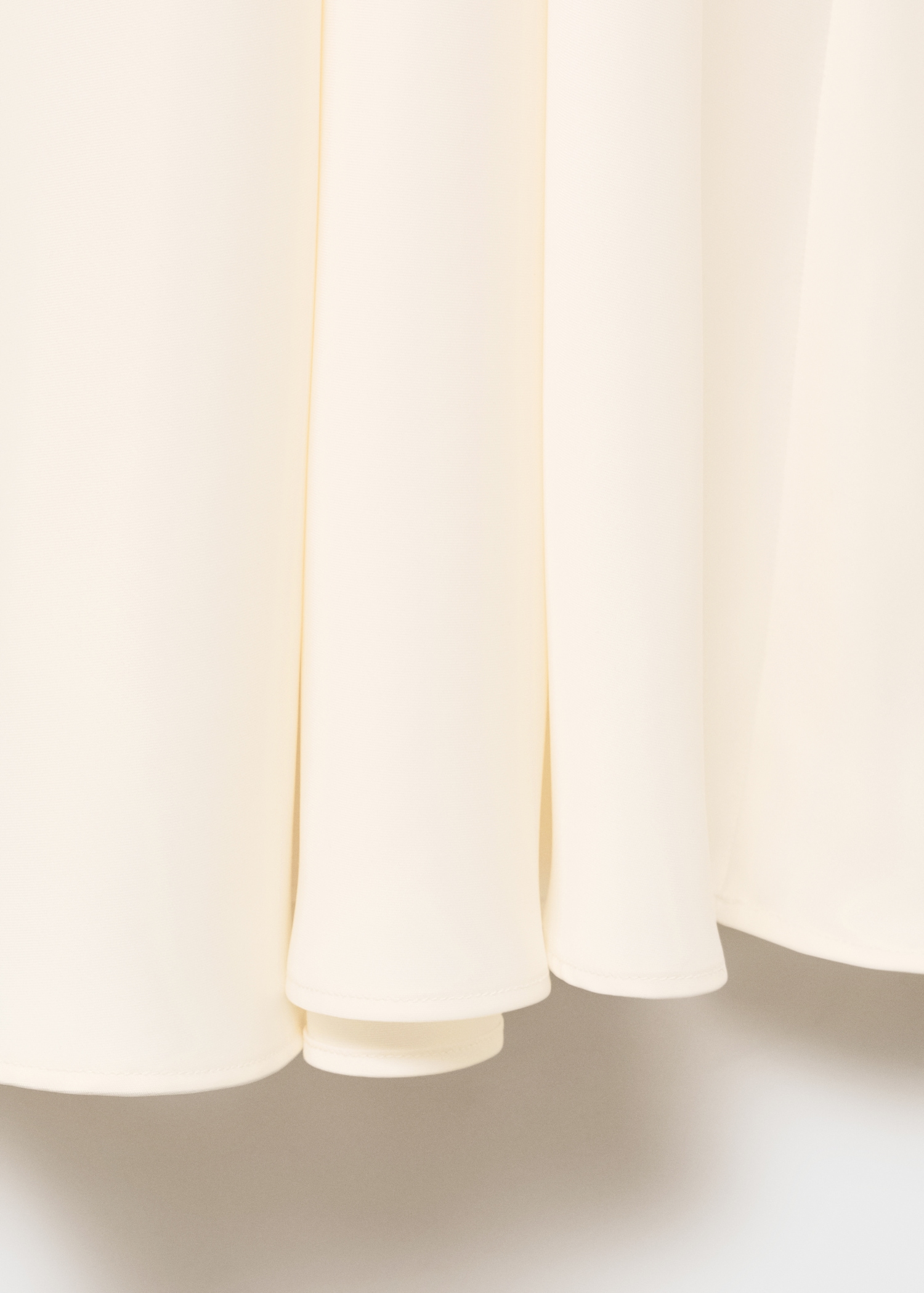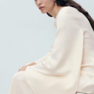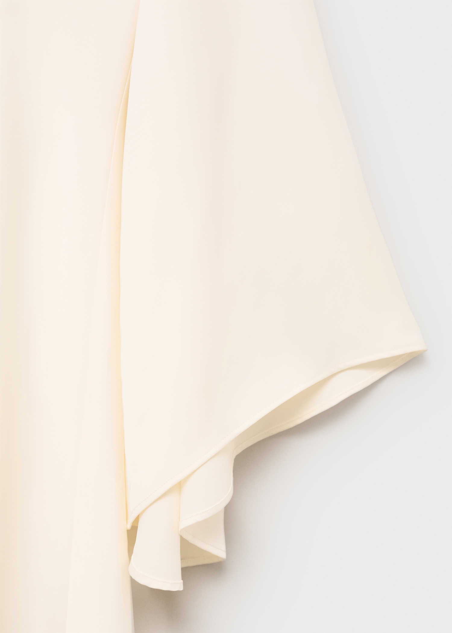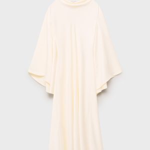 Satin weave. Long design. A-line design. Draped neckline. Long flared sleeve. Back zipper closure. This garment is part of our event collection, designed to make you the perfect guest at any party, wedding, or ceremony.. Fluid fabric with satin finish. Ramadan Collection