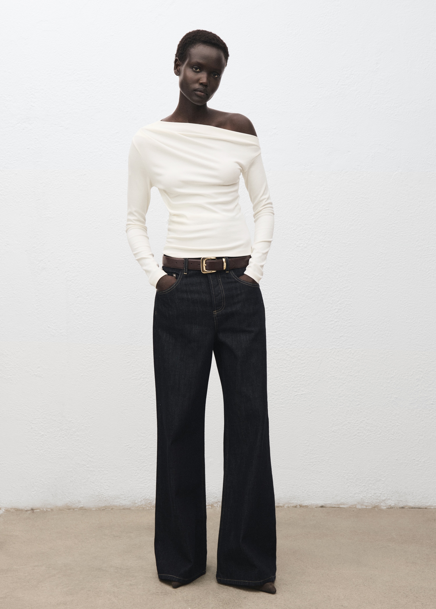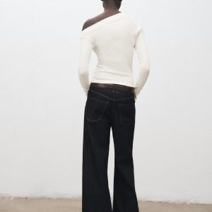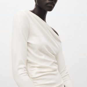 Long-sleeved t-shirt with asymmetrical neckline