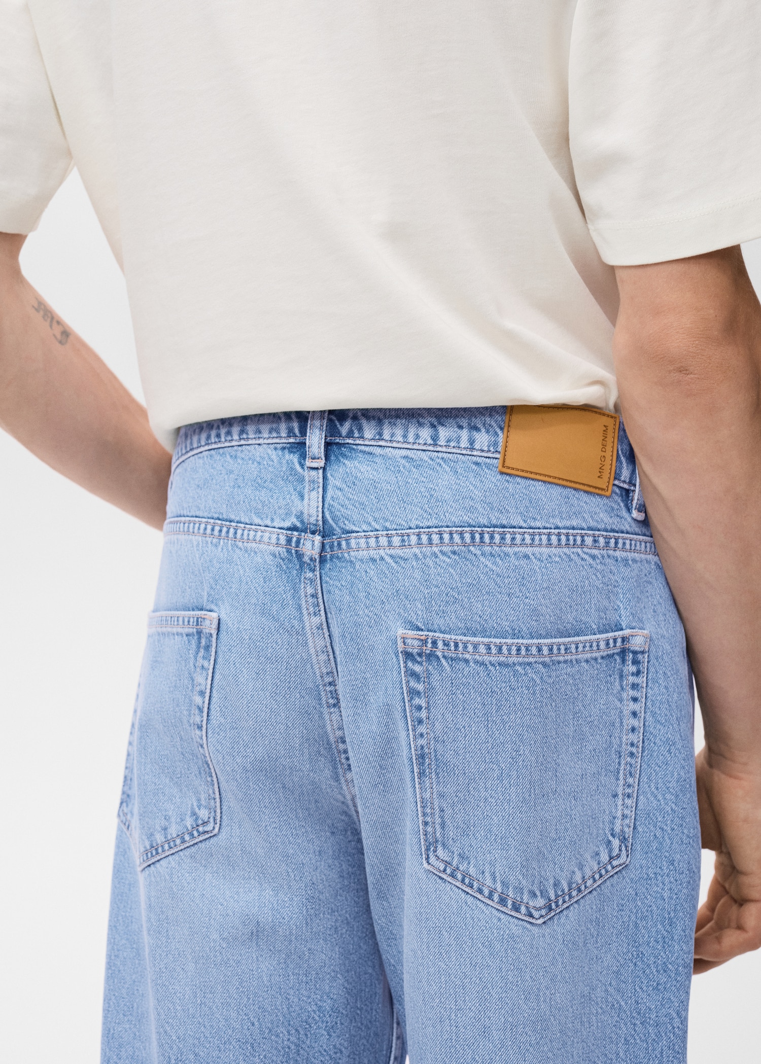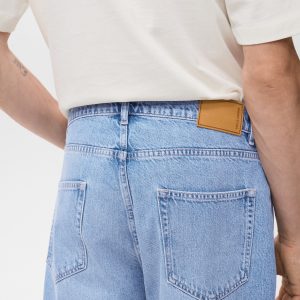 Tapered fit. 100% cotton fabric. Two front patch pockets. Coin pocket. Two patch pockets at the back. Zip and button closure. Belt loops