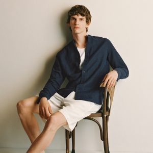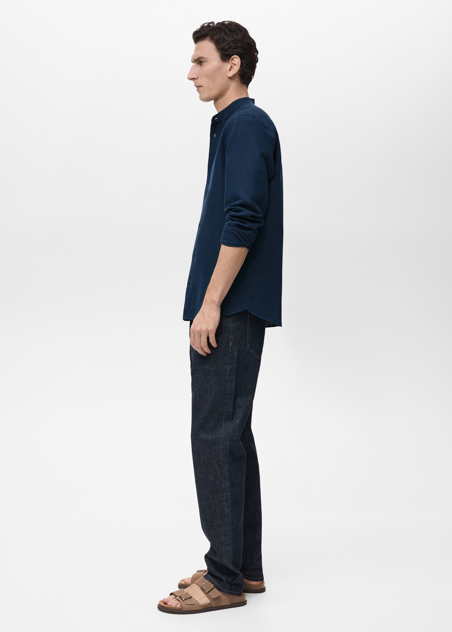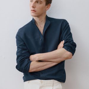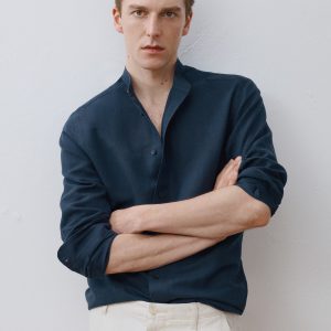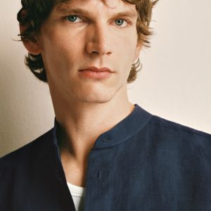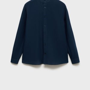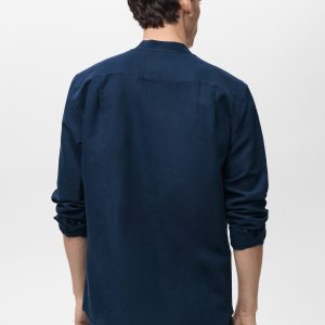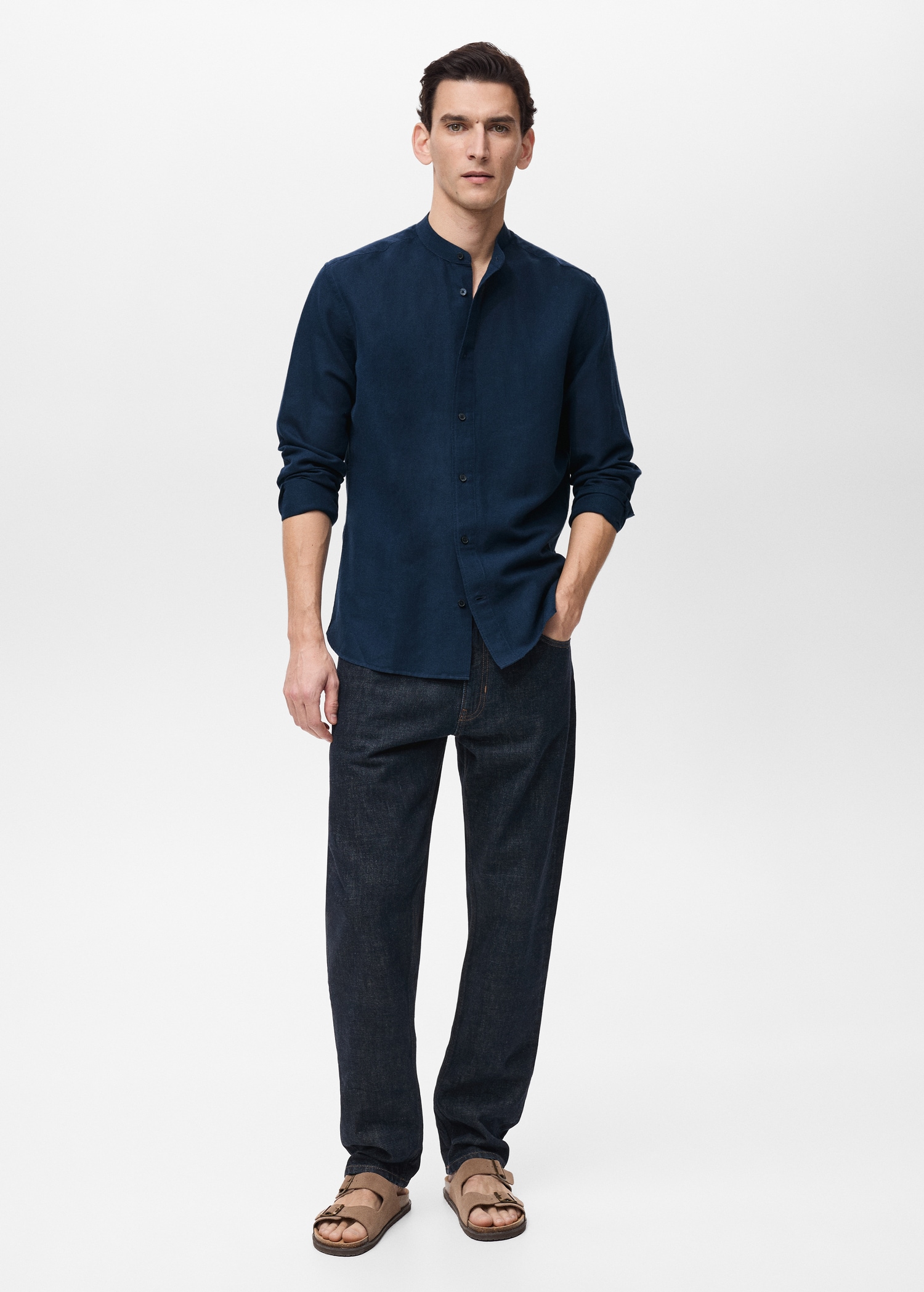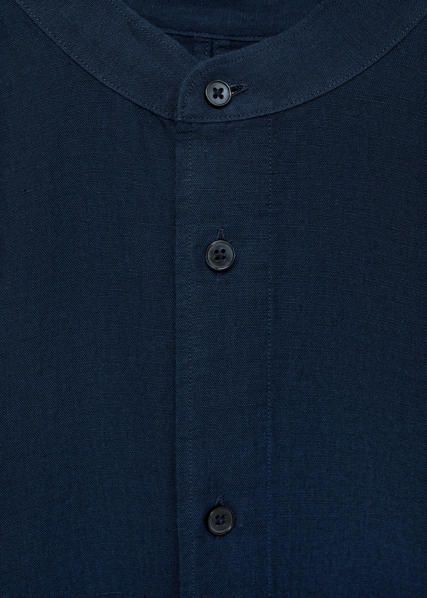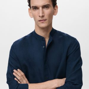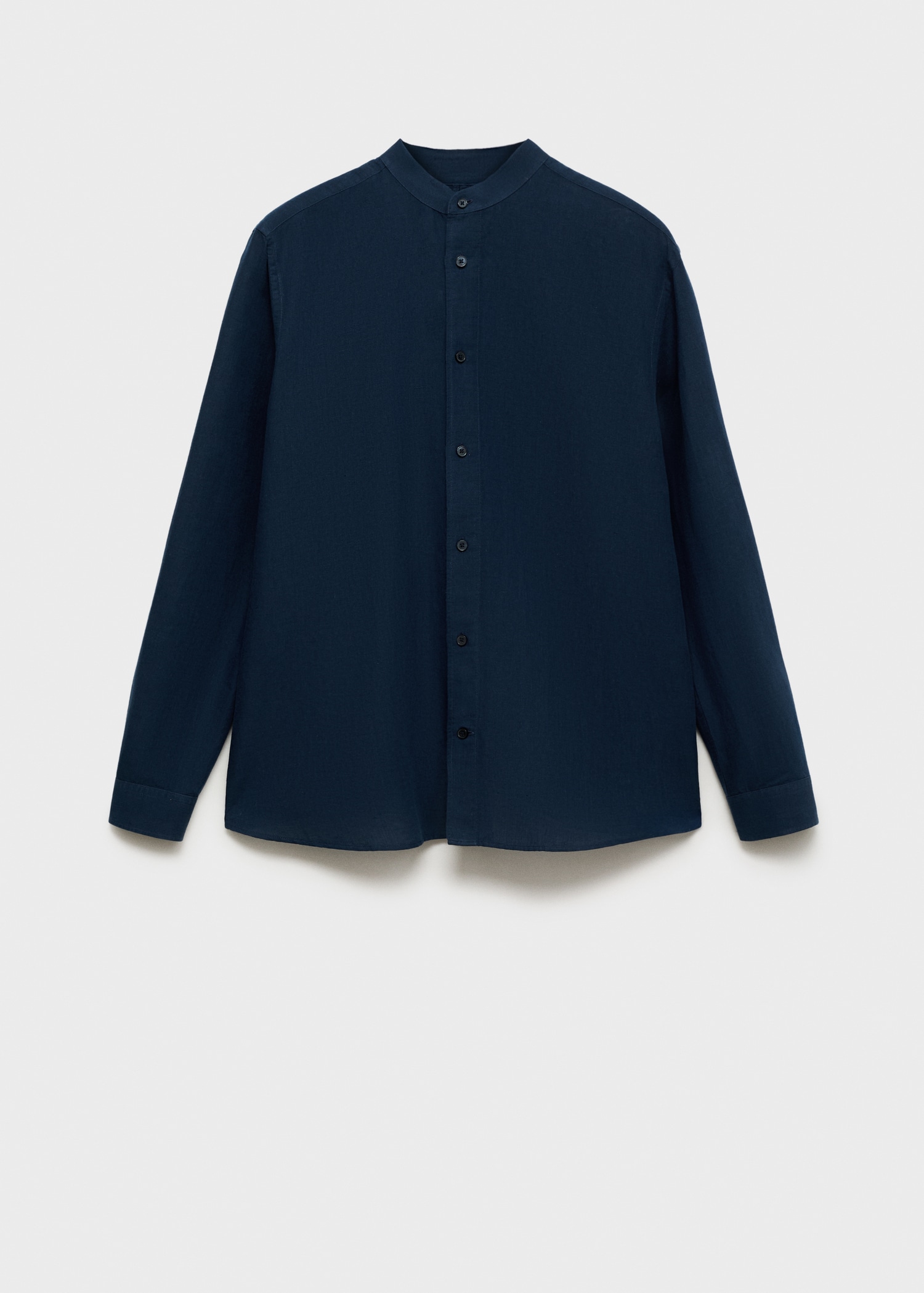 Cotton blend fabric. Mandarin collar. Button closure at the front. Long sleeves with buttoned cuffs. Back dart detail. Rounded hem. Classic fit. The khaki and green models are online exclusives. Linen and cotton blend fabric. Front button closure. Buttoned cuffs
