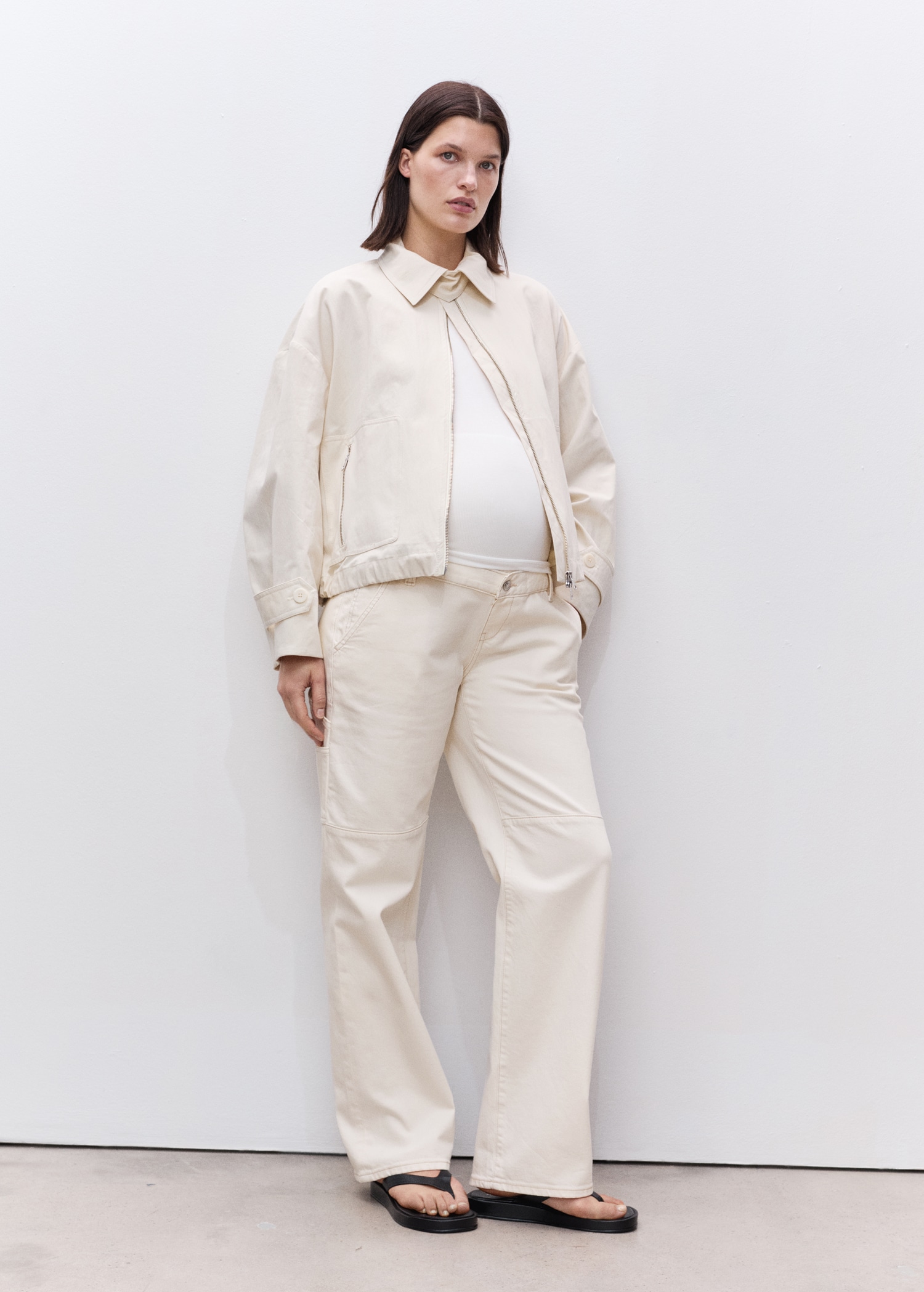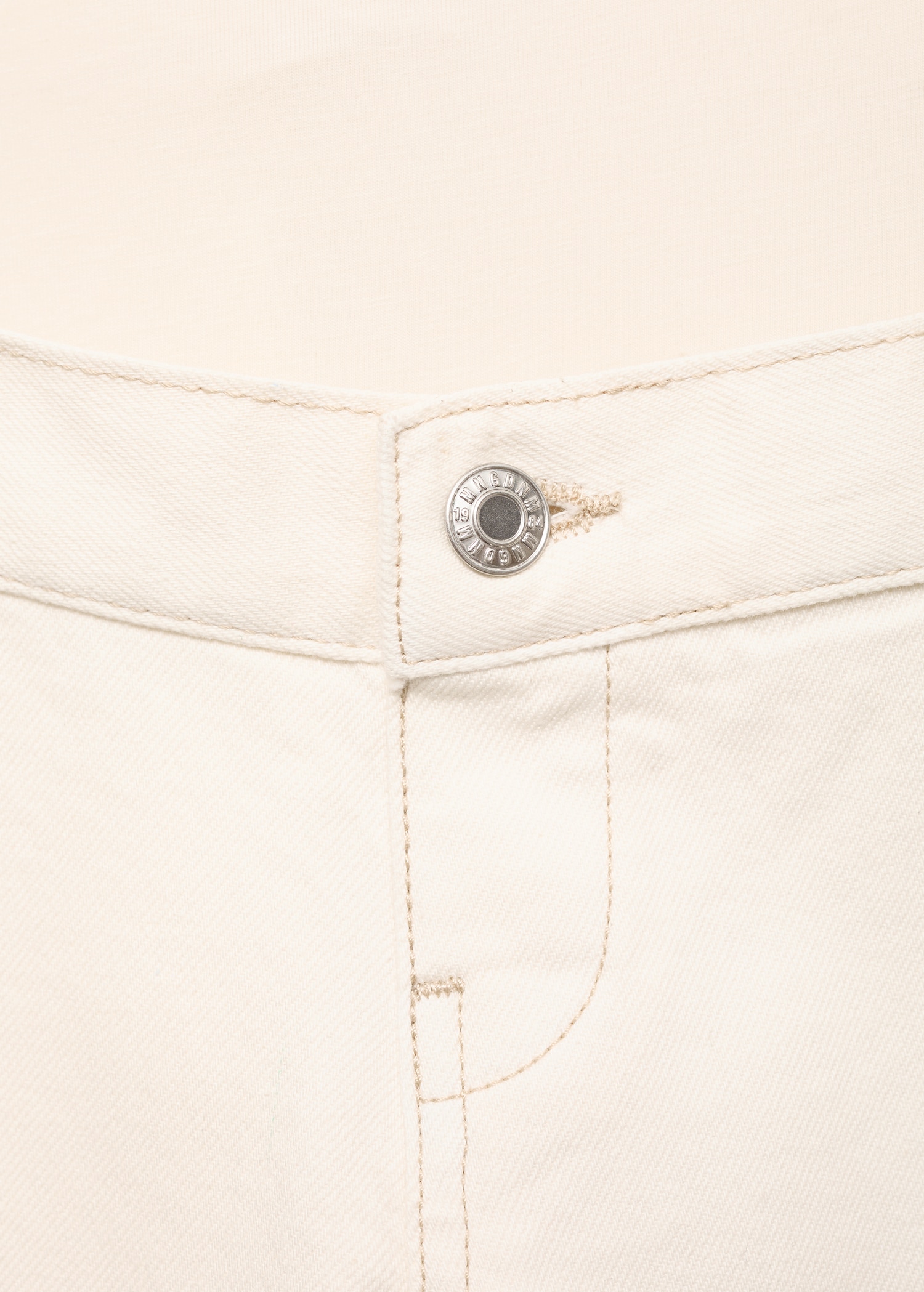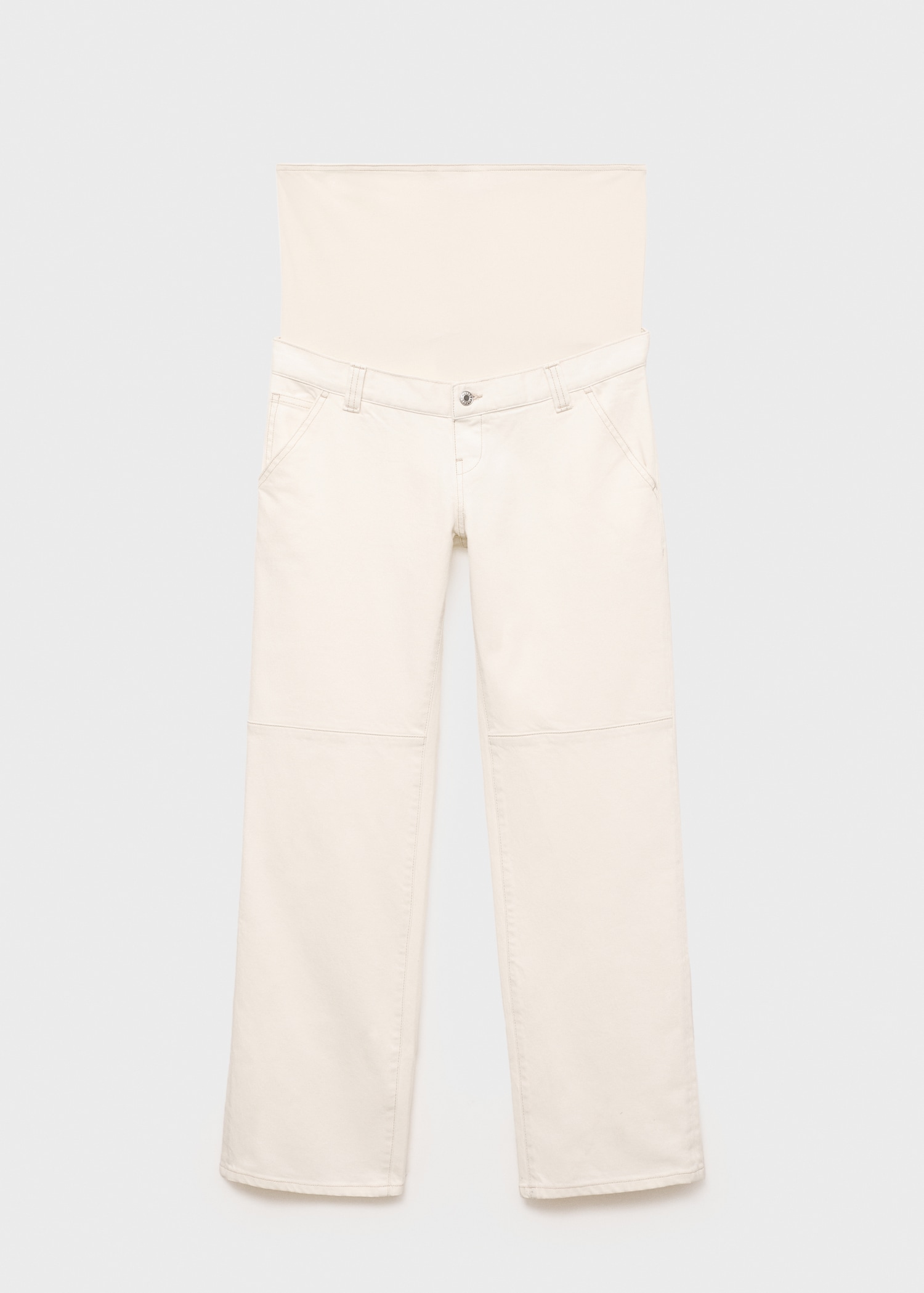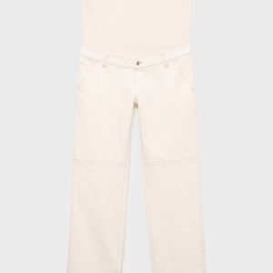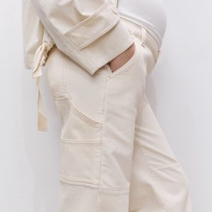 Cotton denim fabric. Long design. Wide-leg design. Low waist. Belt loops. Two side pockets. Soft elastic at front side waistband for added comfort and support the growing bump. Elastic waistband. Front button closure. We recommend you buy your usual size. Provides comfort and freedom of movement. Maternity. Online Exclusive