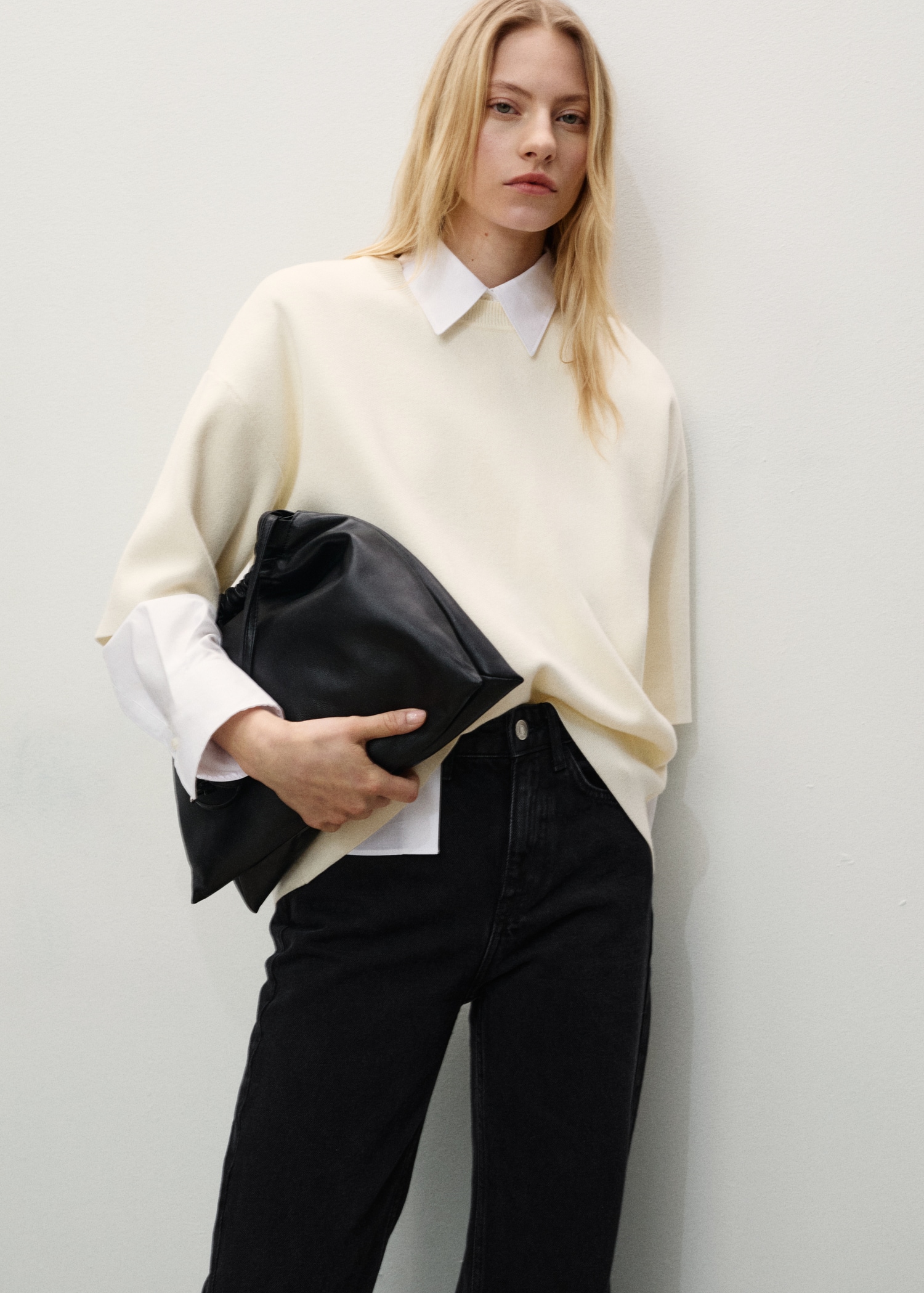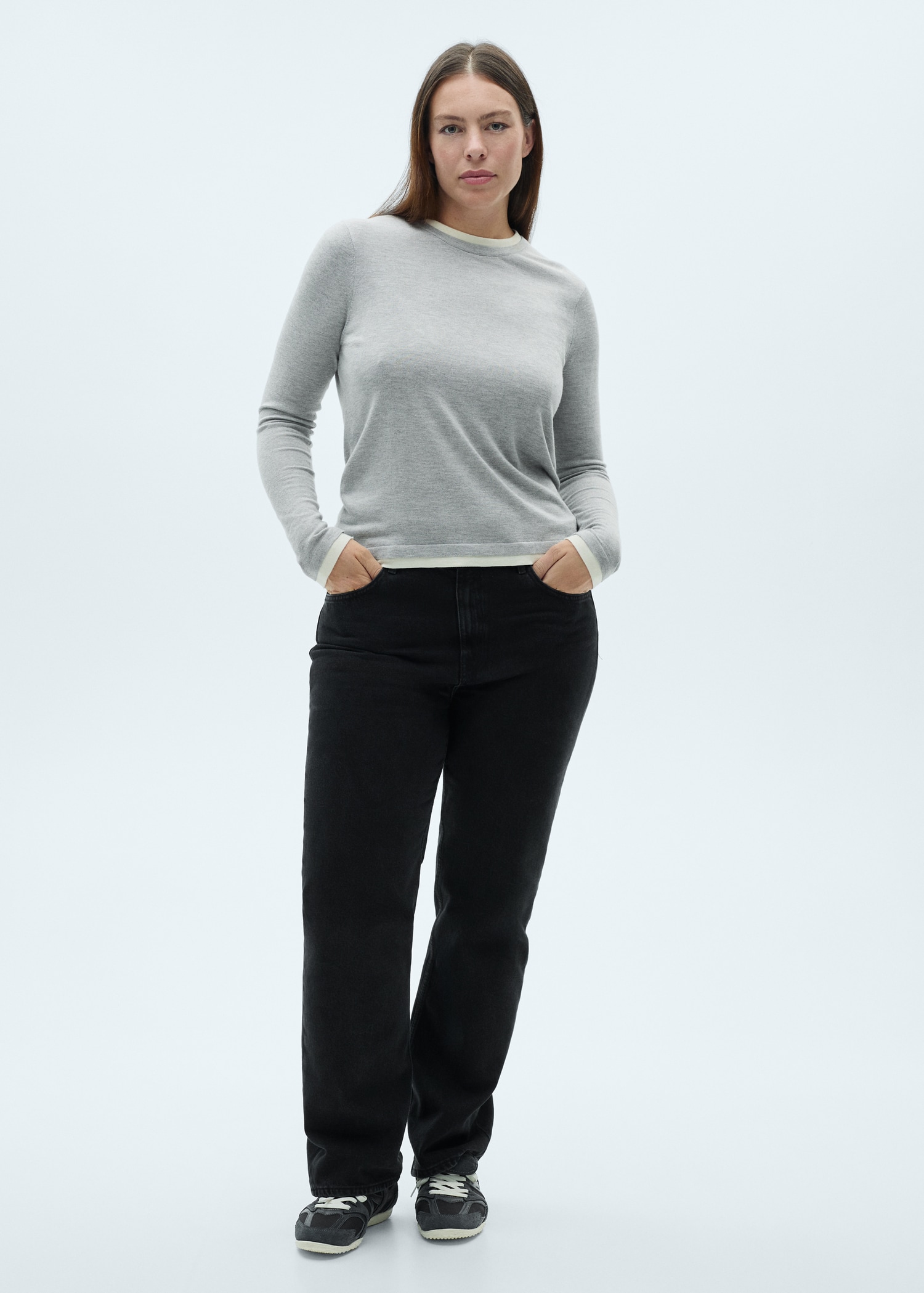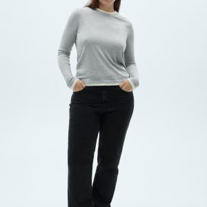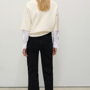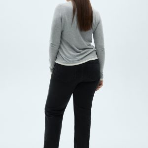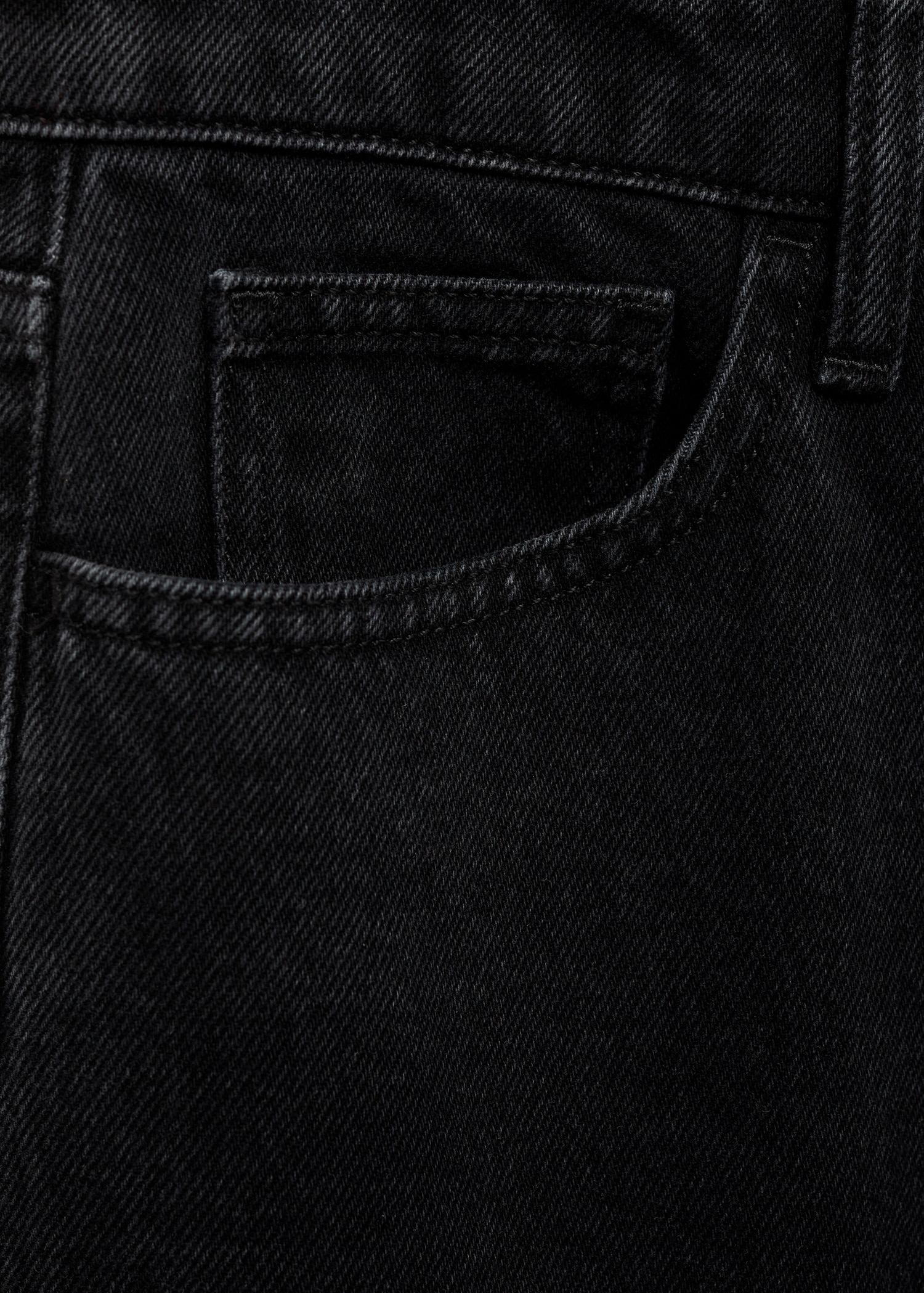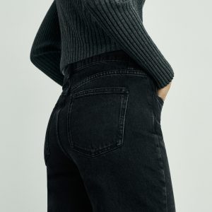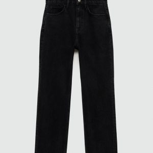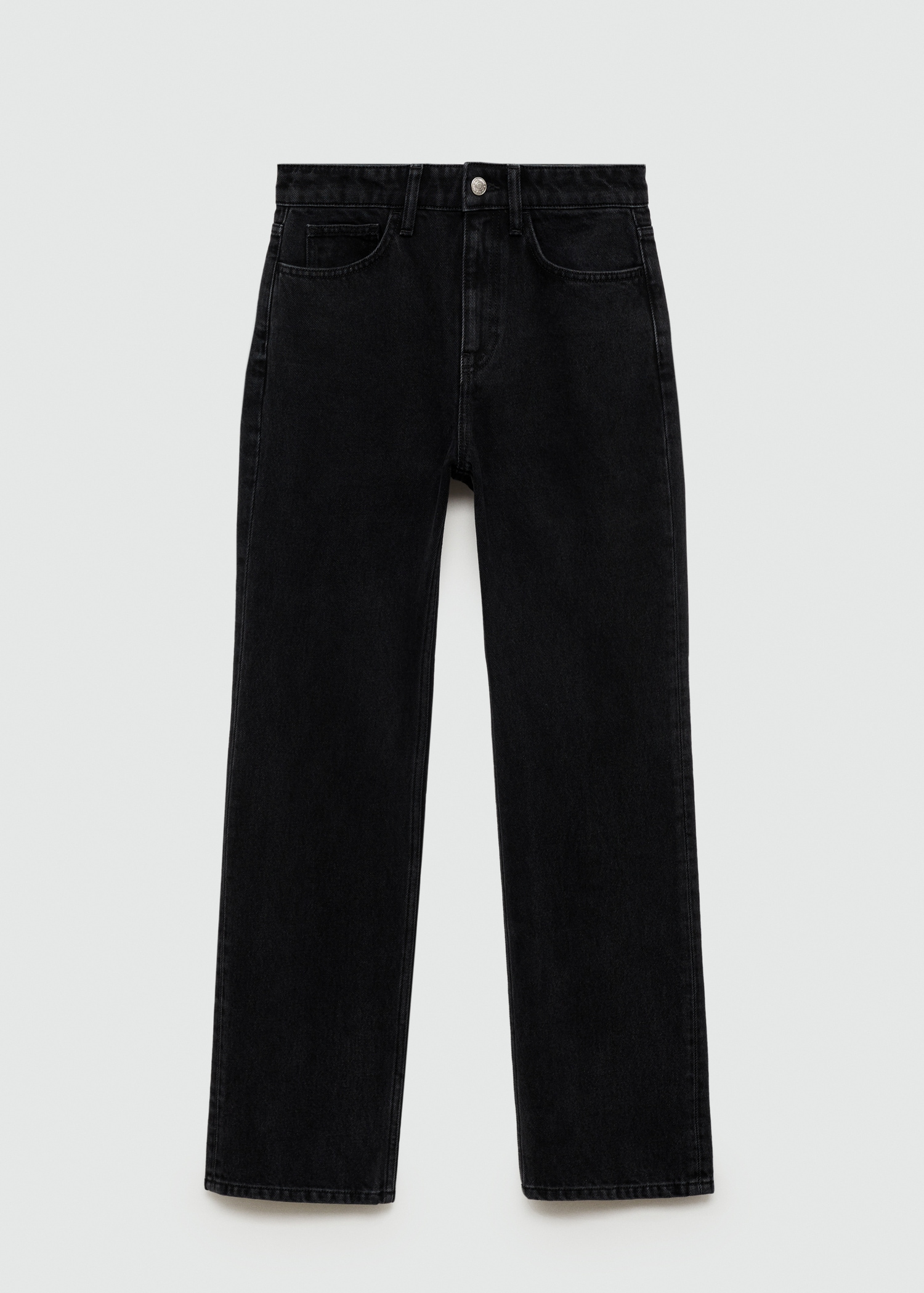 Recycled cotton-blend fabric. Standard design. Mid-rise. Straight Design. Five pockets. Zip and button closure. Belt loops. Available Plus. Inseam 30.71 in. Full length. Cotton denim fabric. Long design. Two side pockets. Two patch pockets at the back