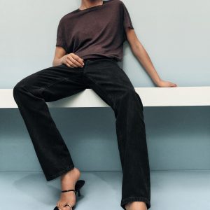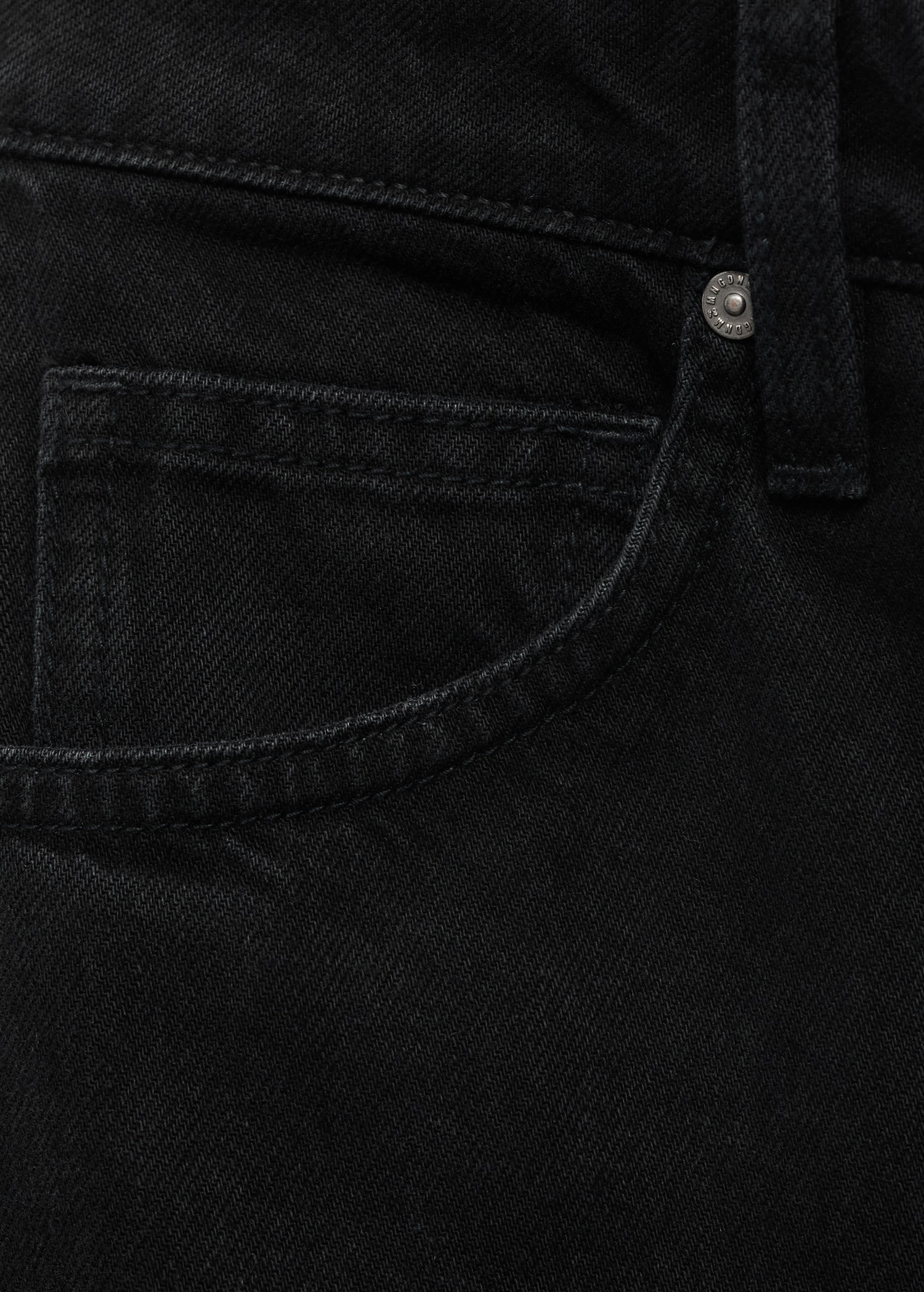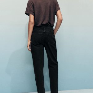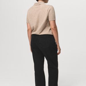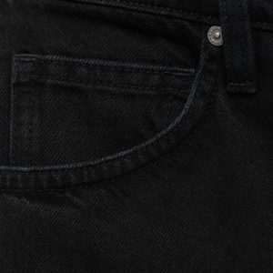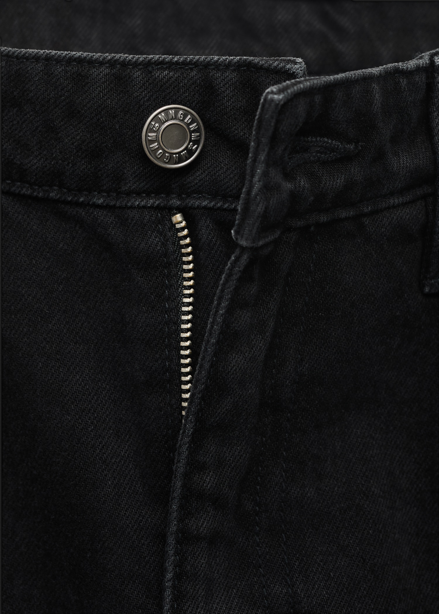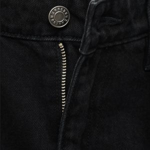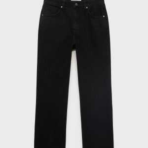 Cotton denim fabric. Long design. Straight Design. Mid-rise. Belt loops. Five pockets. Front zipper and button closure. Available Plus