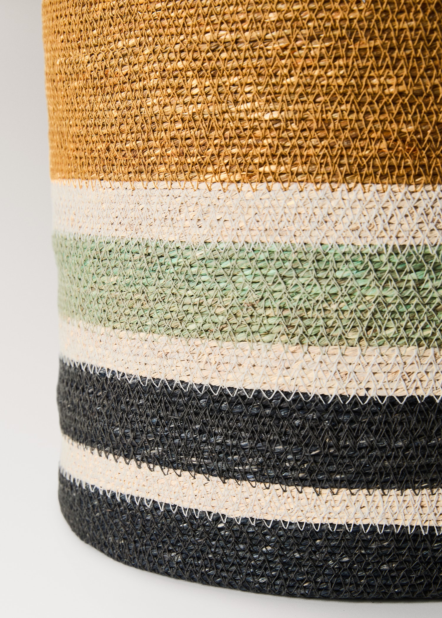 100% seagrass. Size: 30x30x30 cm. Multicolor design. Adds a colorful and special touch. Versatile and adaptable to multiple styles. Coordinates with more products from the collection