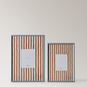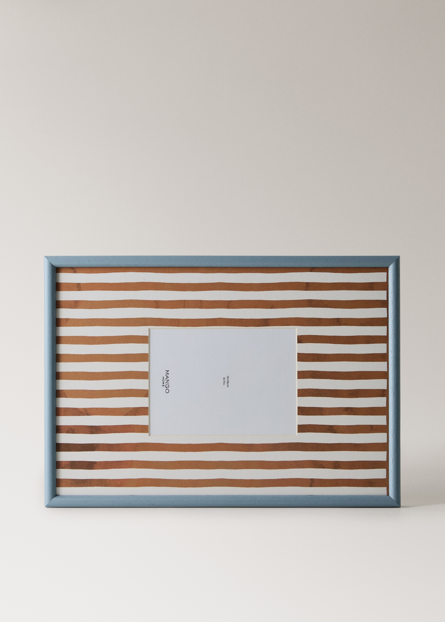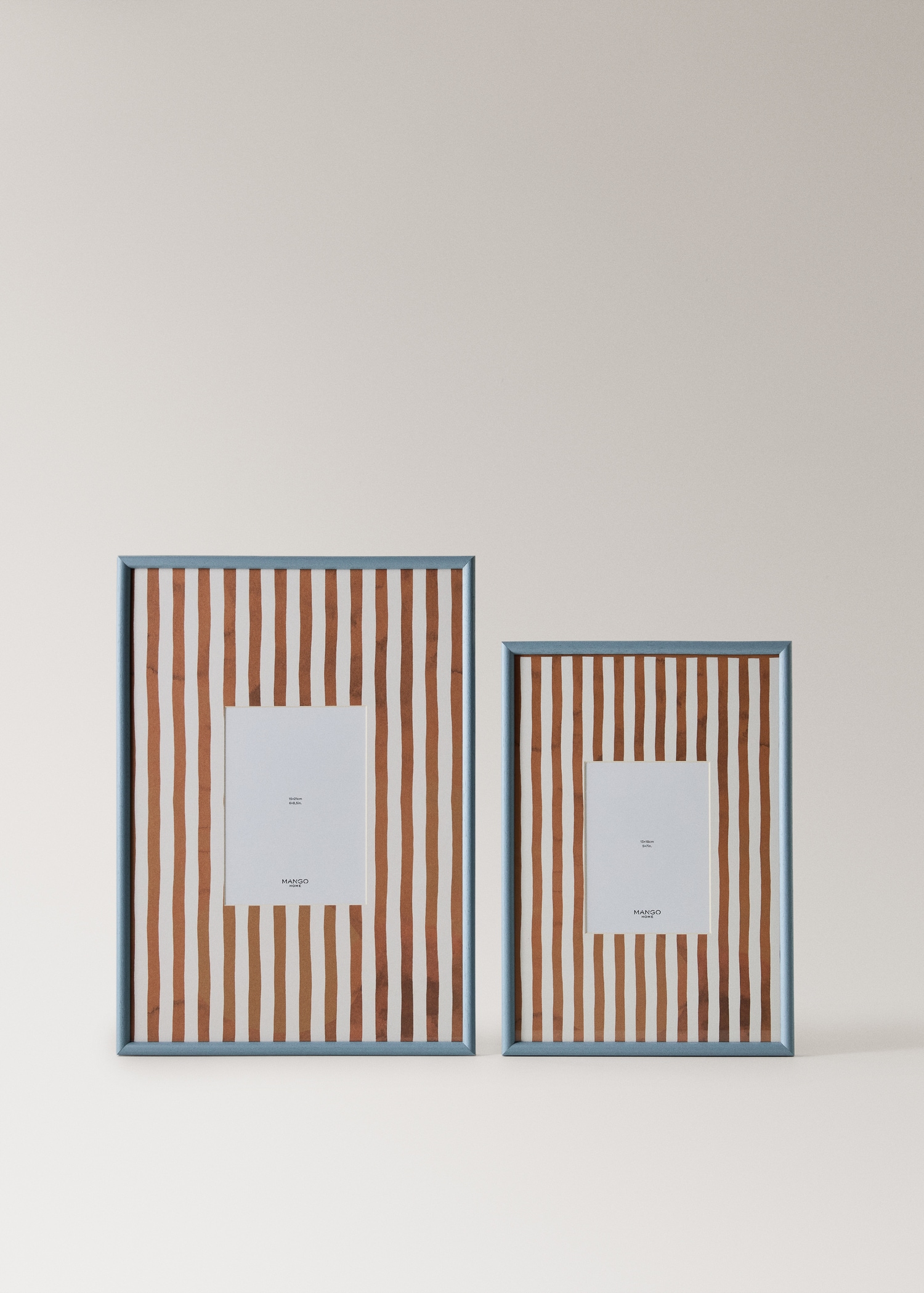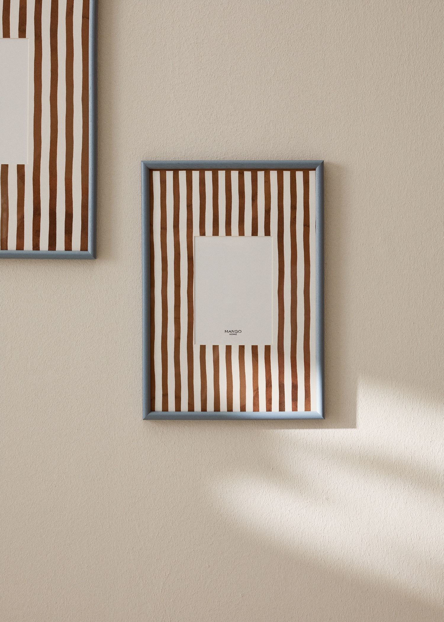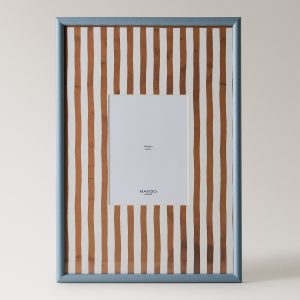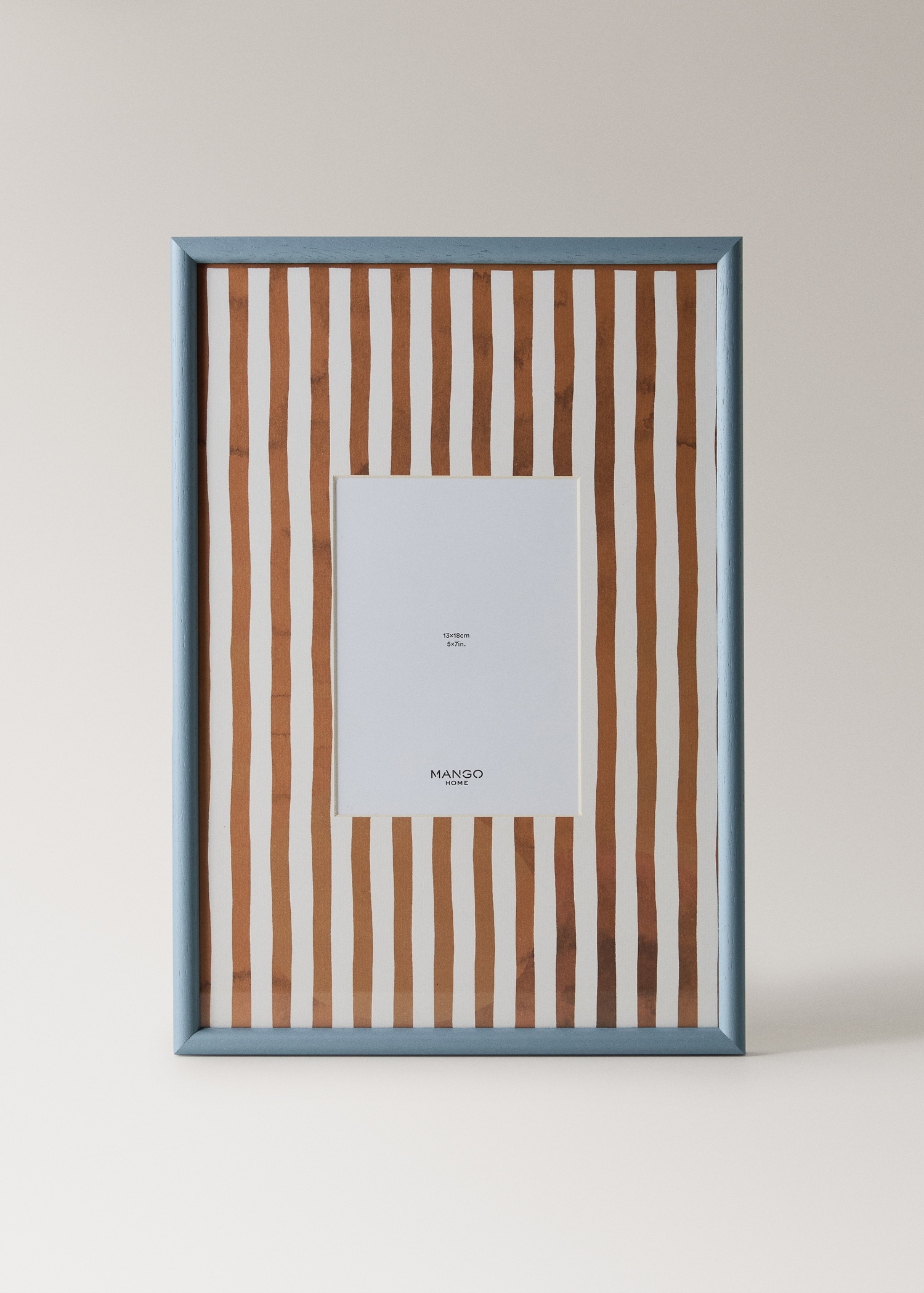 For 13×18 cm photos. Frame size: 31×44 cm. Two-tone striped background detail. Wooden material. Add a colorful and original touch to any space. Archive your photos and memories. Available in various colors