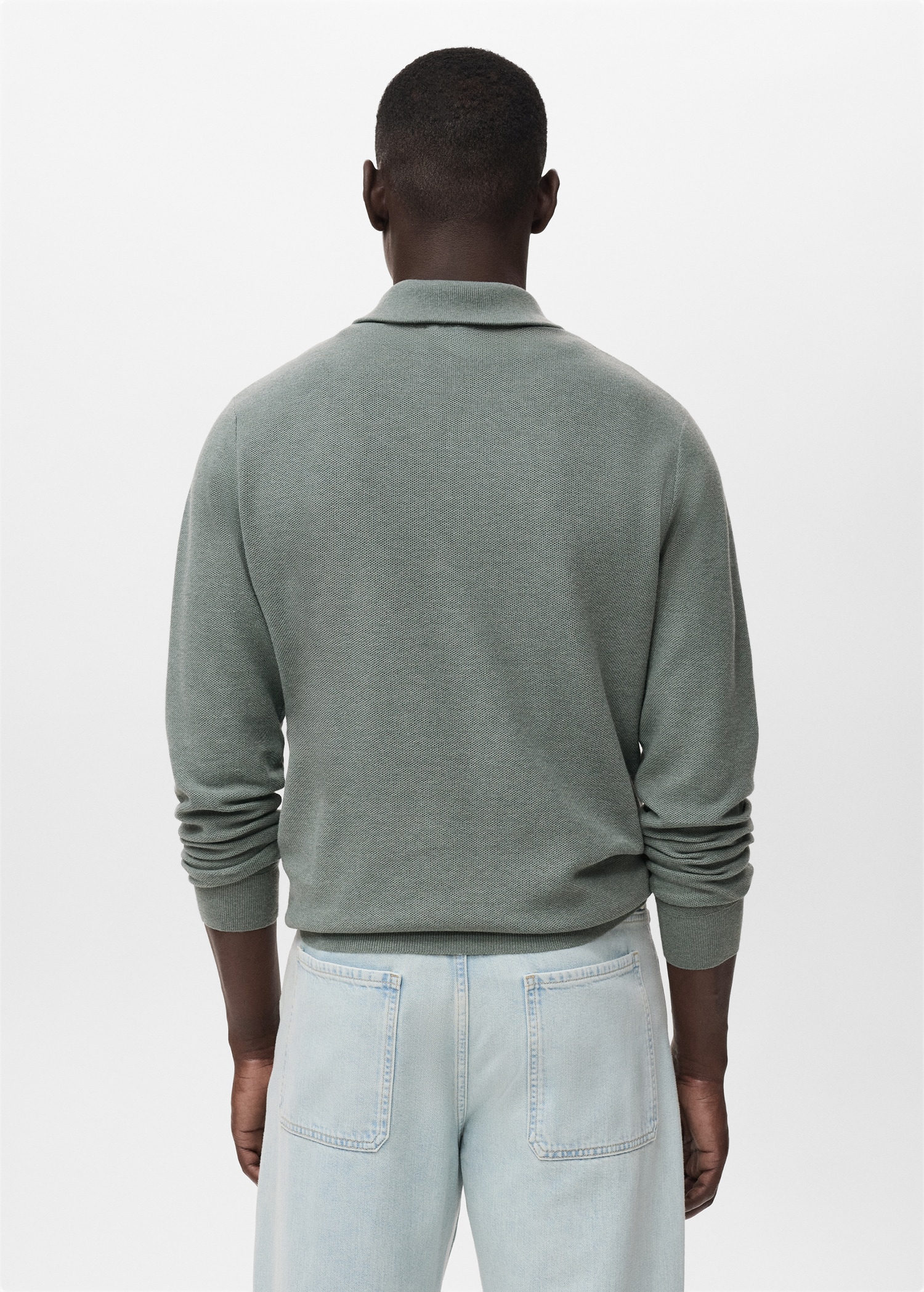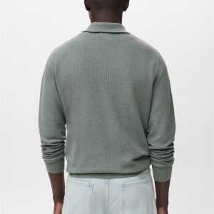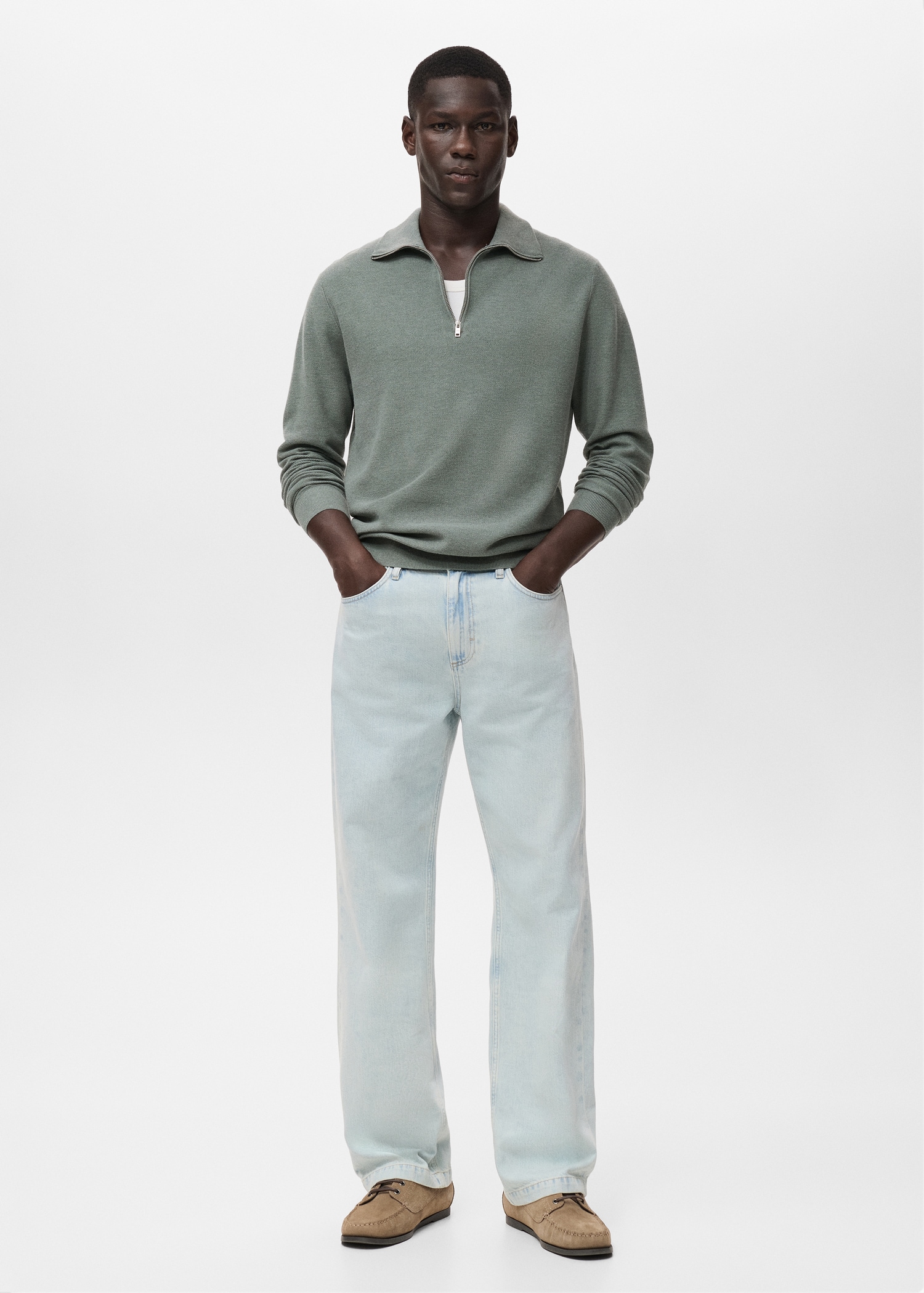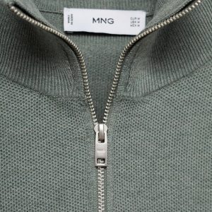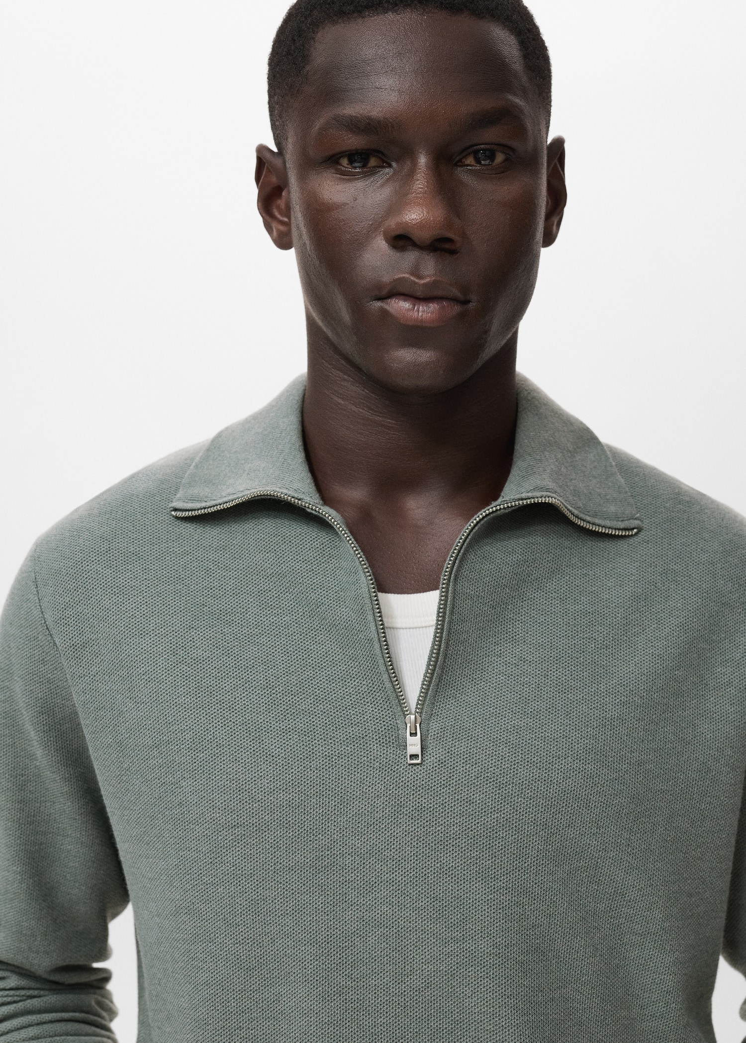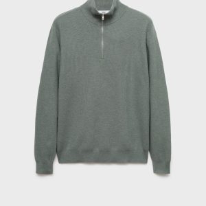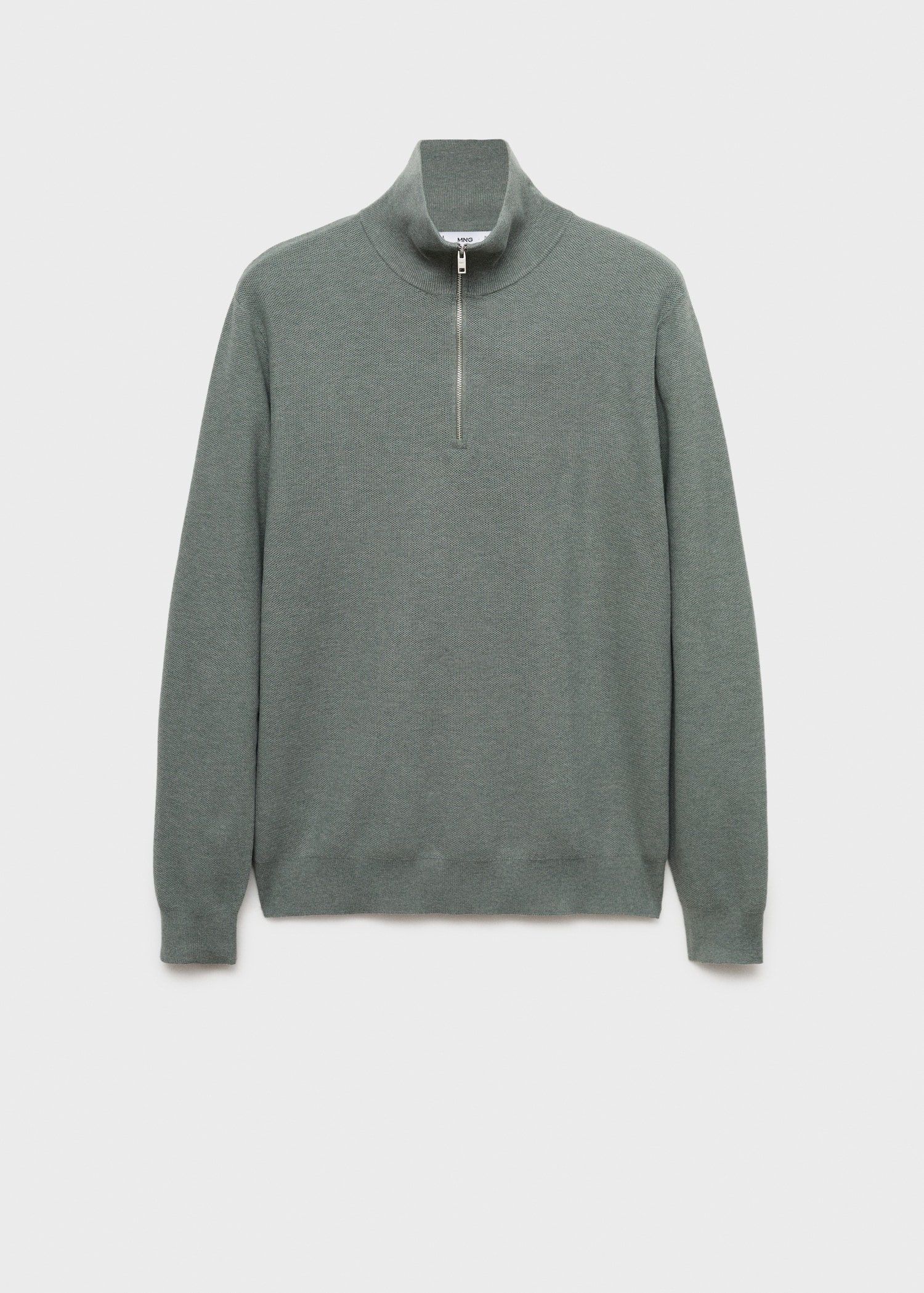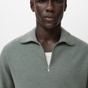 Straight silhouette. Cotton blend fabric. Fine-knit fabric with micro-structure. Funnel neck with zip fastening. Ribbed neck, cuffs and hem. Straight hem