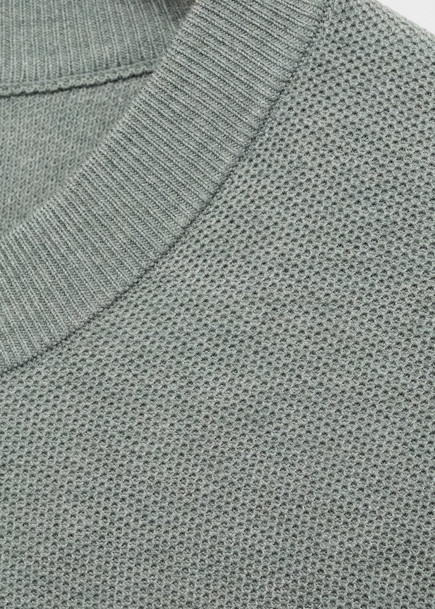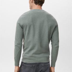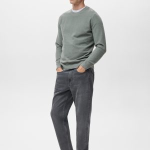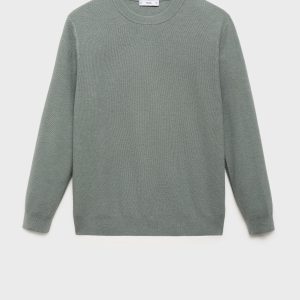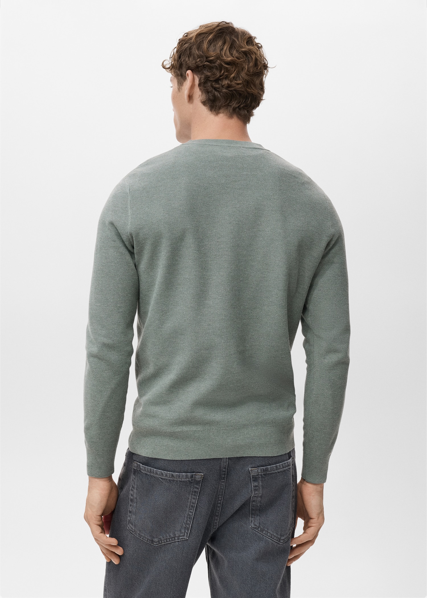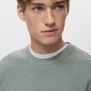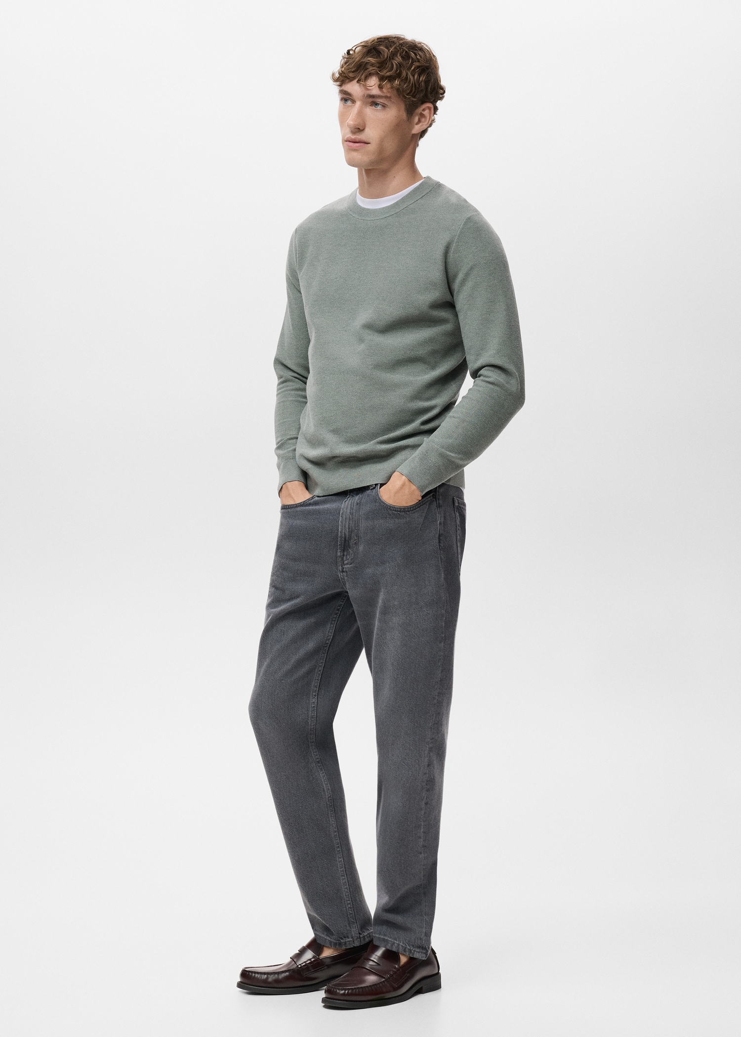 Cotton blend fabric. Straight silhouette. Fine-knit fabric with micro-structure. Crew neck. Ribbed collar, sleeves and hem. Straight hem