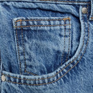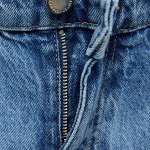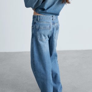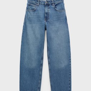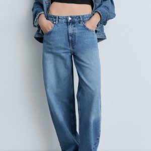 Cotton denim fabric. Slouchy fit. Long design. Balloon design. Mid-rise. Belt loops. Five pockets. Front zipper and button closure