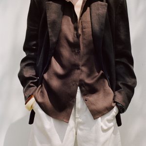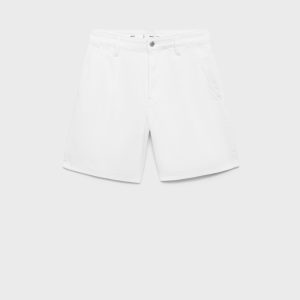Mid-rise denim bermuda shorts with pleats