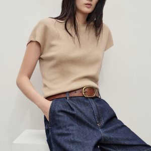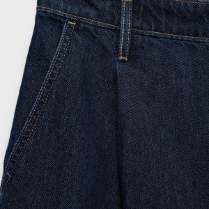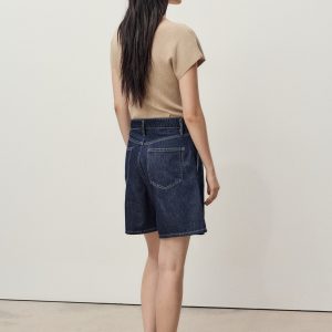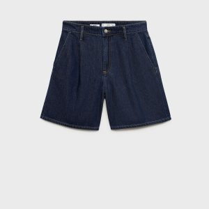Mid-rise denim bermuda shorts with pleats
