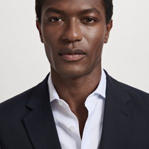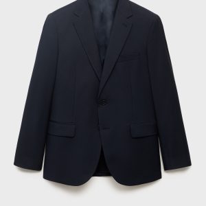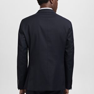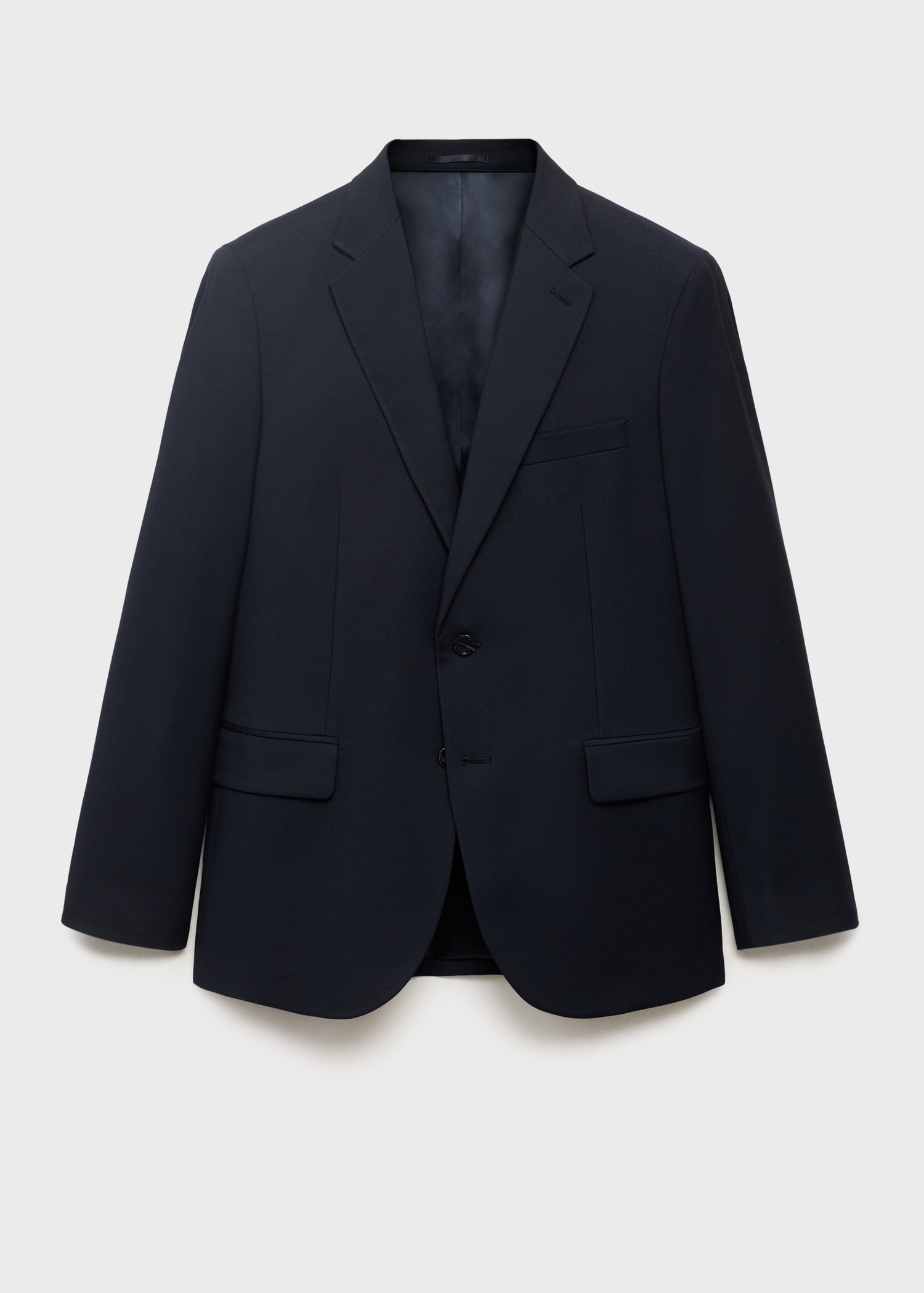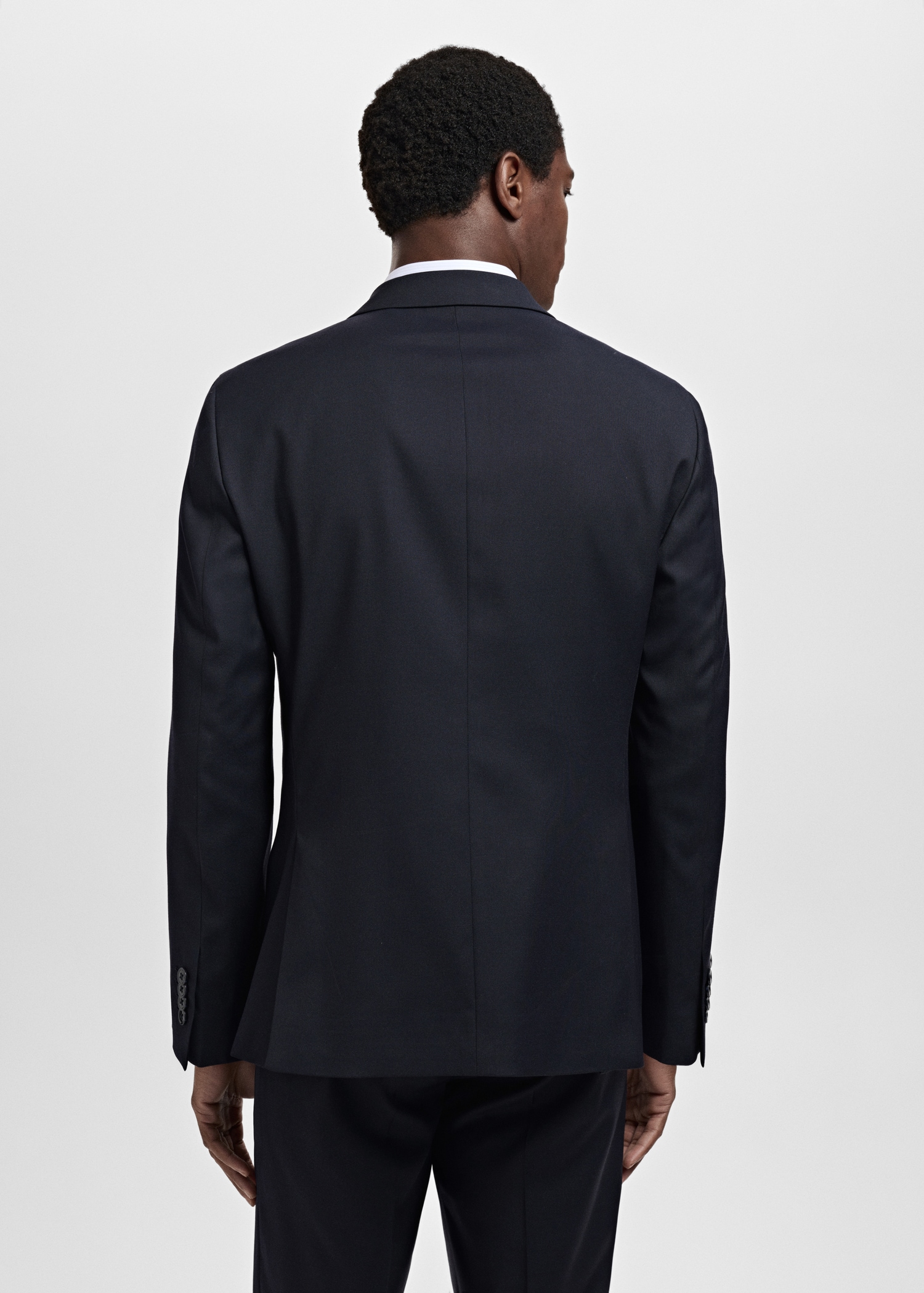 Super slim fit. Tailoring collection. Notch lapels and buttonhole. Pocket with flap on the back section. Front button closure. Buttoned cuff straps. Double back slit. Interior pocket. Inner lining