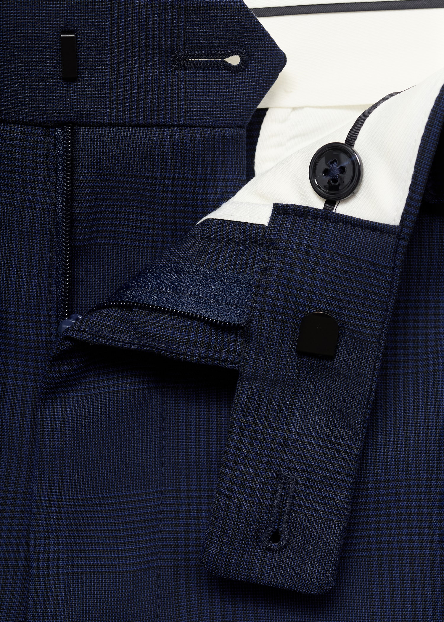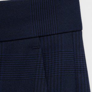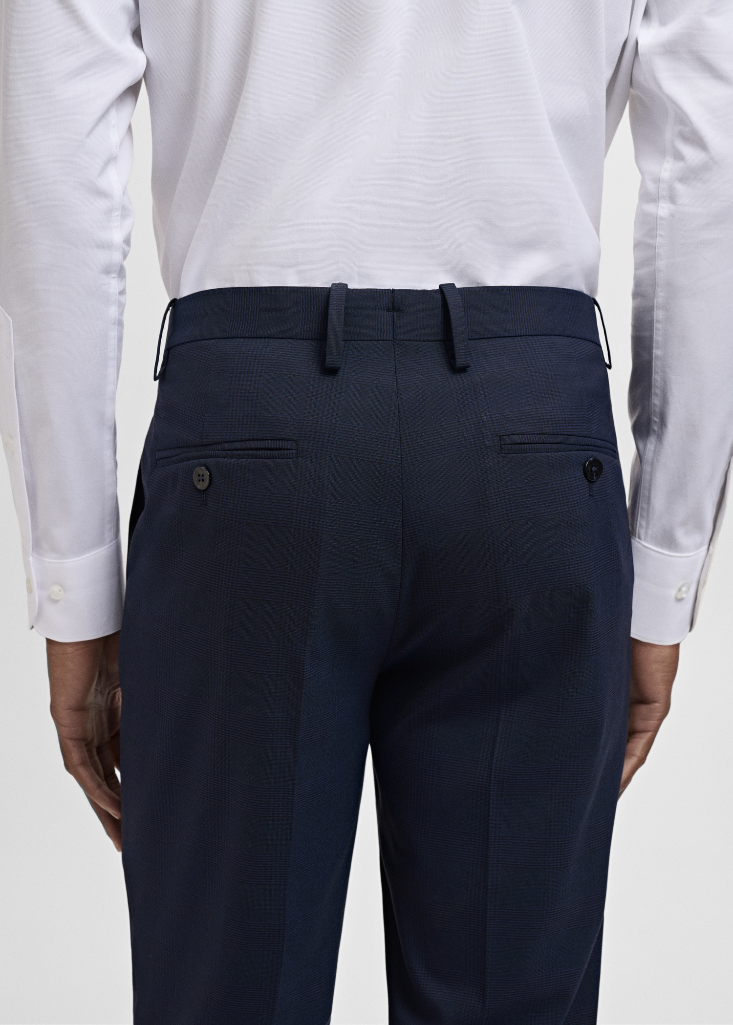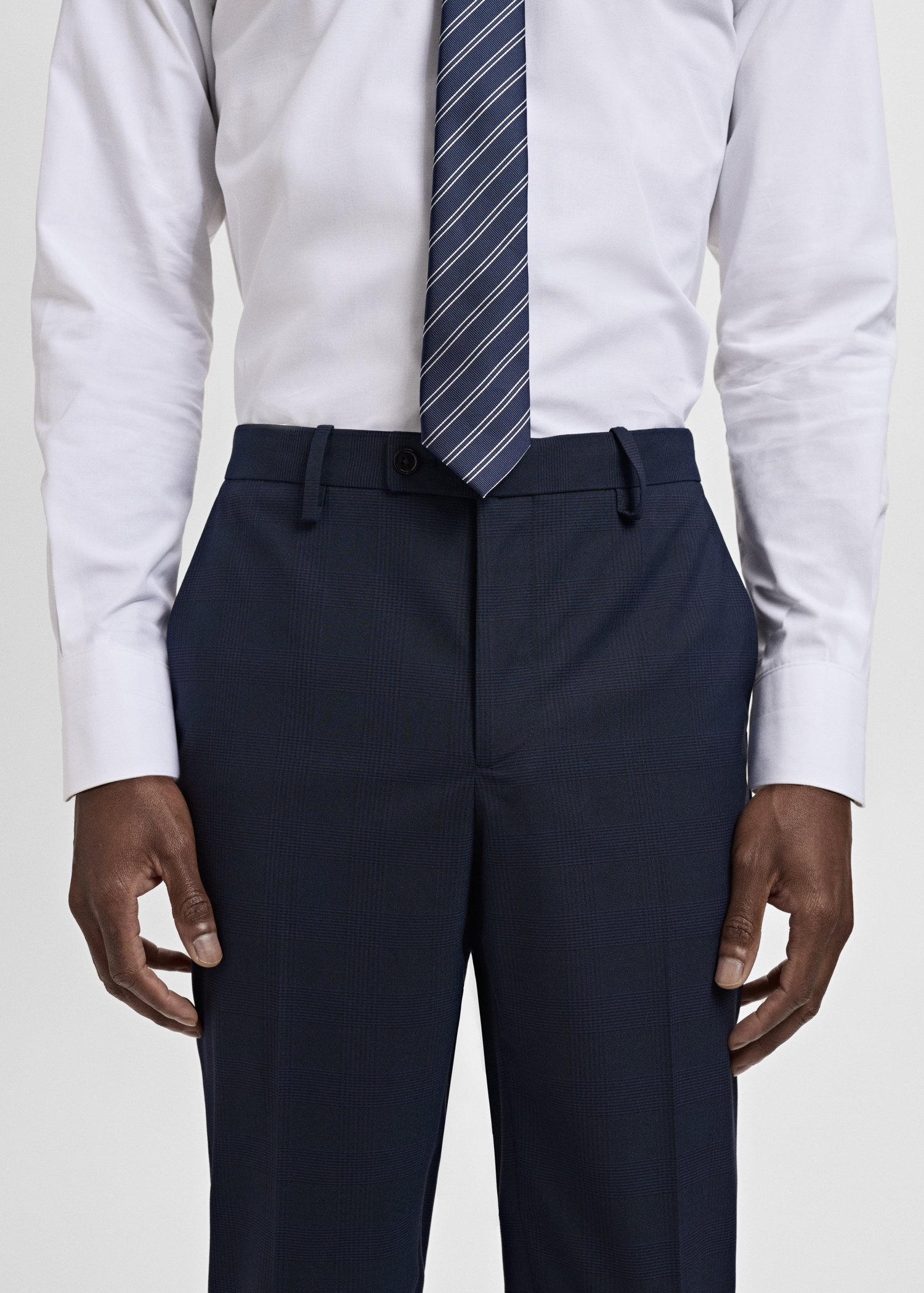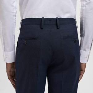 Slim fit. Ironed stripe detail at front and back. Belt loops. Two side pockets. Two pockets on the back