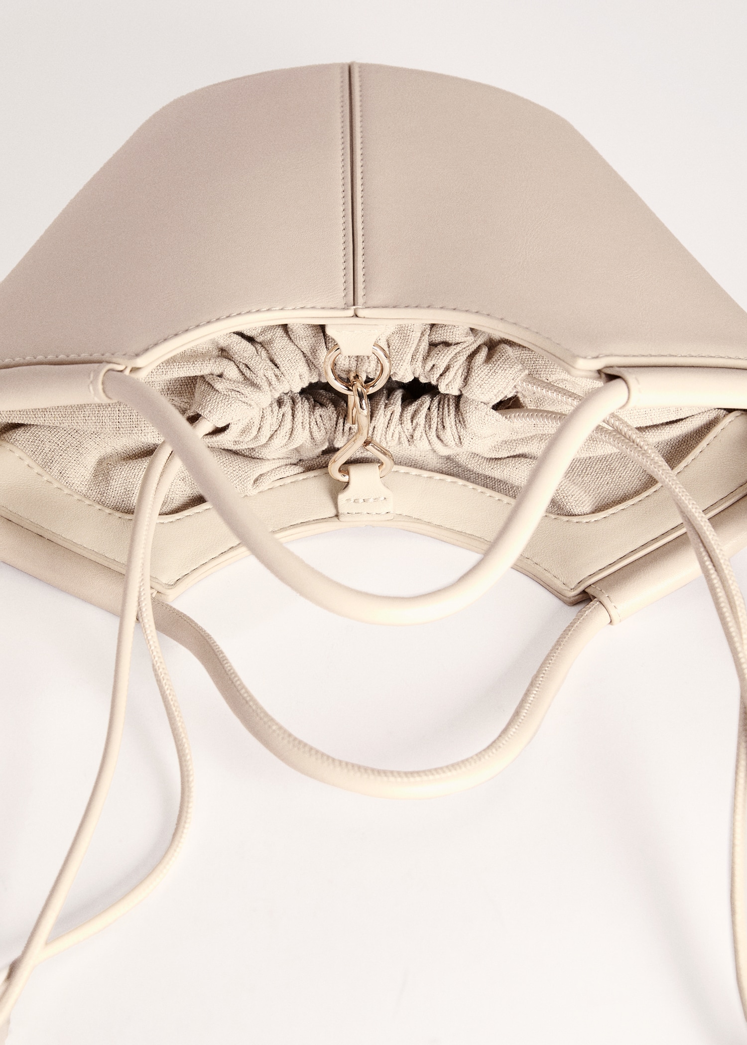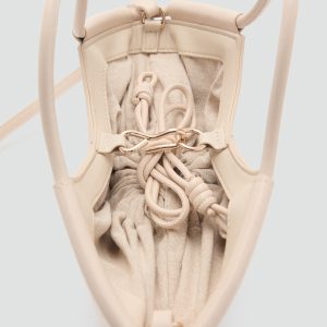 Small size. Shopper style. Backstitched detail. Shoulder strap. Two short hand grips. Hook closure. Adjustable closure. 11.42×7.48×3.15 in (Length x Height x Width)