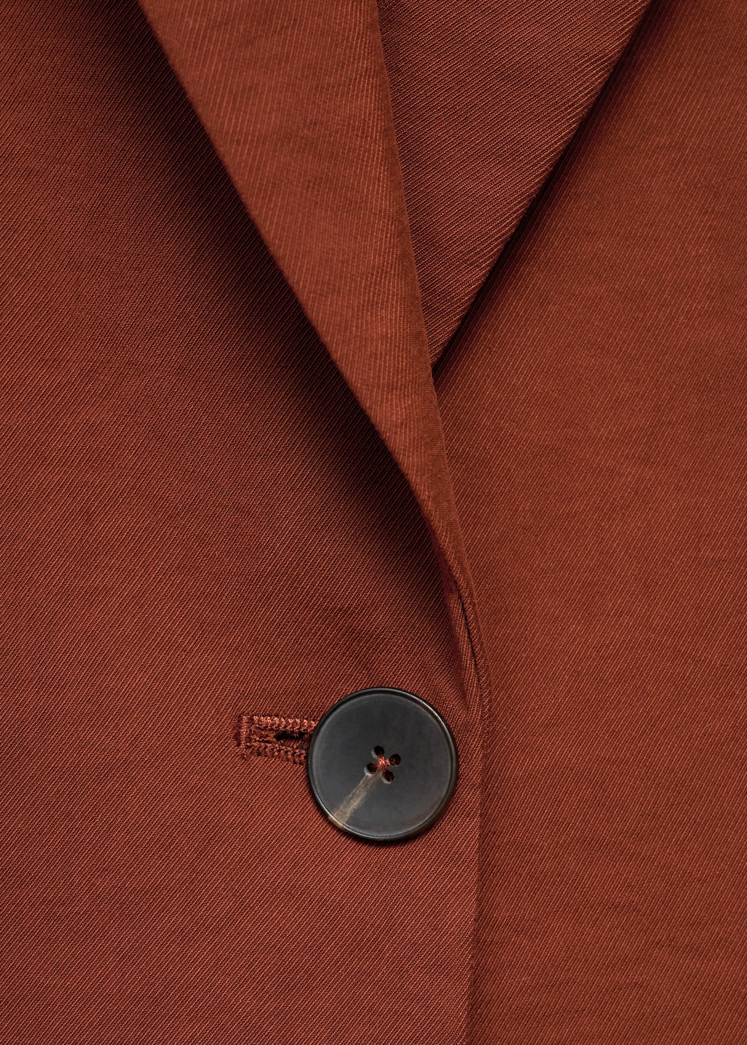 Modal fabric. Straight Design. Lapel-collar V-neck collar. Notch lapels. Long sleeves with buttoned cuffs. Chest welt pocket. Two pockets with flaps on the front. Front button closure. Inner lining. Total look. Available Plus