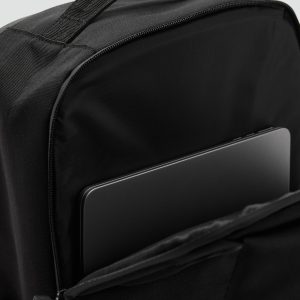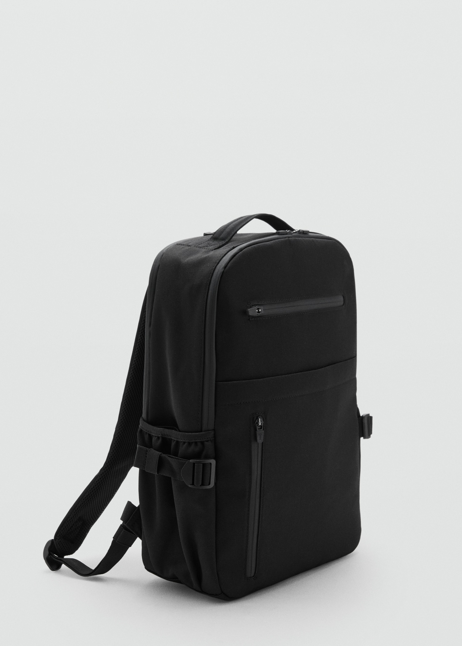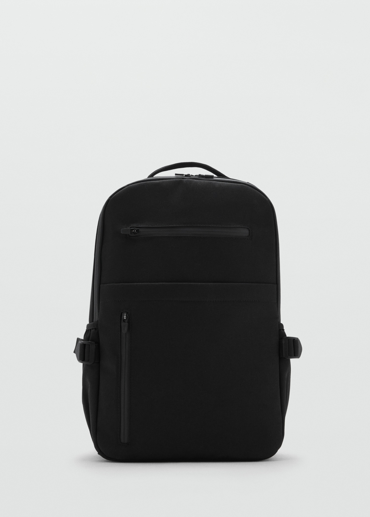 Zipped main compartment. Compartment for electronic devices. Pocket on the front. Multiple pockets. Top strap. Two adjustable handles. 11.42×16.93×5.51 in (Length x Height x Width)