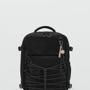 Polyester fabric. Rectangular design. Decorative rope detail. Two front pockets. Zipper closure. Two adjustable handles. 17.72×11.81×7.09 in (Length x Height x Width)