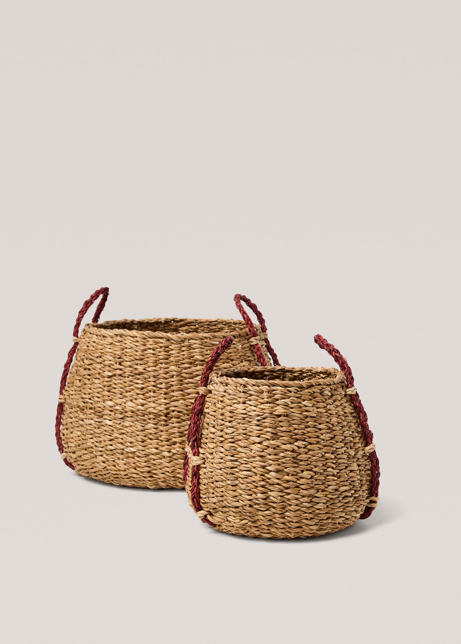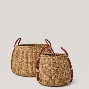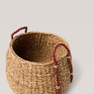 This model of basket is available in 2 sizes (M,L). Size: 17.72×13.39×11.81in. Natural fibers. 100% cattail. Two handles. Burgundy handles. To save and organize books, clothes, toys and other household items and keep your home tidy in an elegant and rustic way, and complement your home décor. 9.45×9.84×12.2 in (Length x Height x Width)