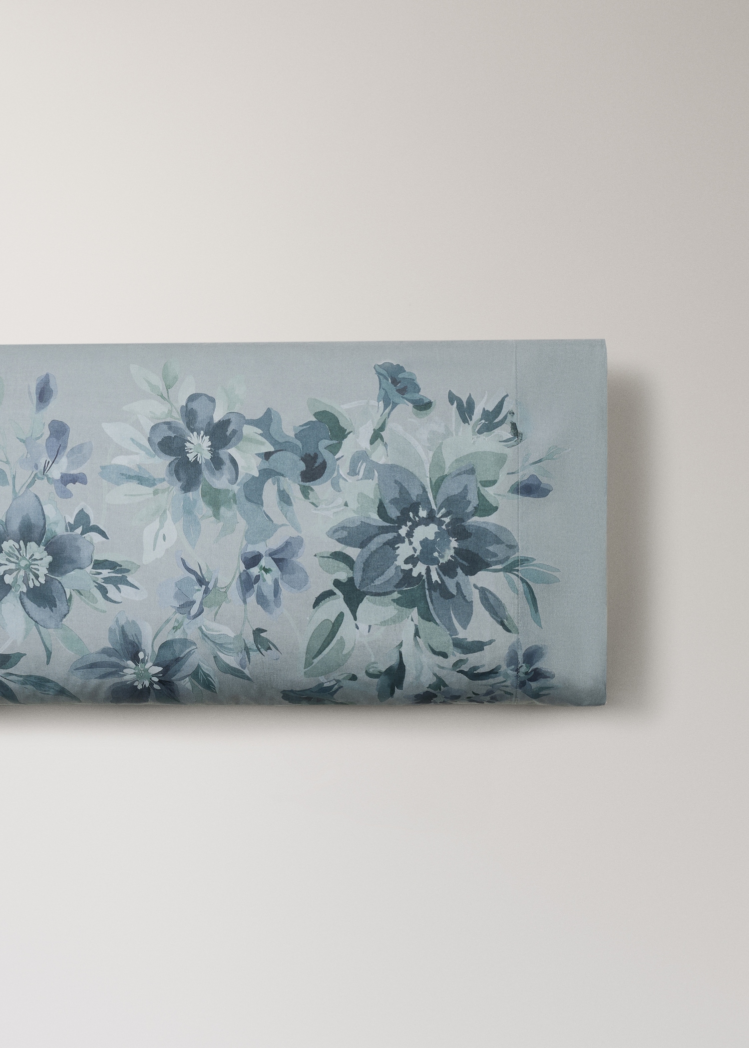 100% Cotton. 200 cotton threads offering maximum softness, durability, and breathability, providing a sensation of lightness and smoothness to the touch. Floral print. Watercolor effect print. Available in various colors. Coordinates with more products from the collection