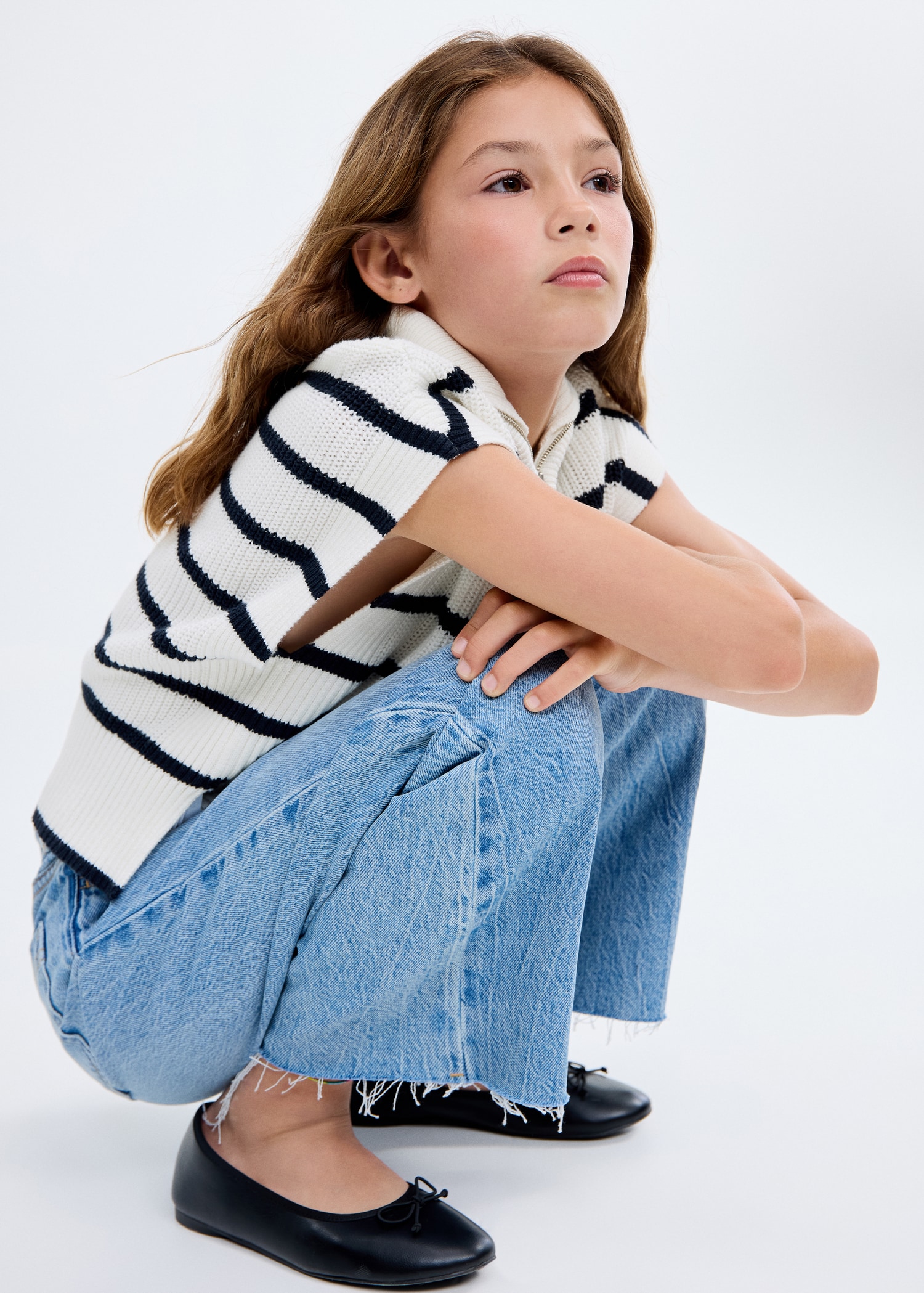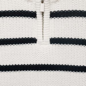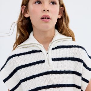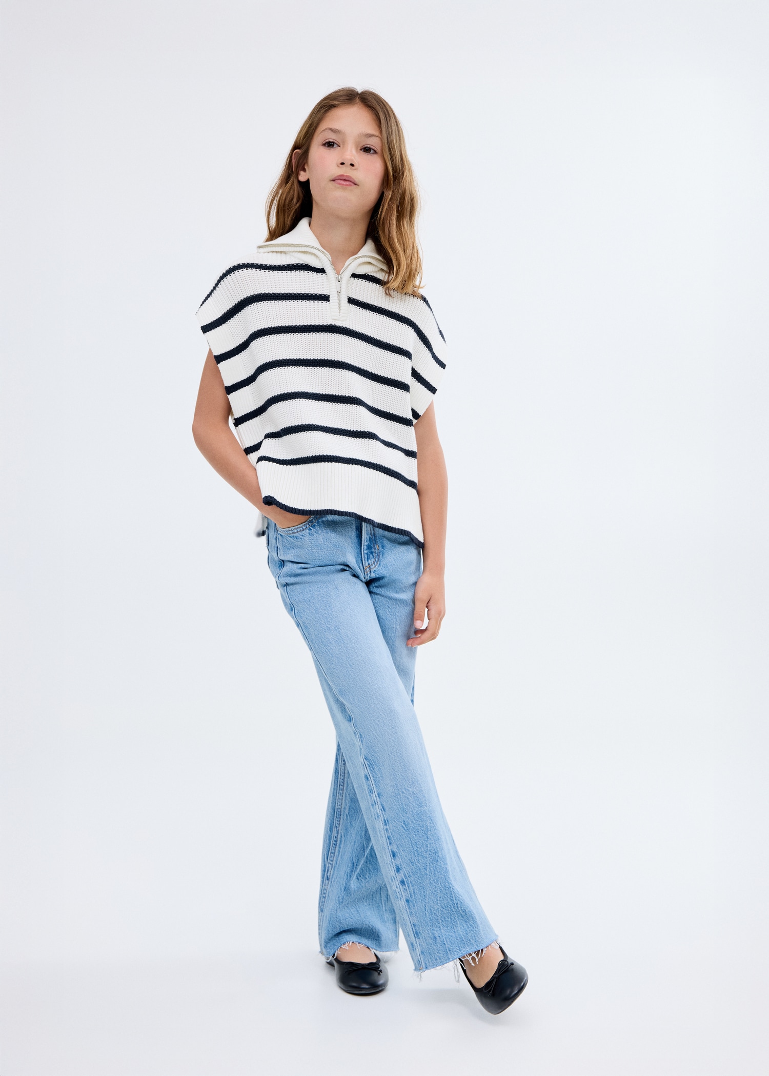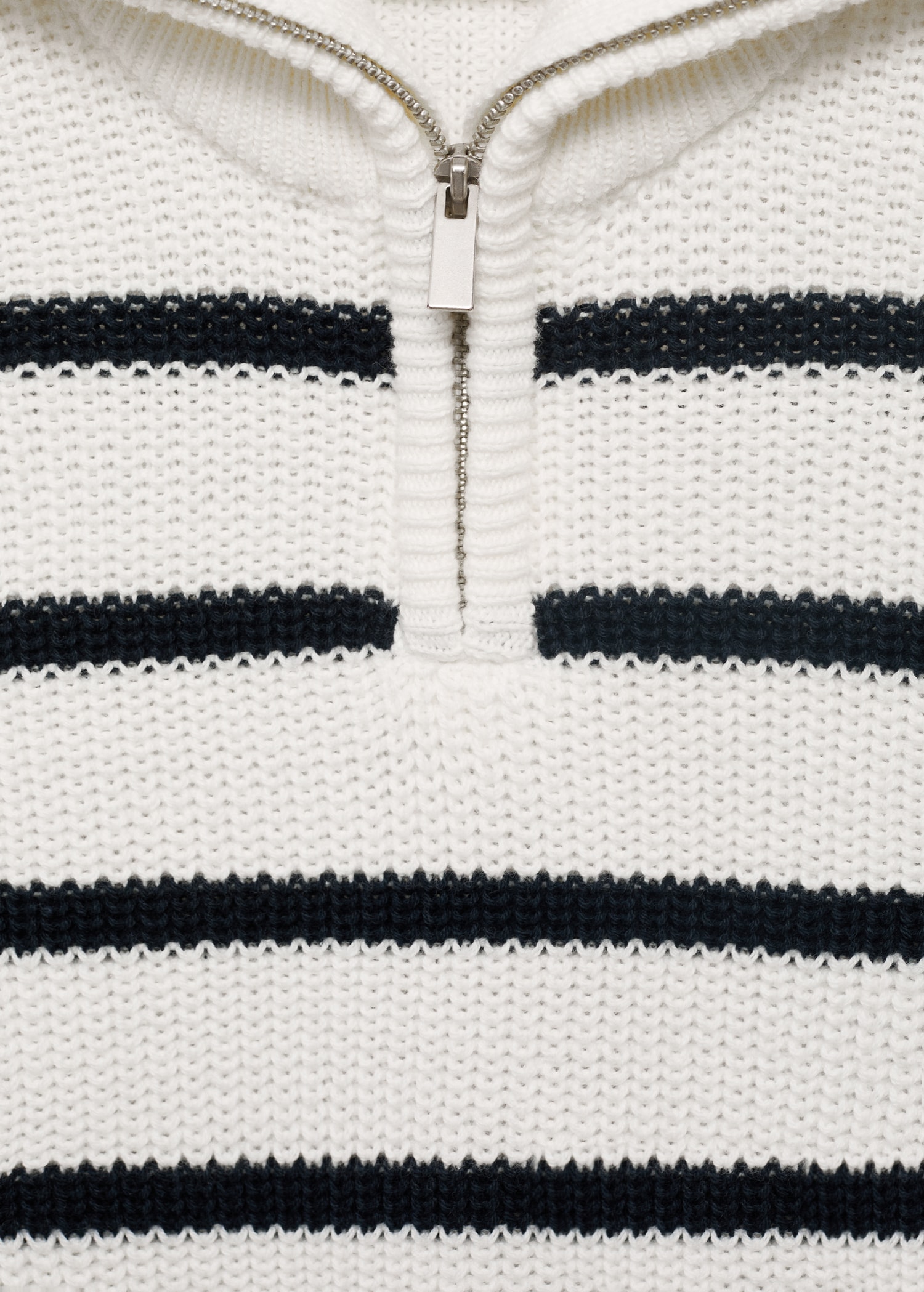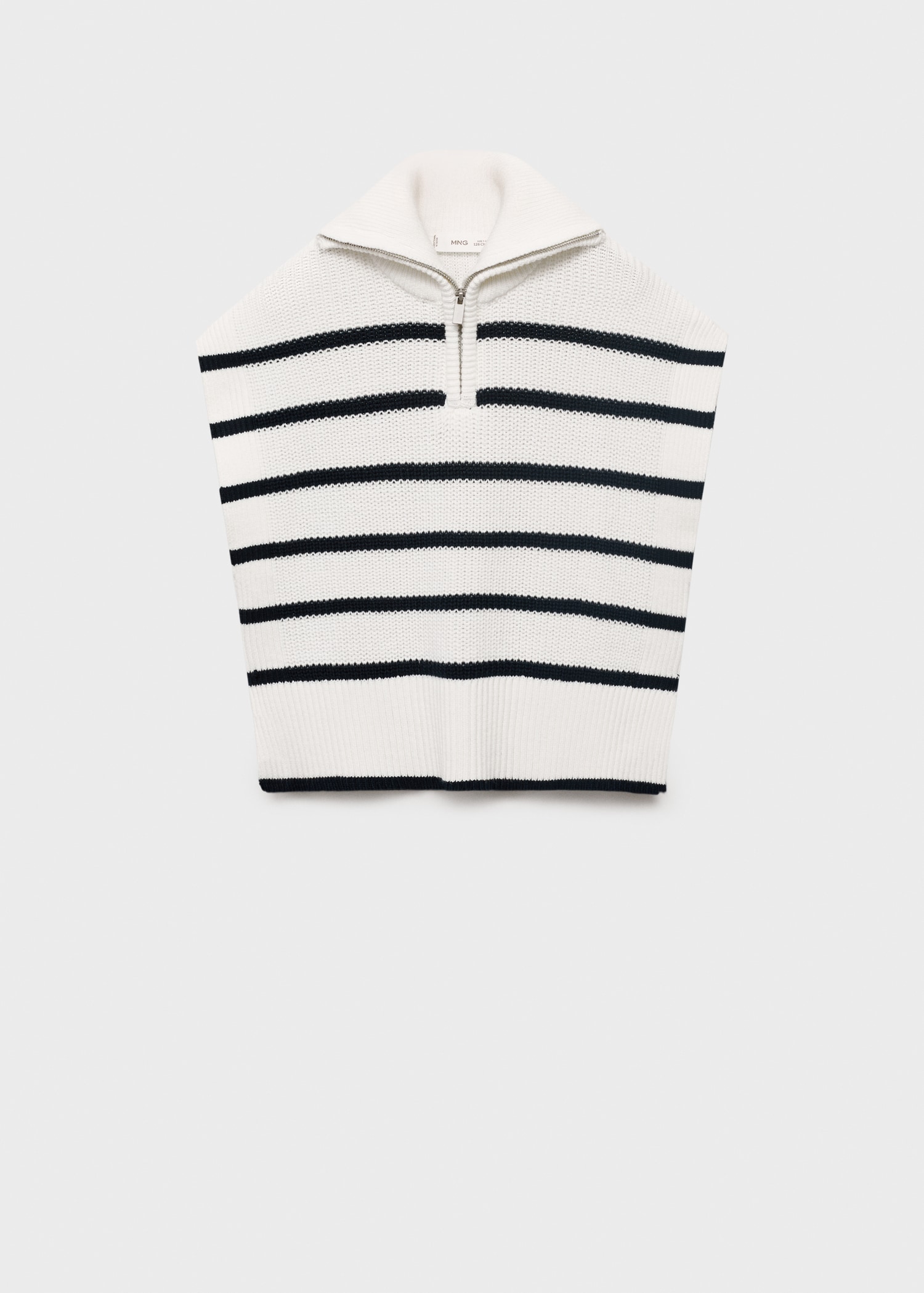100% cotton fabric. Knitted fabric. Straight Design. Striped design. Perkins neck with zipper. Sleeveless