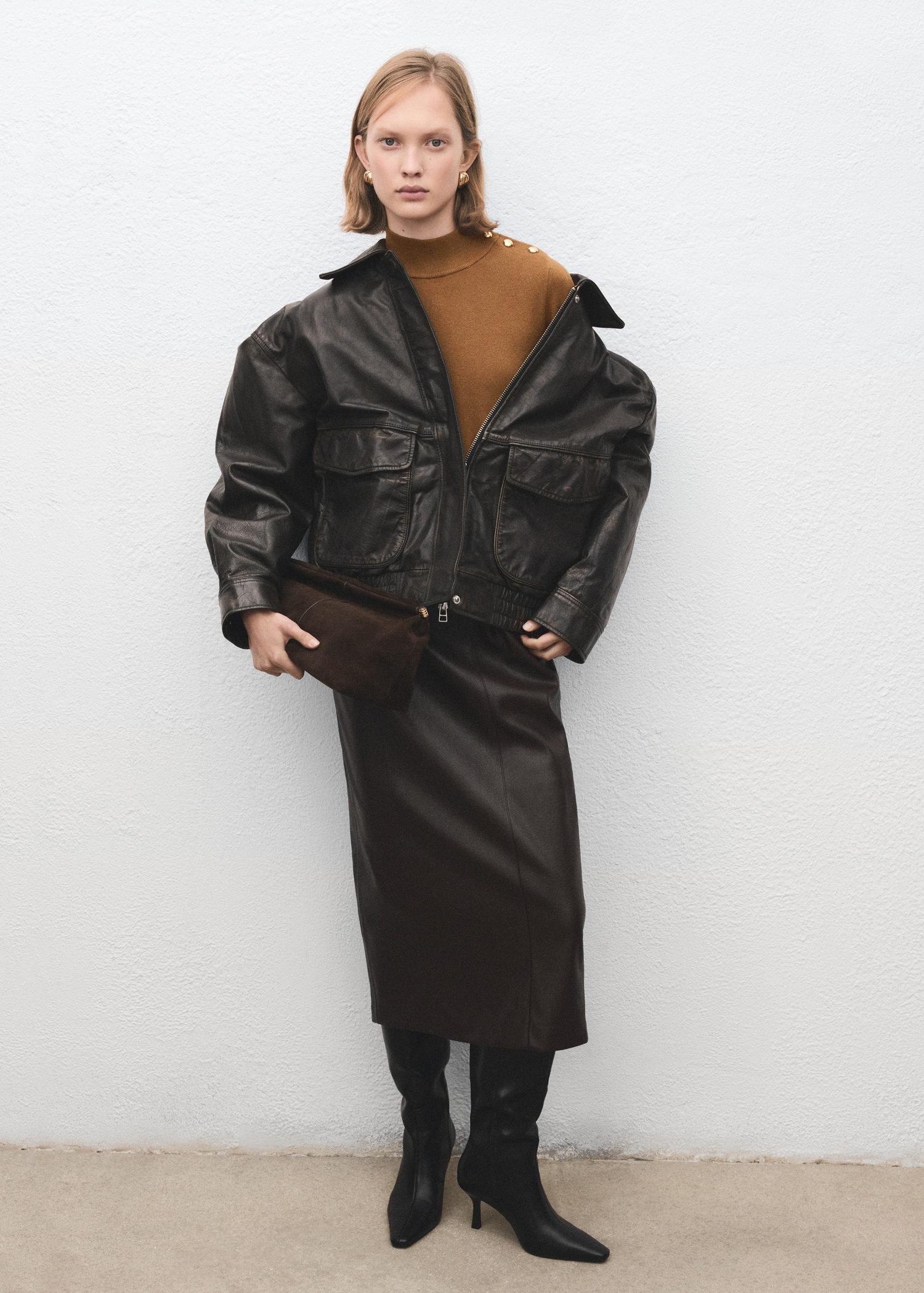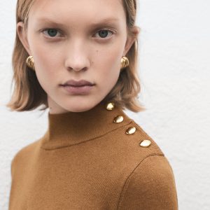 Perkins-neck sweater with button