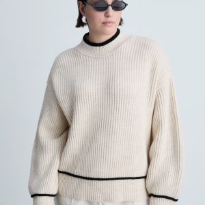 Perkins-neck sweater with contrasting details