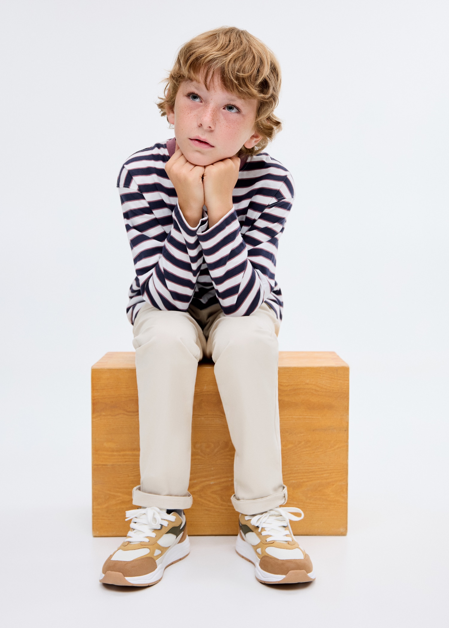 Cotton fabric. Stretch fabric. Long design. Straight Design. Plain design. Belt loops. Zip and button closure. Waist with adjustable inner drawstring. Back pockets. Turned-up hem. Halloween Collection