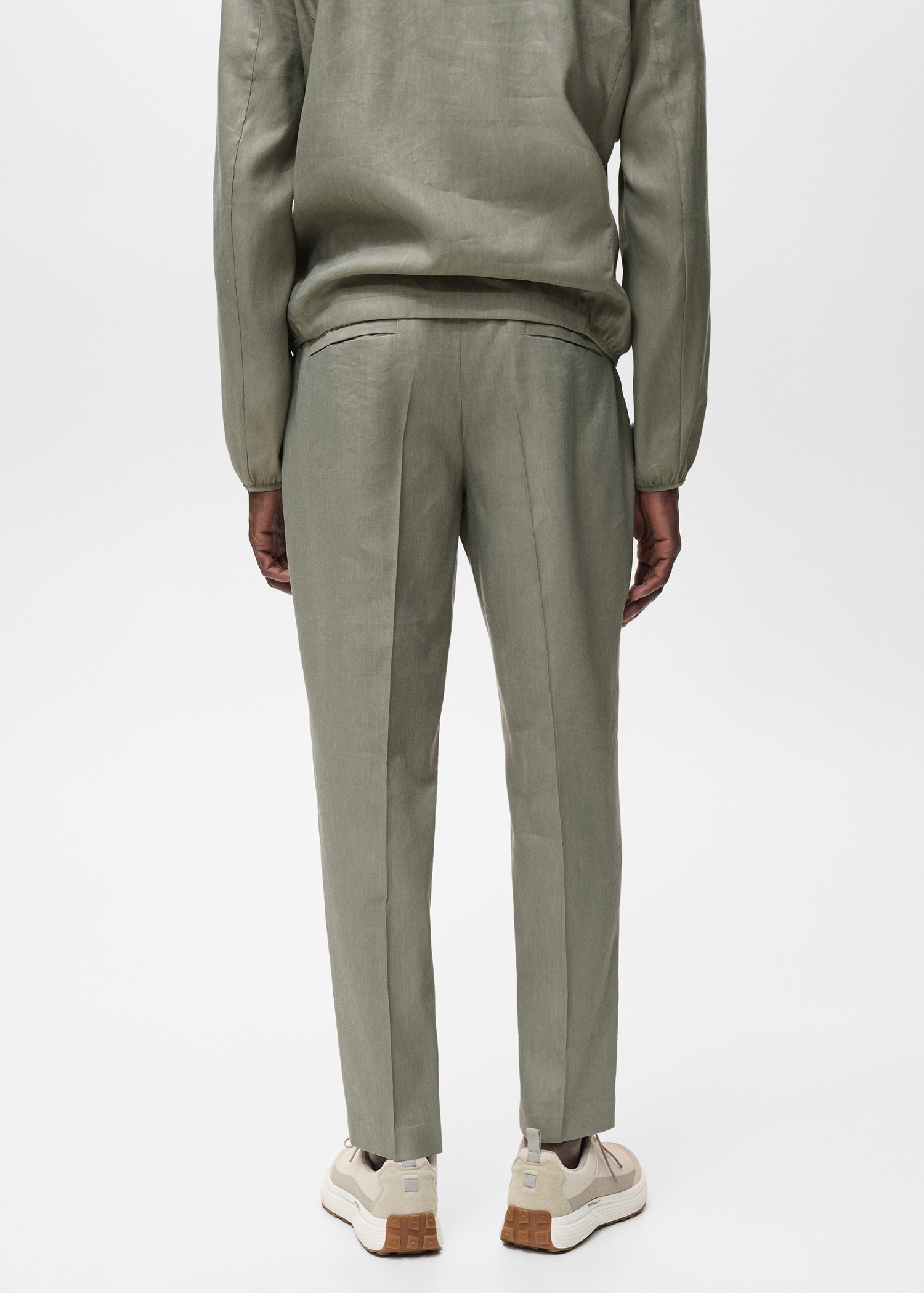 Performance Collection. Perfect for those seeking a functional and comfortable garment. Thermoregulator: This fabric offers optimal breathability to keep you at a stable temperature. Straight fit. Belt loops. Adjustable elastic waist. Front closure with double-breasted buttons and zipper. Two side pockets. Two rear welt pockets with snap button closures. Front pleat detail. Ironed stripe detail at front and back. Set available as total look. PERFORMANCE: A collection of garments crafted from technical fibers. This selection offers a wide range of advanced features such as bi-stretch fabrics, and quick-drying, easy-iron, thermoregulating, breathable or water-repellent properties, organised into three general categories: Thermoregulating, Functional and Comfort