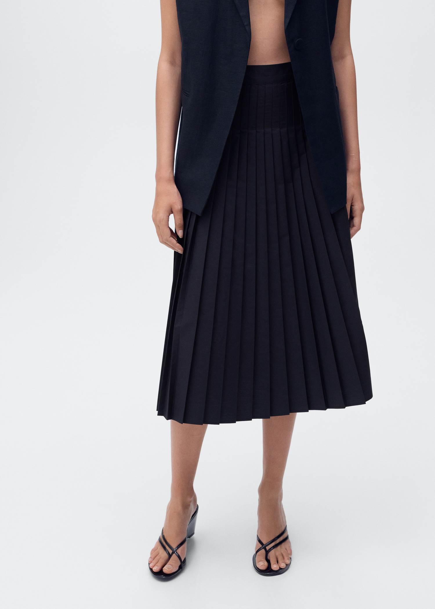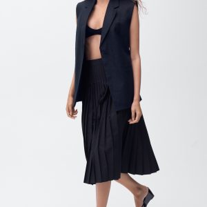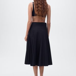 With a midi and flared design, this garment features elegant pleats that add movement.