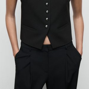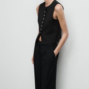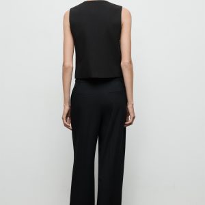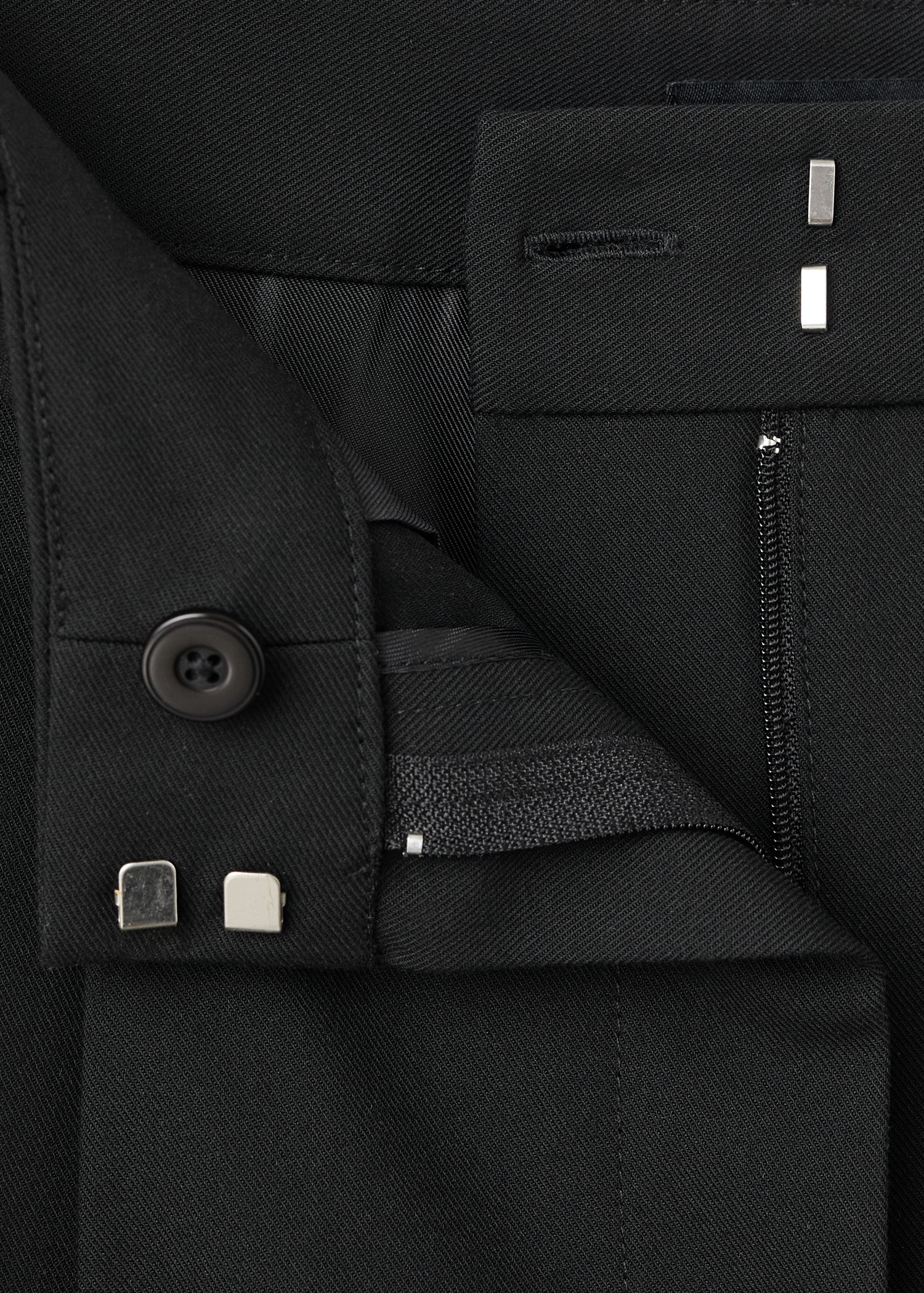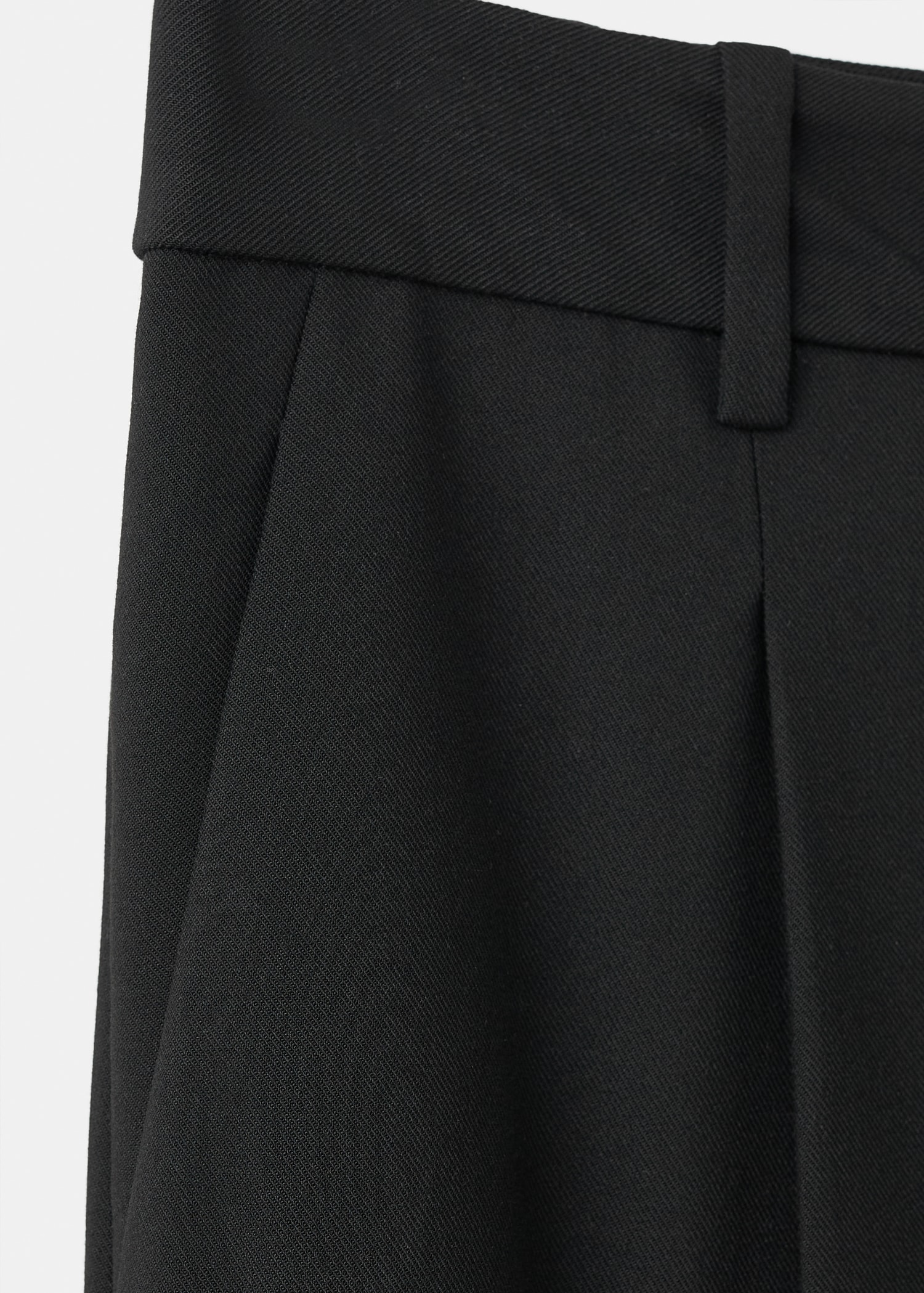 Long design. Wide leg design. Mid-rise. Belt loops. Dart detail. Button, hook and zipper front closure. Total look