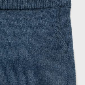 Knitted fabric. Cotton fabric. Long design. Comfy-fit. Elastic waist. Two side pockets. Decorative button