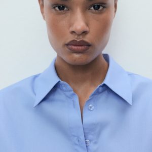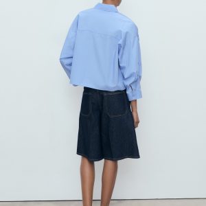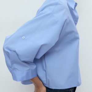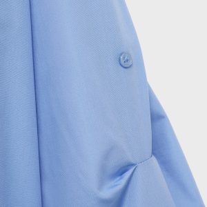 Crafted from a cotton-blend fabric, this garment features an oversized design with a shirt collar and long sleeves. It has a patch pocket and a front button closure