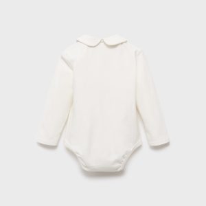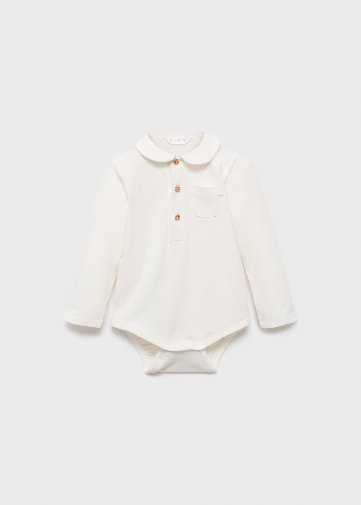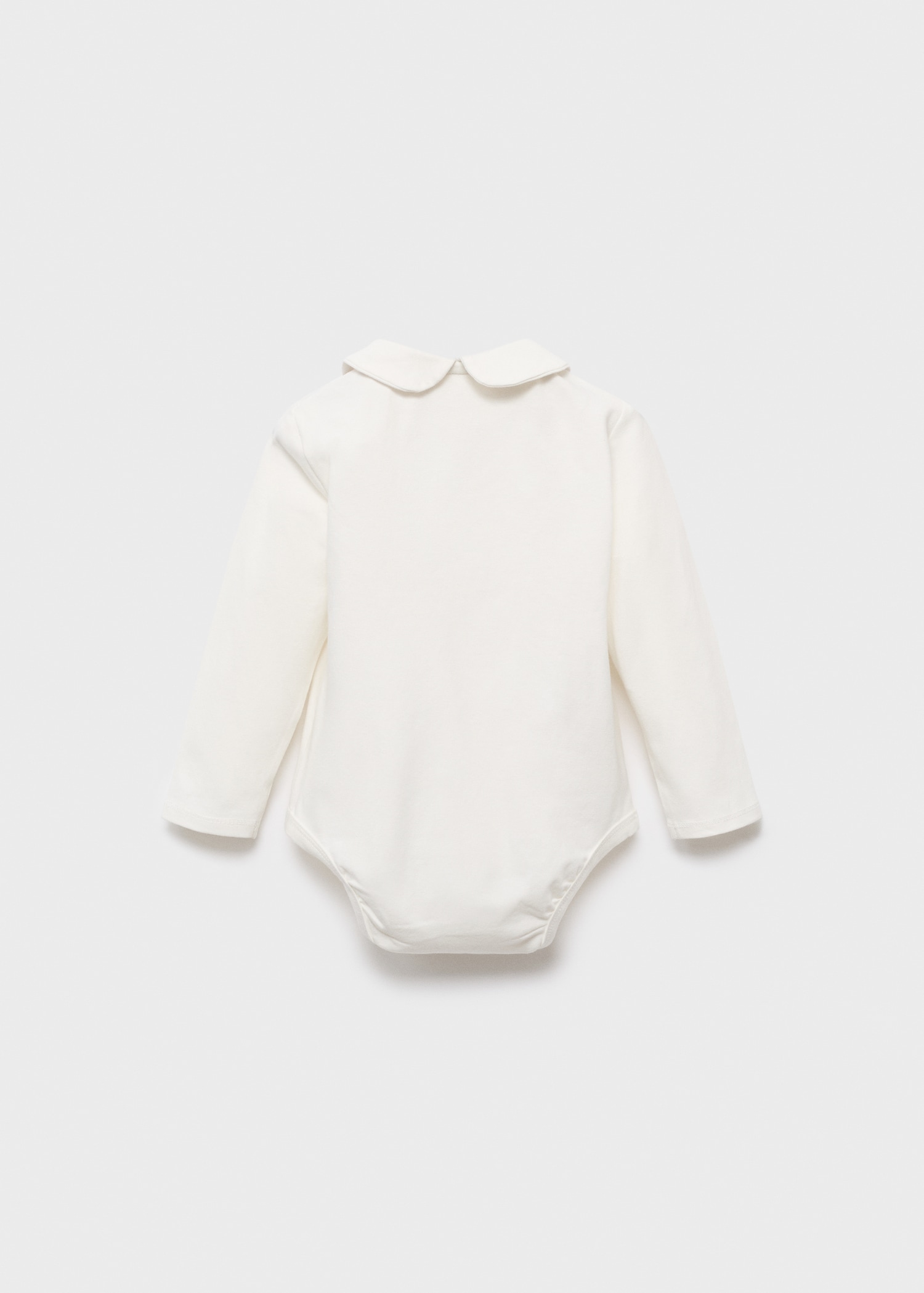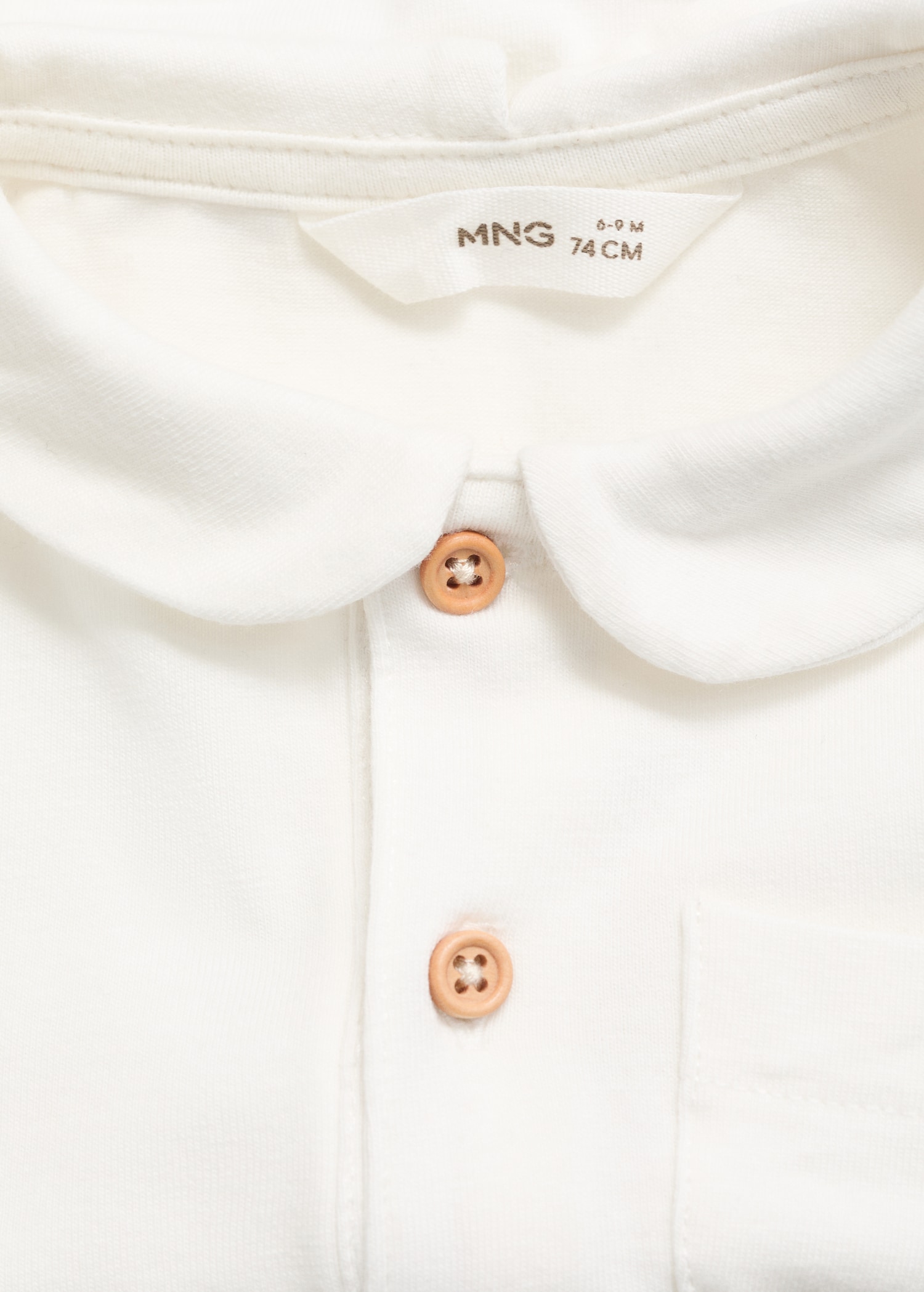 Cotton fabric. Stretch fabric. Straight Design. Babydoll collar. Front button closure. Long Sleeve. Bottom opening with button closure