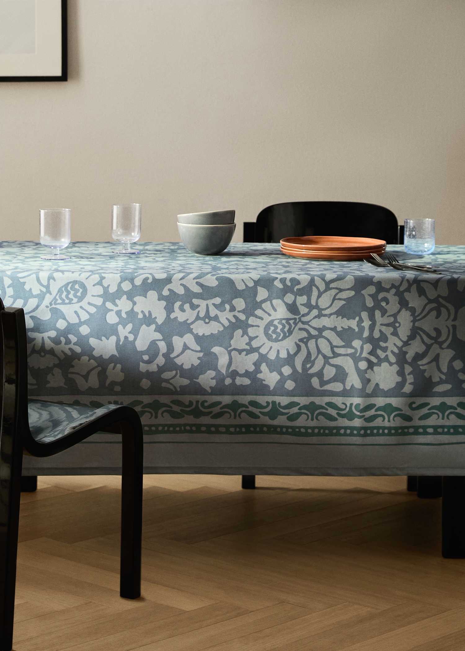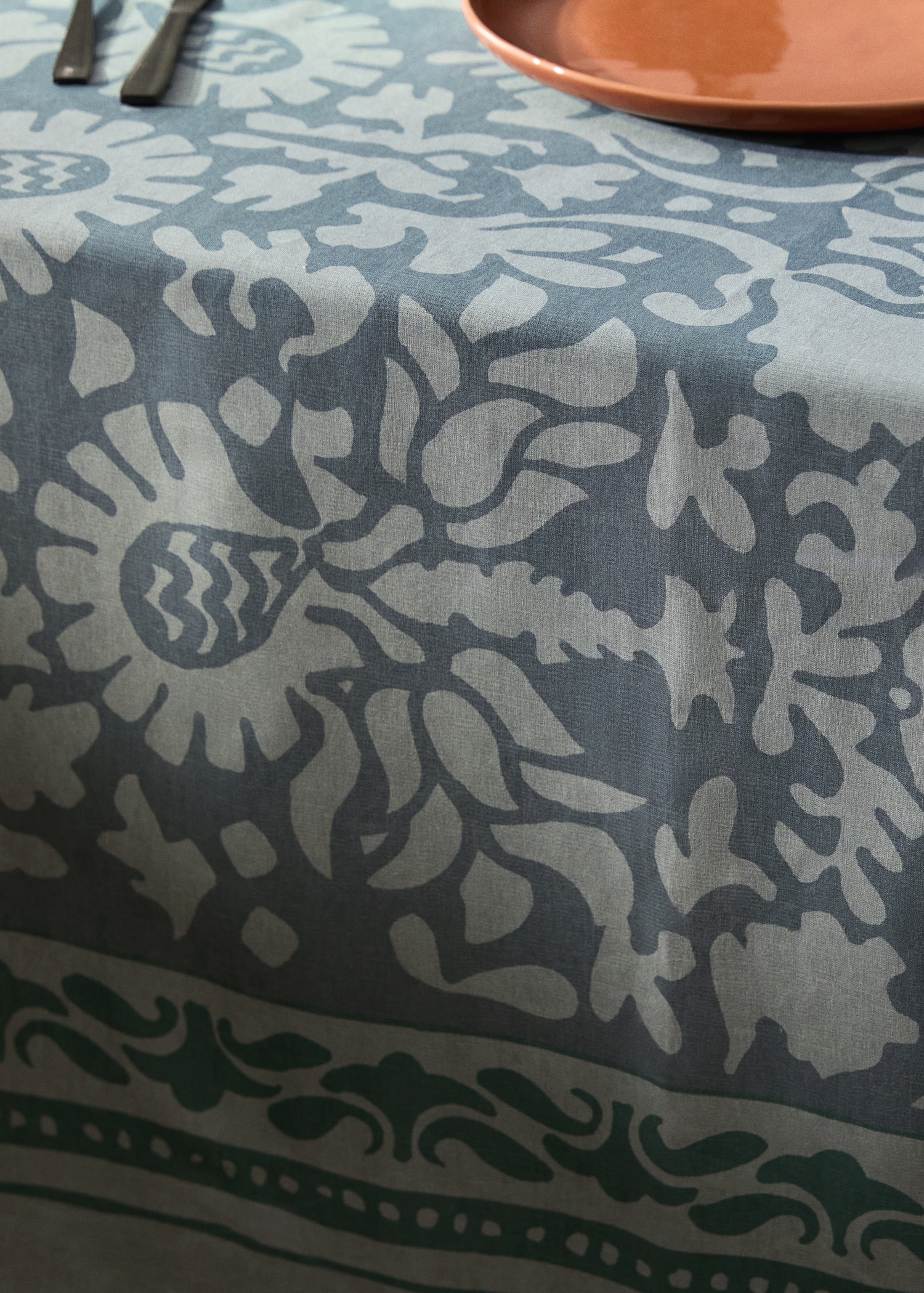 Size: 150×350 cm. Canvas fabric. 100% Cotton. Made in Spain. Serves 8 to 10 guests. Floral print. Available in various colors