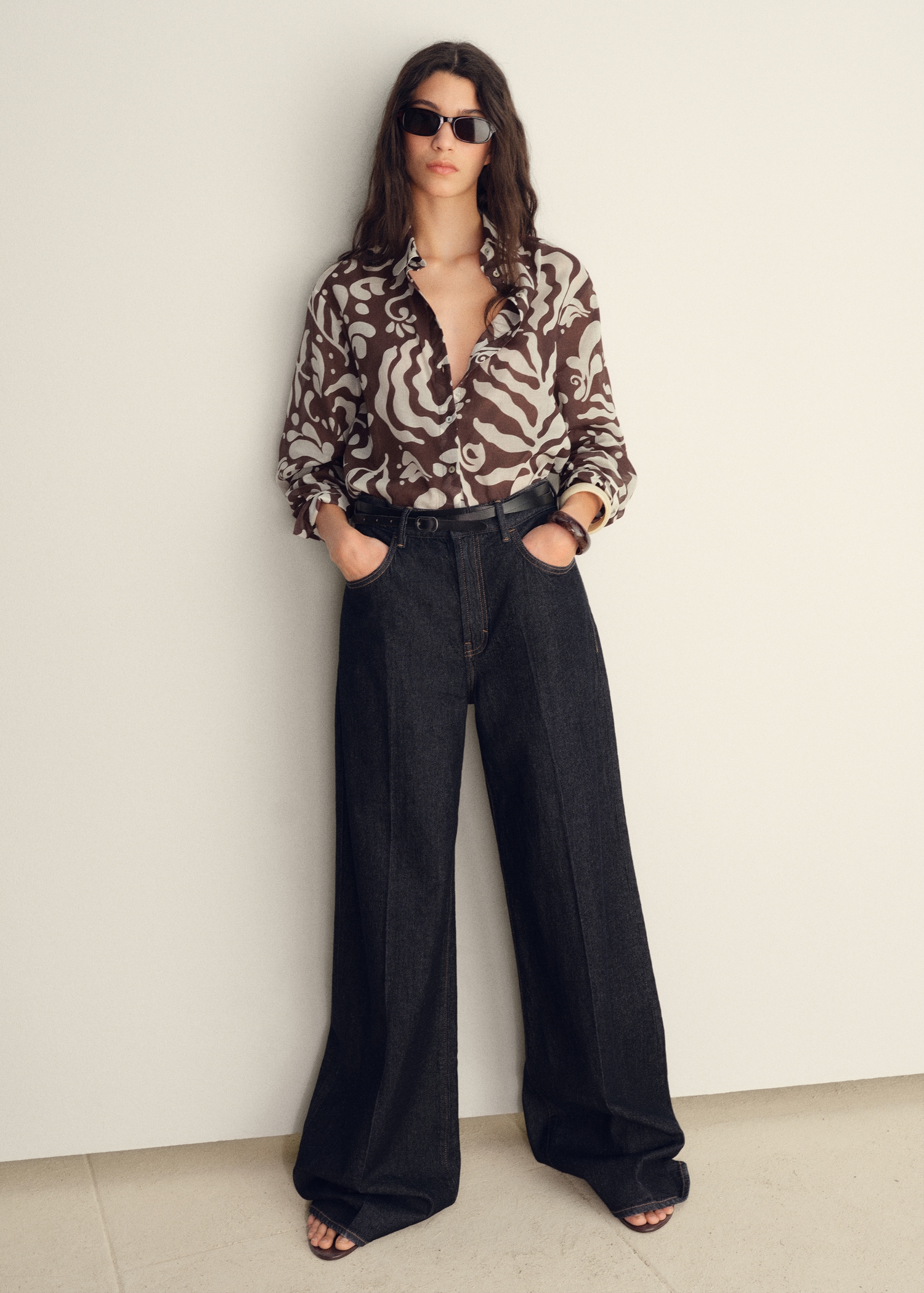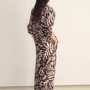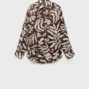 100% cotton fabric. Straight Design. Standard design. Paisley print. Abstract leaf print. Shirt collar. Long sleeves with buttoned cuffs. Front button closure. Total look. Available Plus