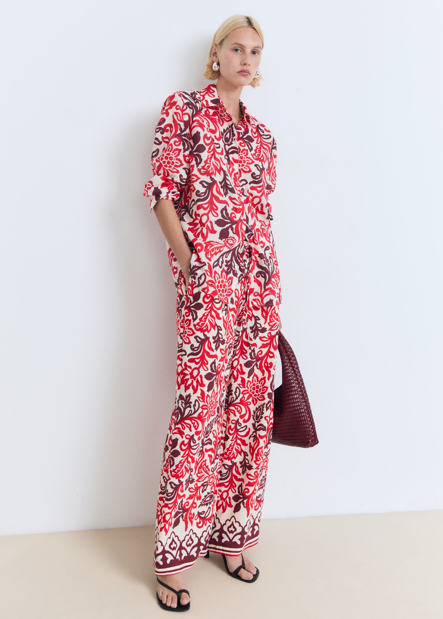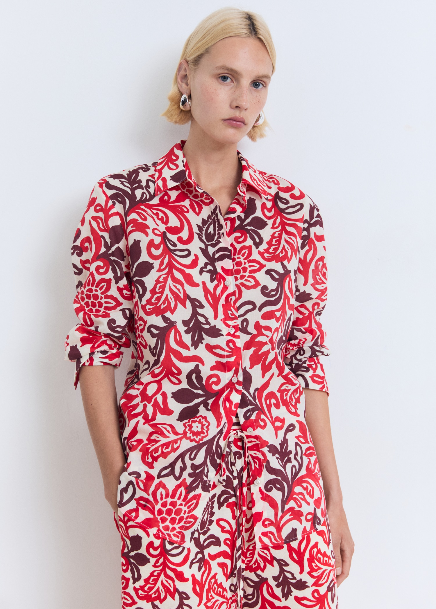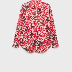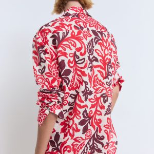 100% cotton fabric. Straight Design. Floral print. Shirt collar. Long Sleeve. Front button closure. Total look