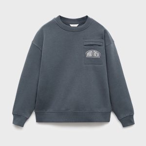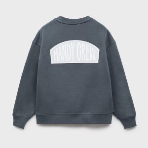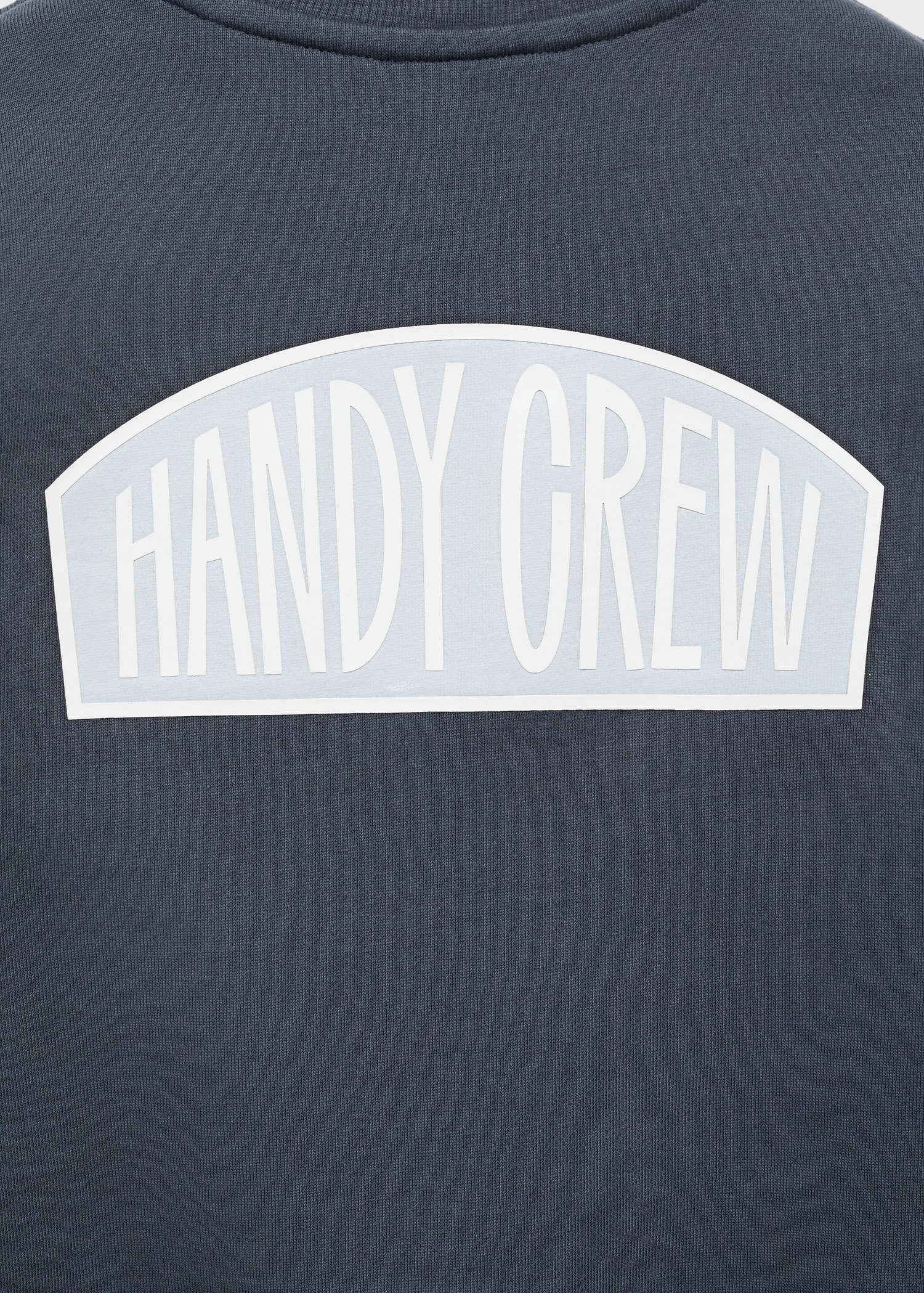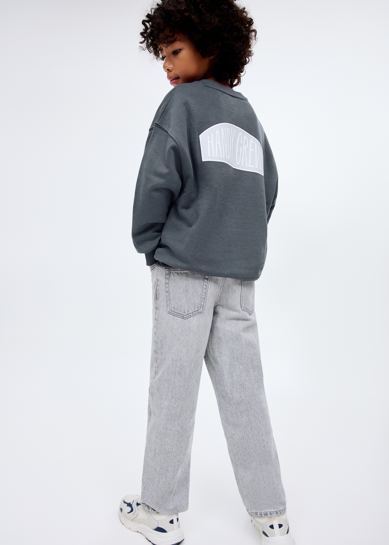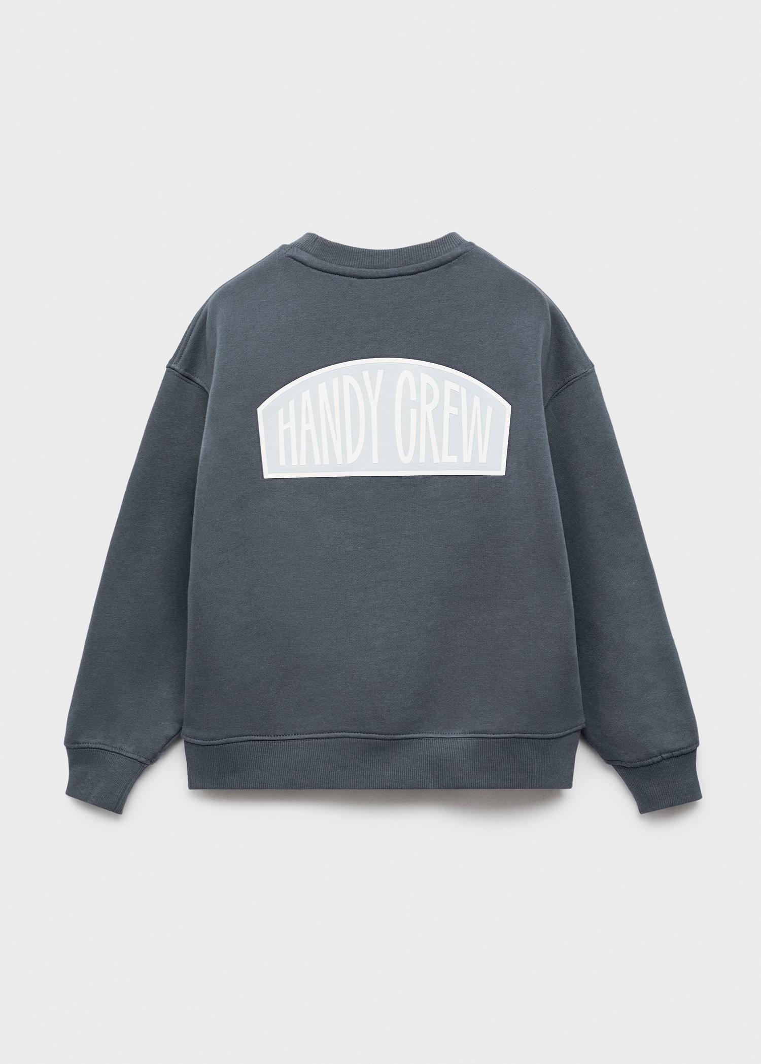 Crafted from 100% cotton fabric, this garment features a straight design with a print. It has a round neckline, long sleeves, and a front pocket with printed text. The printed design also extends to the back