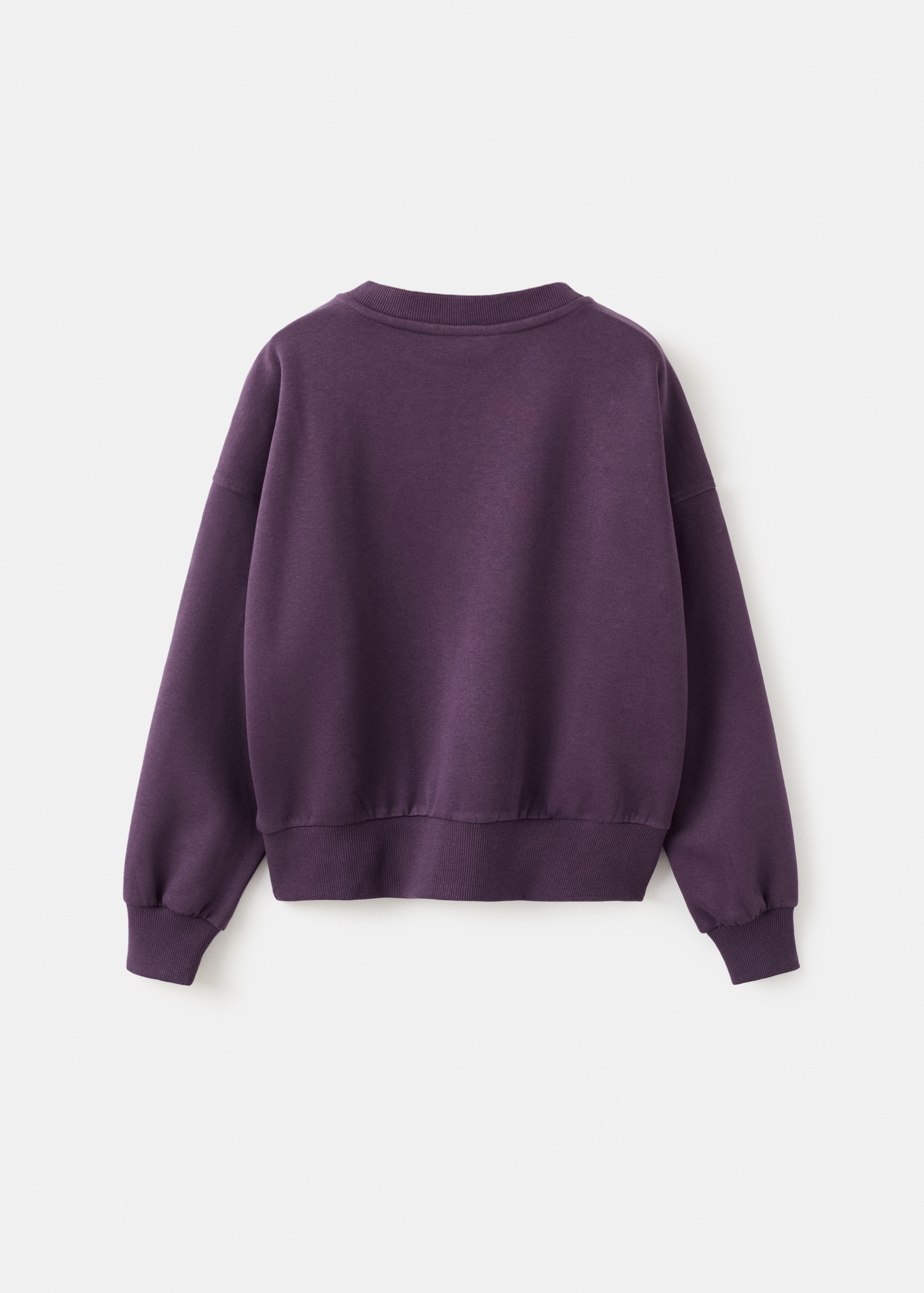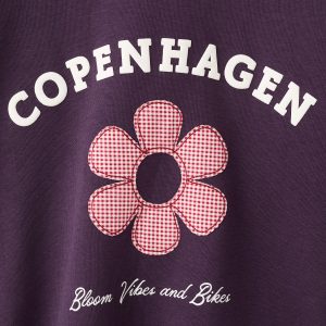 100% cotton fabric. Embroidered design. Printed design. Crew neck. Long Sleeve. Ribbed neck, cuffs, and hem. Floral embroidery. Text printed on the front