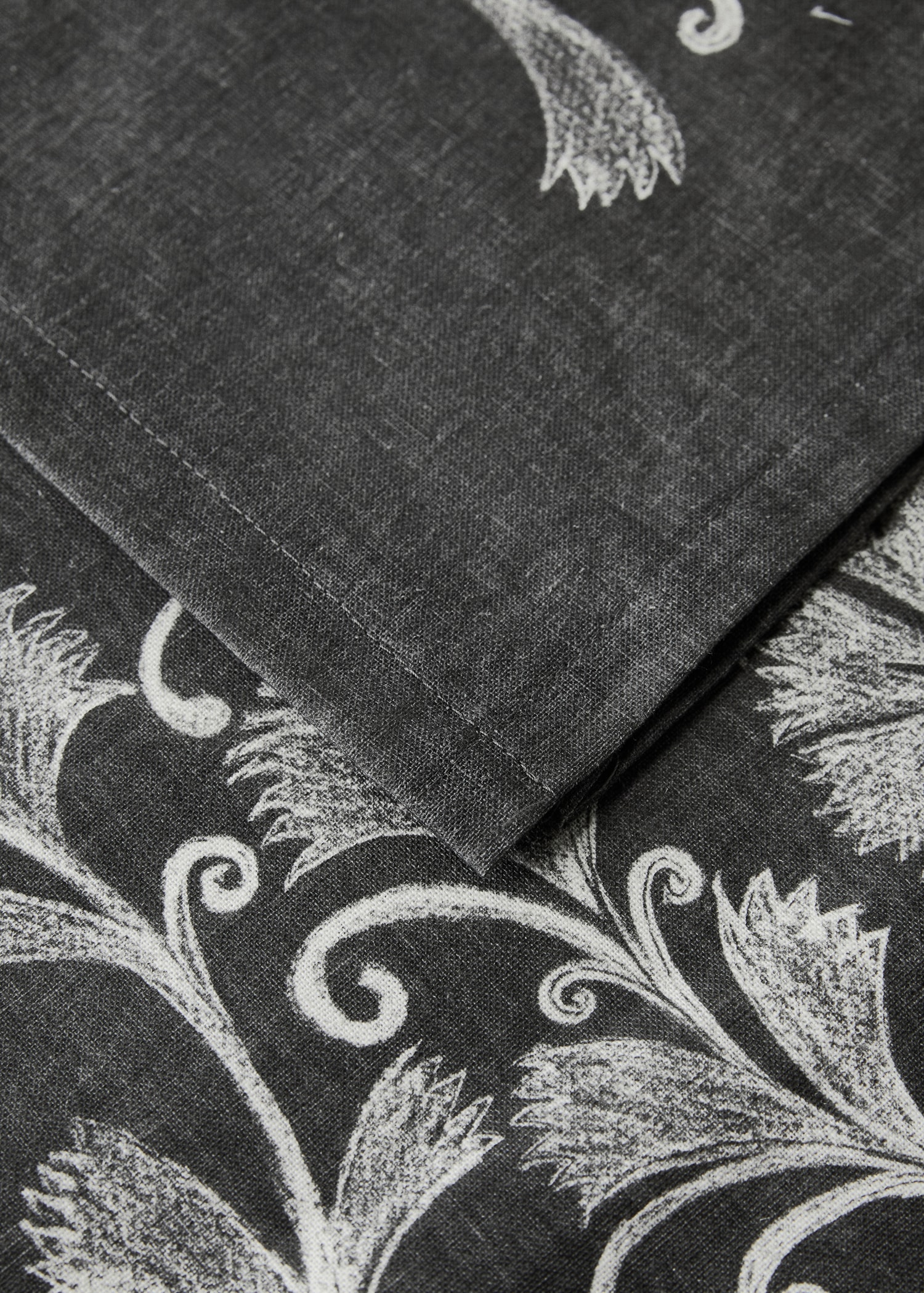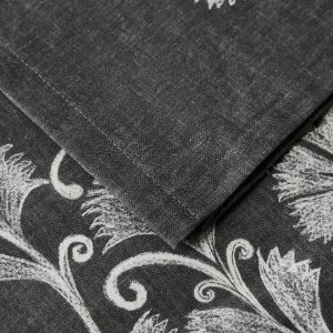 Cotton and linen blend fabric. Size: 150×350 cm. Tablecloth crafted from a blend of linen and cotton, designed to provide a natural and delicate texture. Its dark background and delicate floral pattern create an attractive and sophisticated visual balance.. Combines functionality and aesthetics, making it an ideal option for decorating dining tables