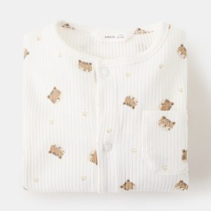 Cotton blend fabric. Rib knit fabric. Long design. Straight Design. Printed design. Cat design. Crew neck. Long Sleeve. Front snap button closure. Patch pocket on the chest