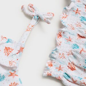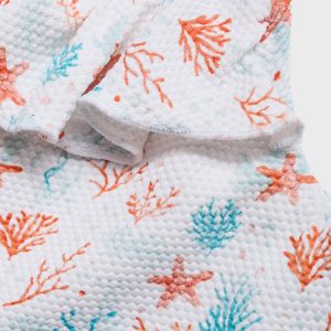 Textured fabric. Stretch fabric. Printed design. Marine print. Straps with bow closure. Wavy hem. Square Neckline. Sleeveless. Promotional product