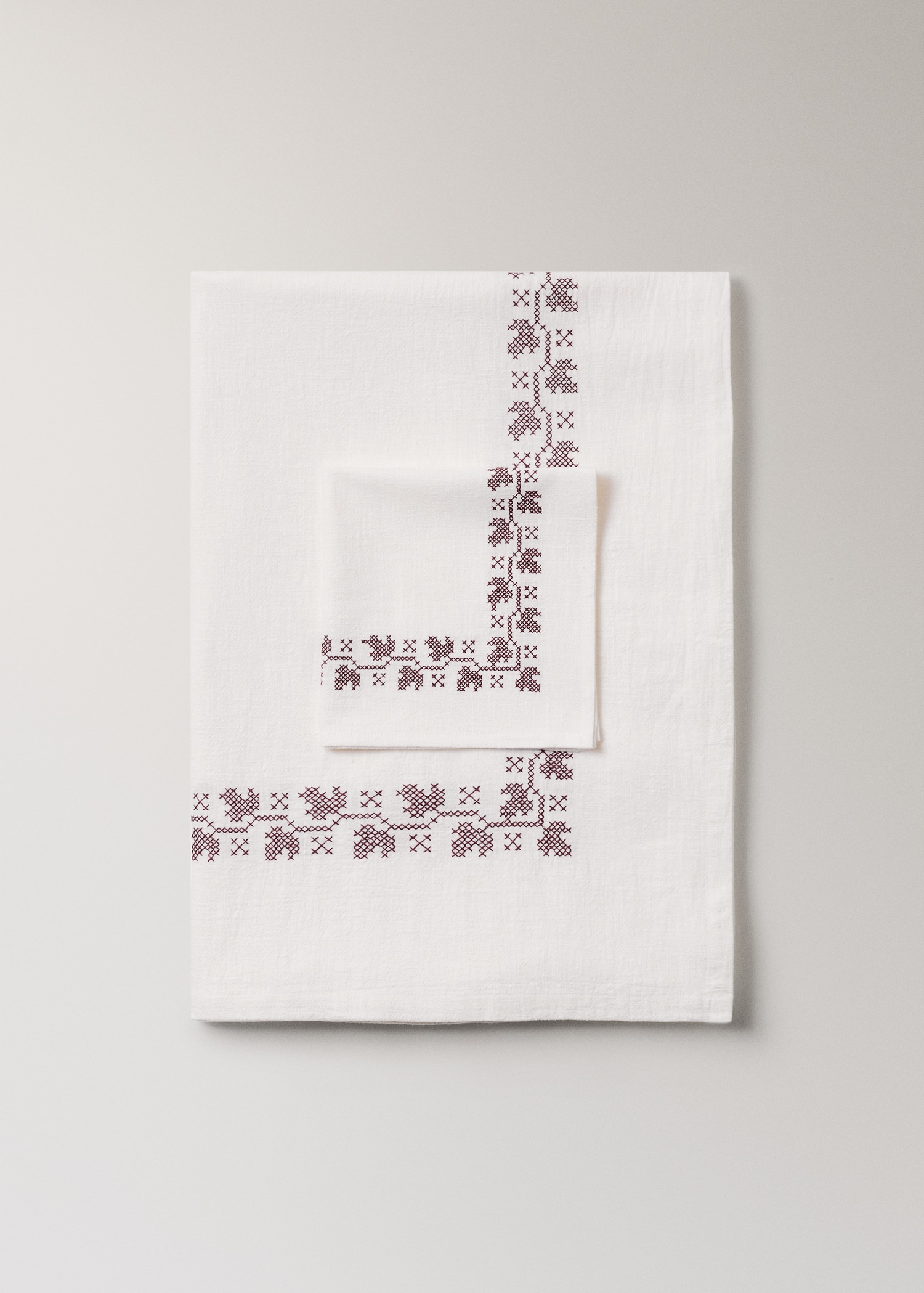 Material: Ramie and cotton. Size: 150×350 cm. Ramie stands out for being a strong natural fibre, making it the perfect choice for special occasions such as Christmas. Its composition allows it to maintain its shape and resist wear, ensuring it is both aesthetic and functional. Christmas Collection