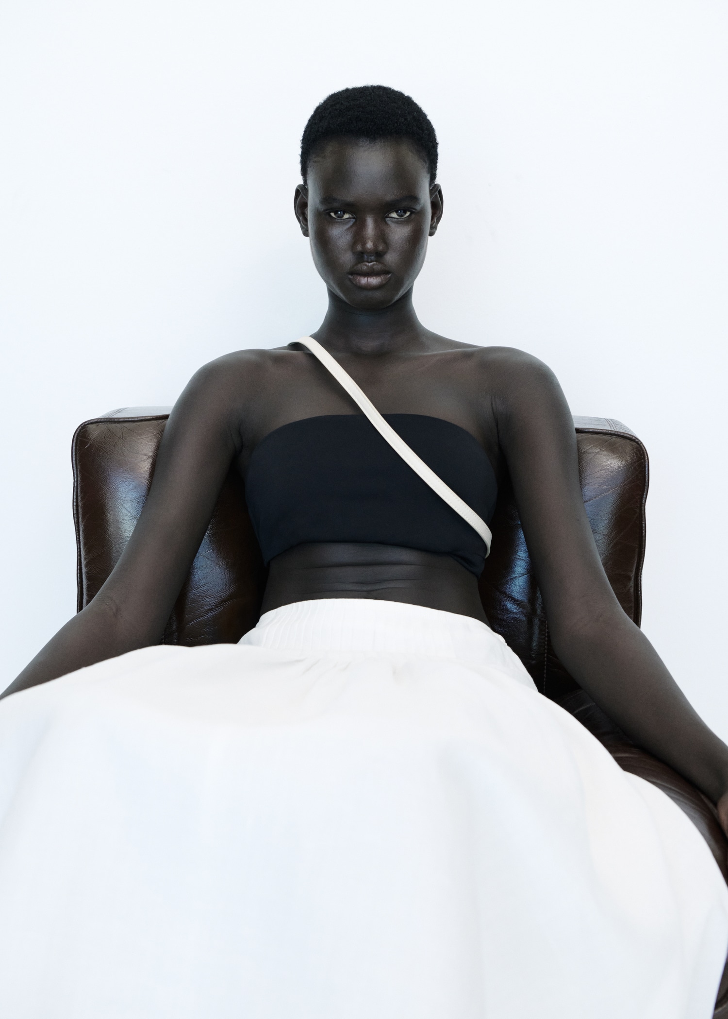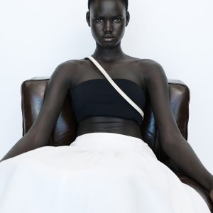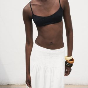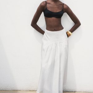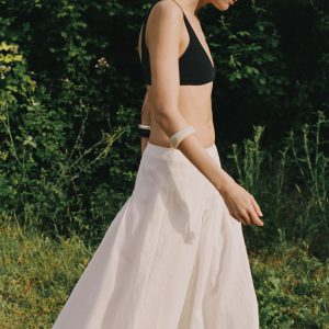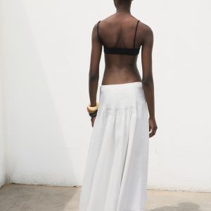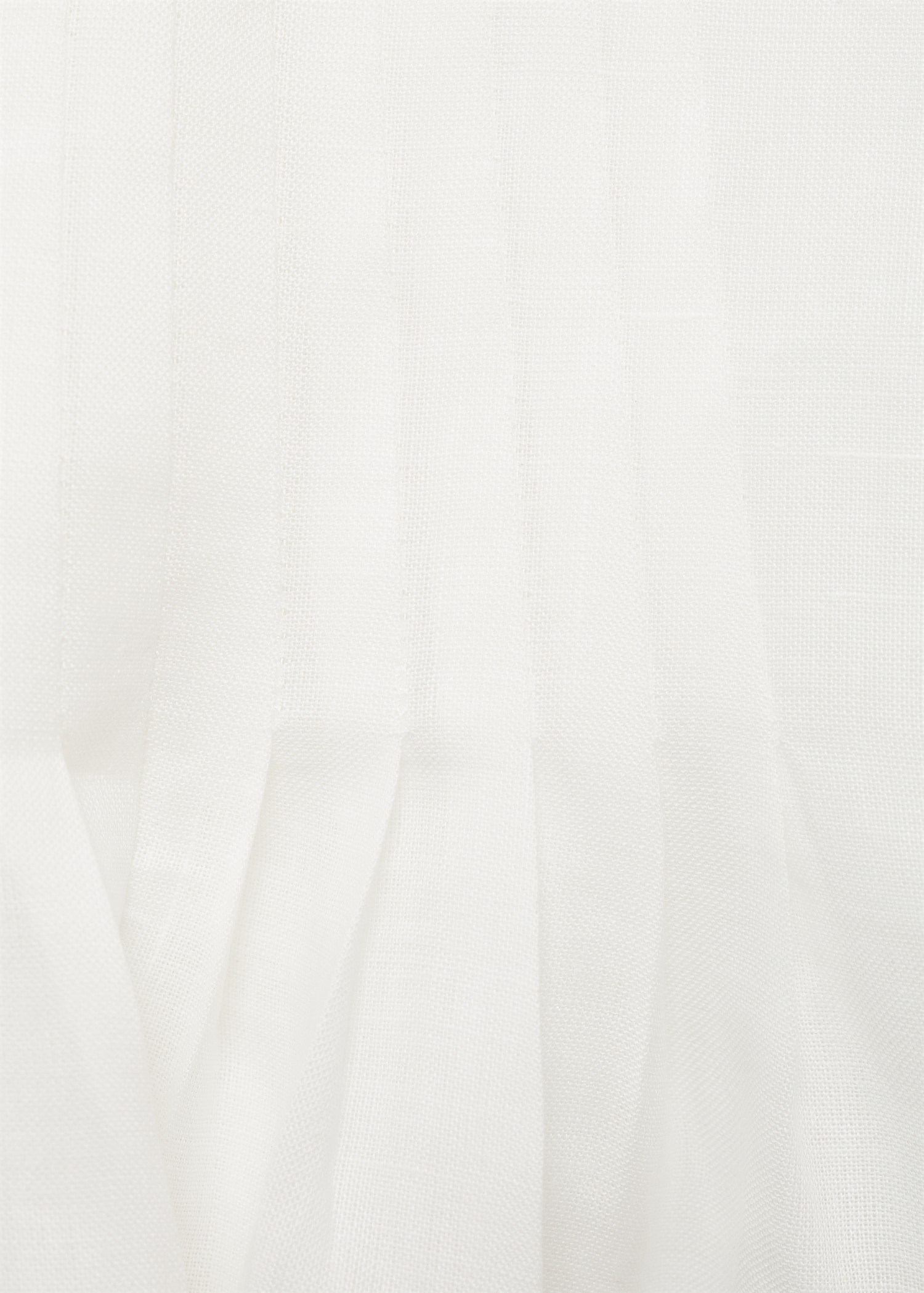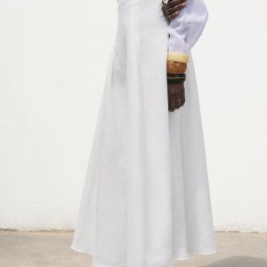 100% ramie fabric. Long design. A-line design. Pleated panel at the waist. Side zip closure. 100% cotton lining. Promotional product
