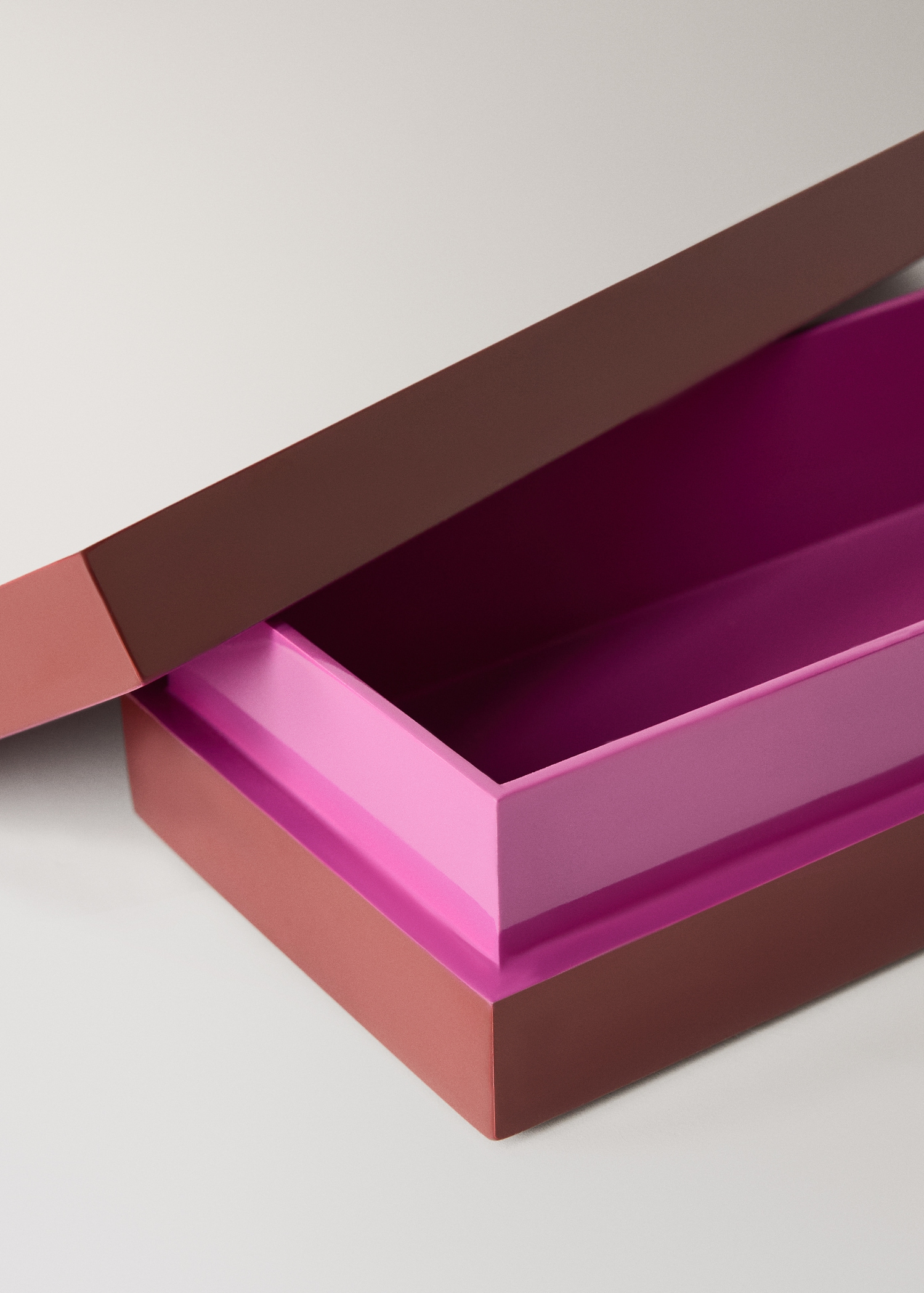 Decorative object. Size: 11x33x6 cm. Two-tone design. With lid. Rectangular shape with a simple, modern design. Serves as storage, a jewelry box, and a decorative piece. Add a colorful and original touch to any space. Coordinates with more items from the collection
